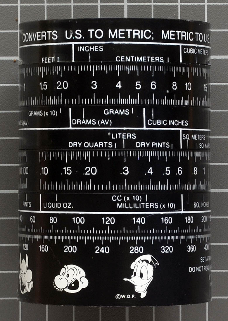 Pencil holder. Two sliding sections. Note popular American cartoon characters.