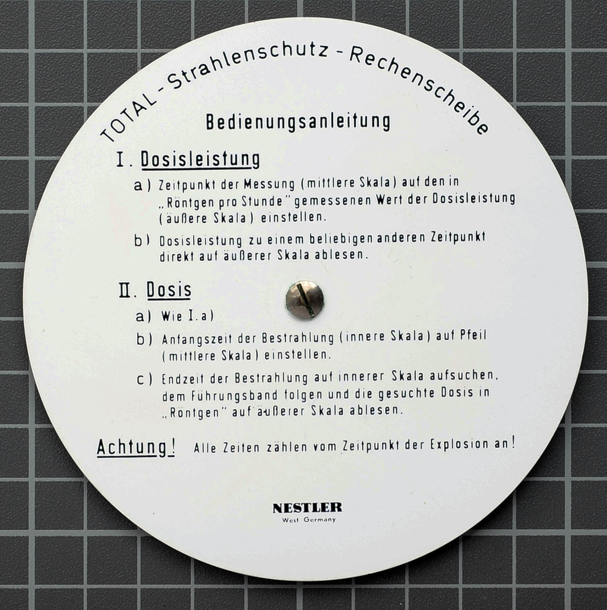 "Strahlenschutz-rechenscheiber" translates as "radiation protection slide rule".