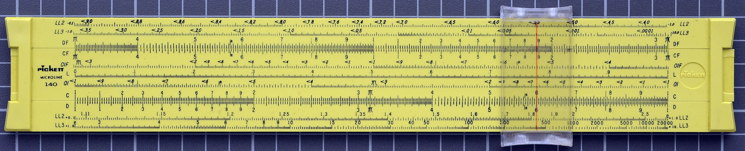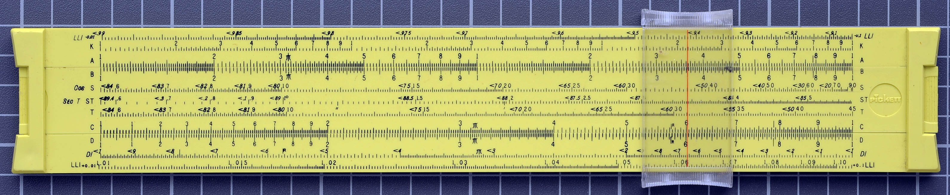 "Inexpensive plastic slide rule, but quite functional with log and trig scales."