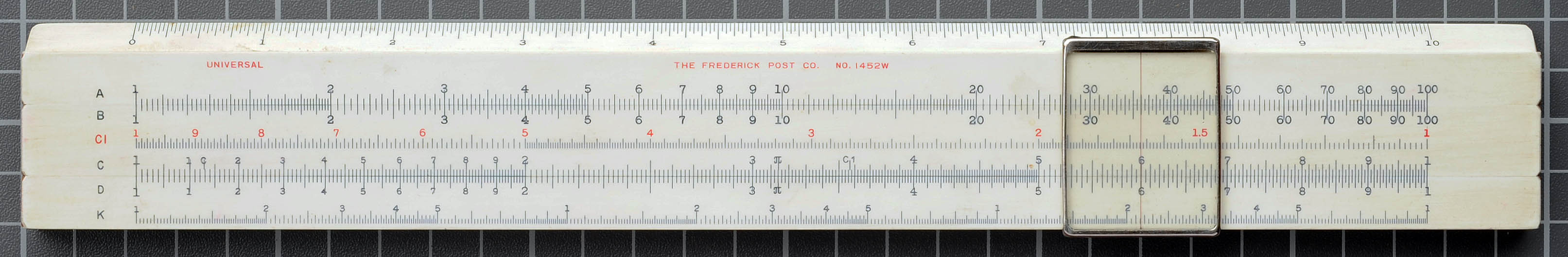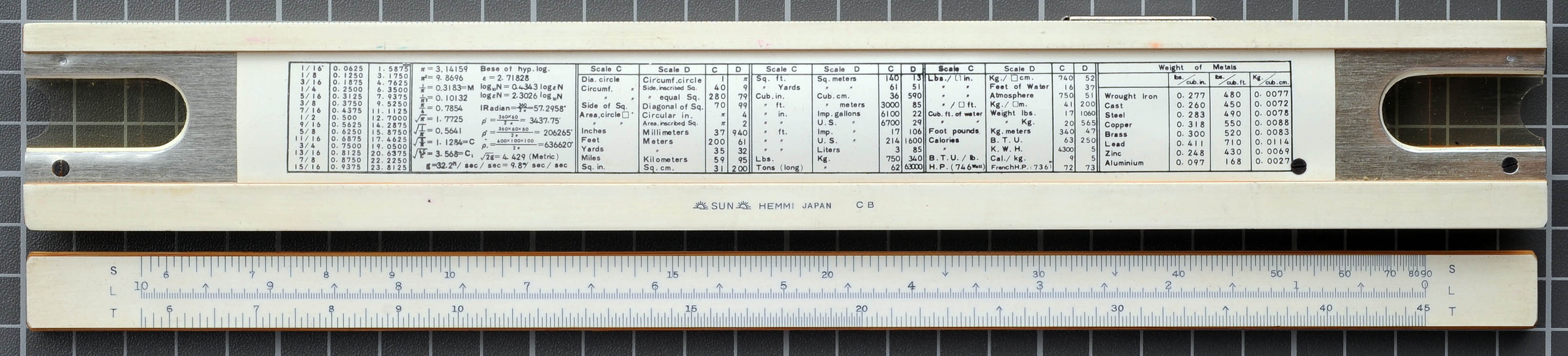 "Hemmi date code. Very utilitarian slide rule — only nine scales: A, B, C, D, CI and K; S, L and T"