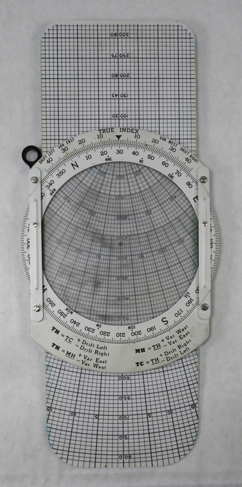 Notes: "The E6-B flight computer, called MB-4 by the military between 1953 and 1958, is well known to all pilots. Among other things, it calculates density altitude, true airspeed, time-speed-distance problems, conversions between miles, knots, and kilometers, and of course wind triangles, which one entire side of the computer is devoted to. This one was made by Felsenthal, one of the major manufacturers of flight computers. It appears to have been made for the Air Force, based on the serial number that starts with “AF”, the Air Force contract number and “U.S. Property” printed on the front, and the small stamp, ¼” square, with the eagle holding three arrows (see the last picture"