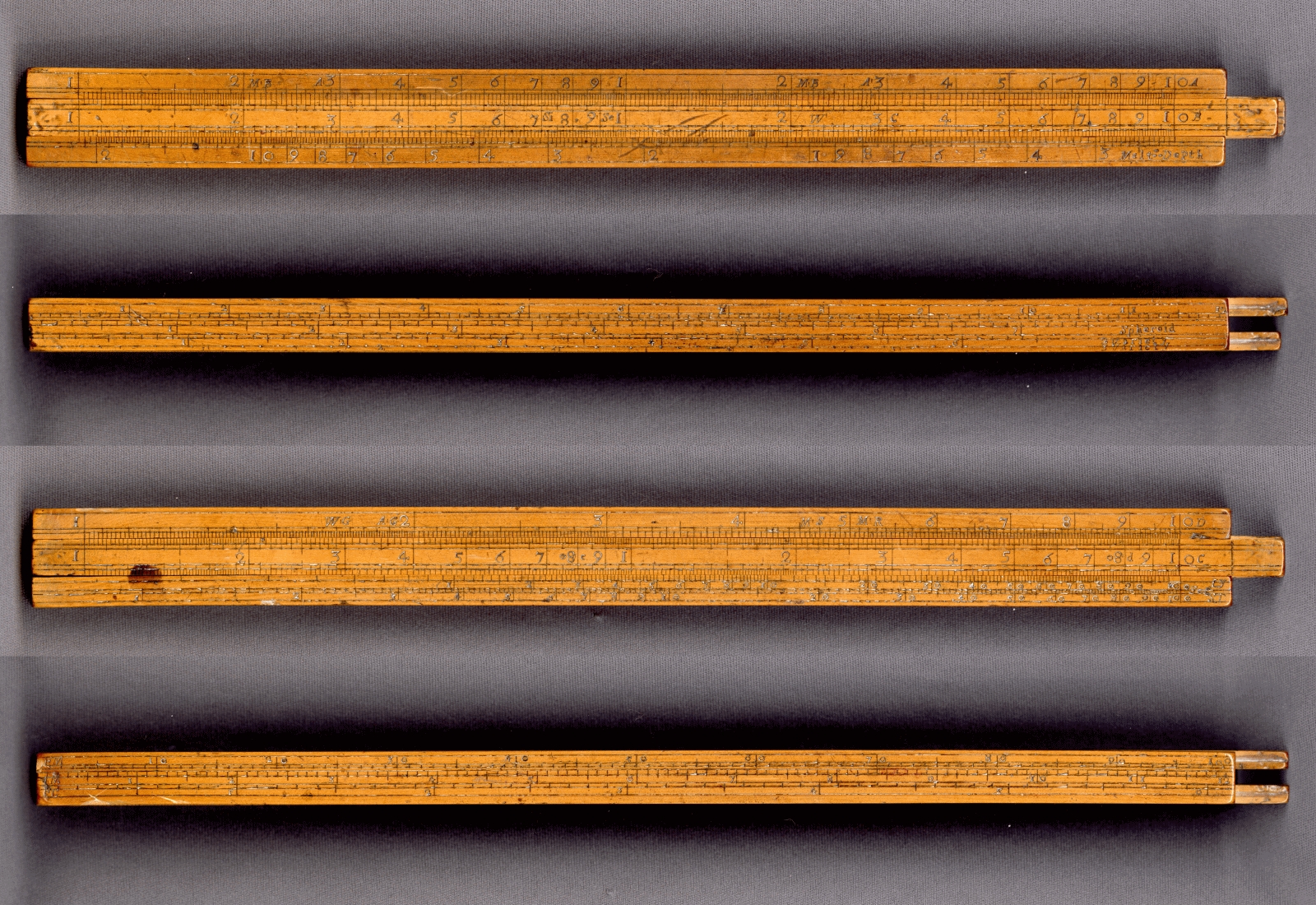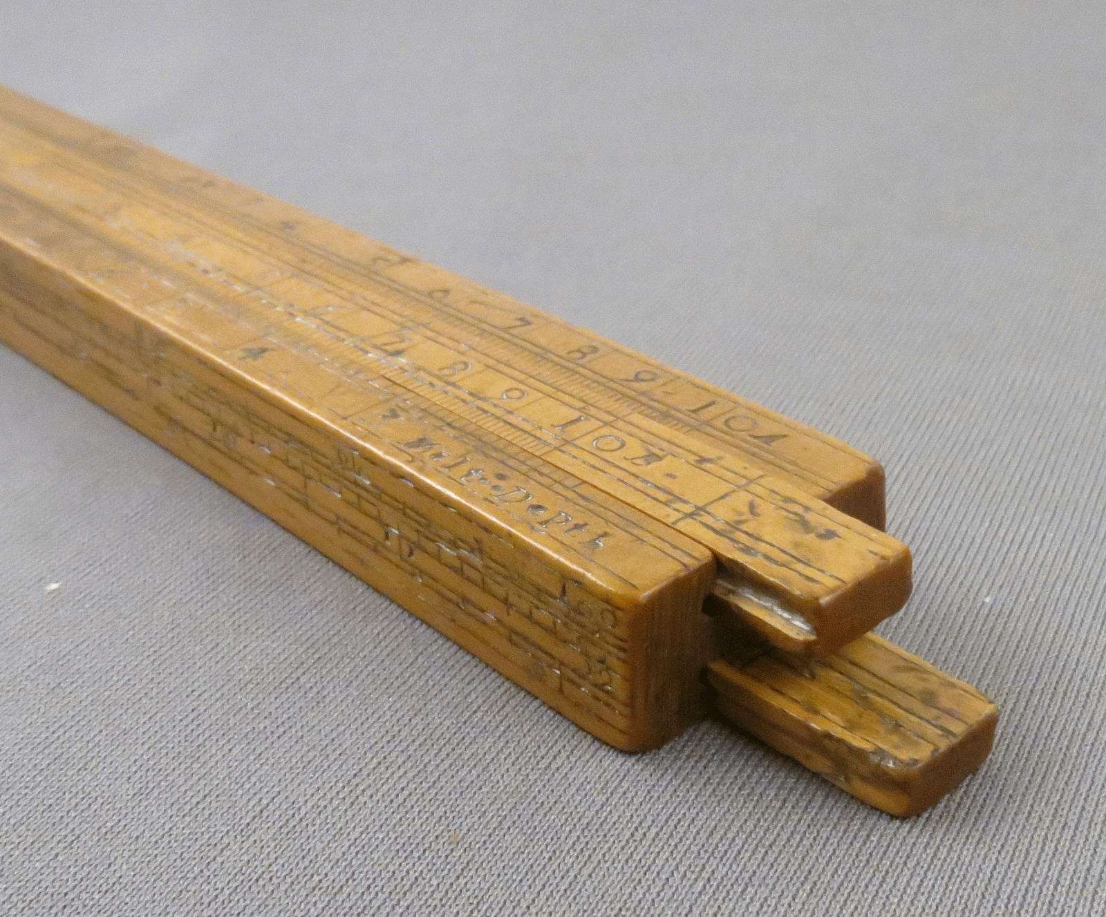 Such Everard type slide rules were used by UK Customs & Excise officers to perform specialised calculations for tax revenue. It dates from pre 1825 because of Winchester Gallon based units/gauge marks.