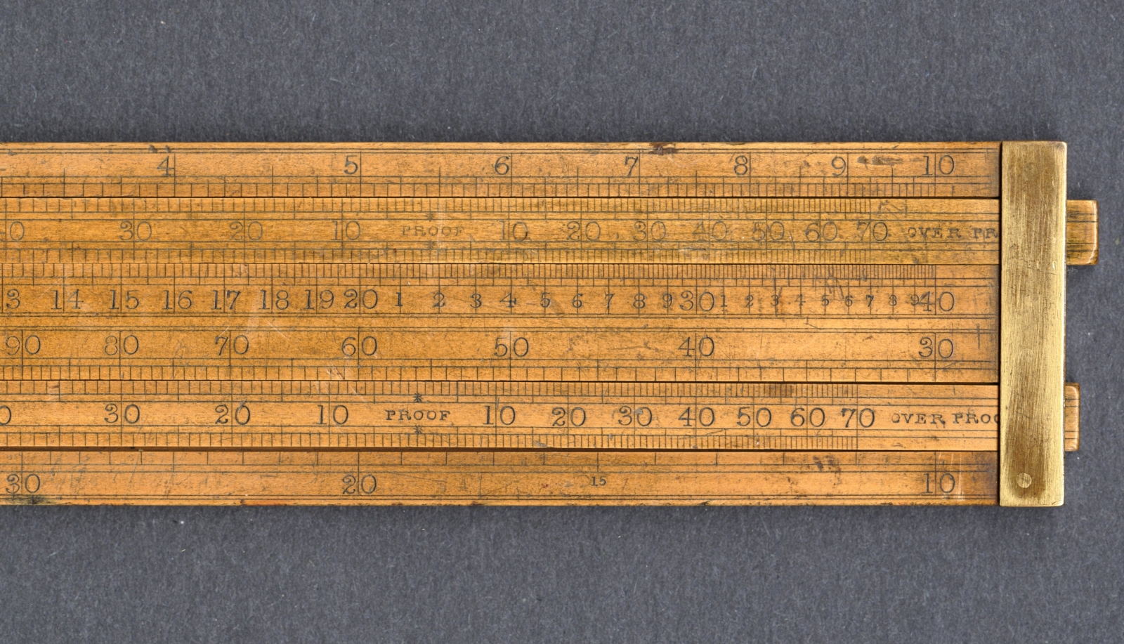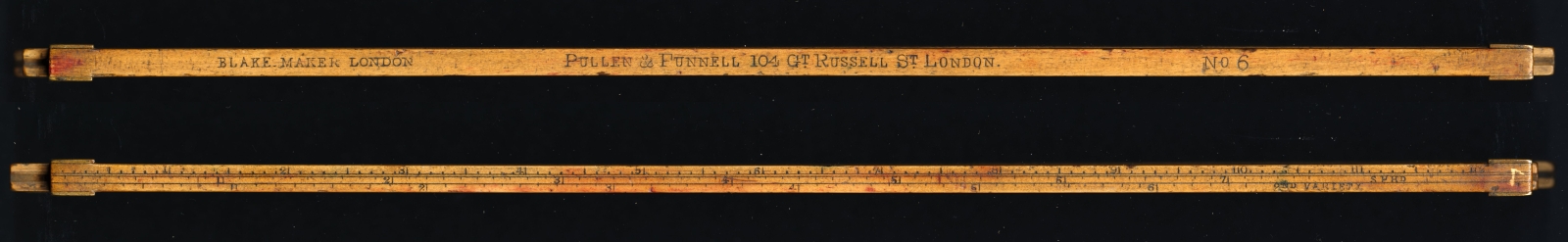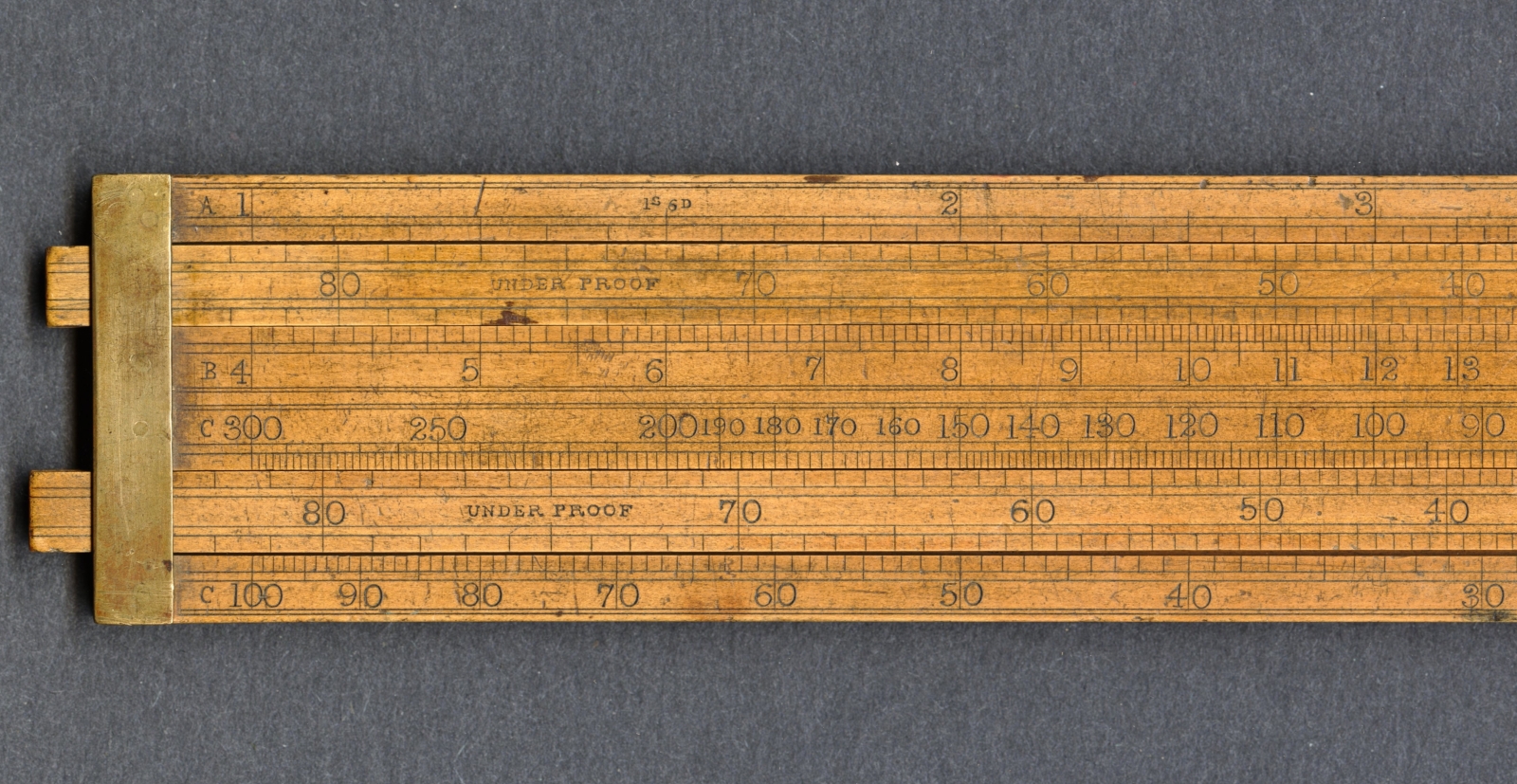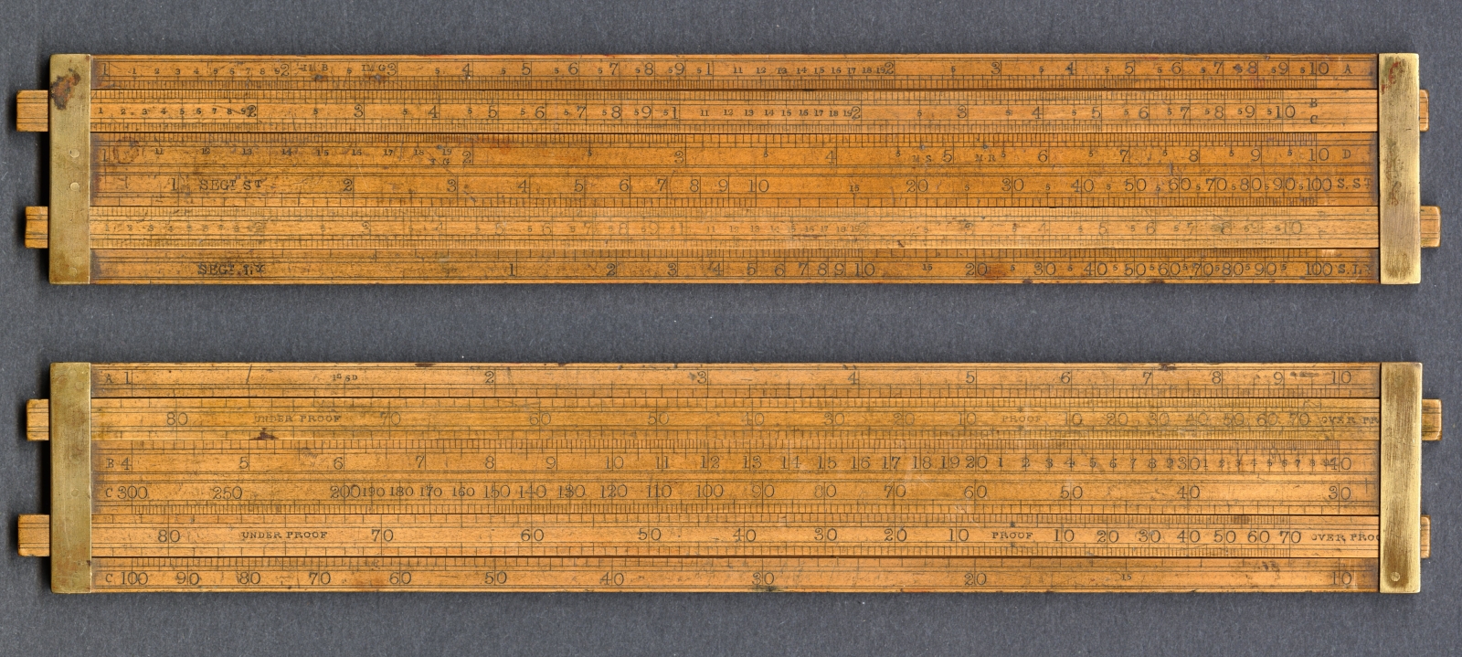 Proofing set comprising of two duplex rules. It dates from post 1824 because of Imperial Gallon based units/gauge marks.