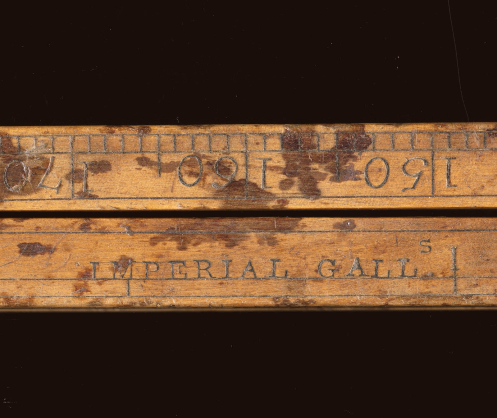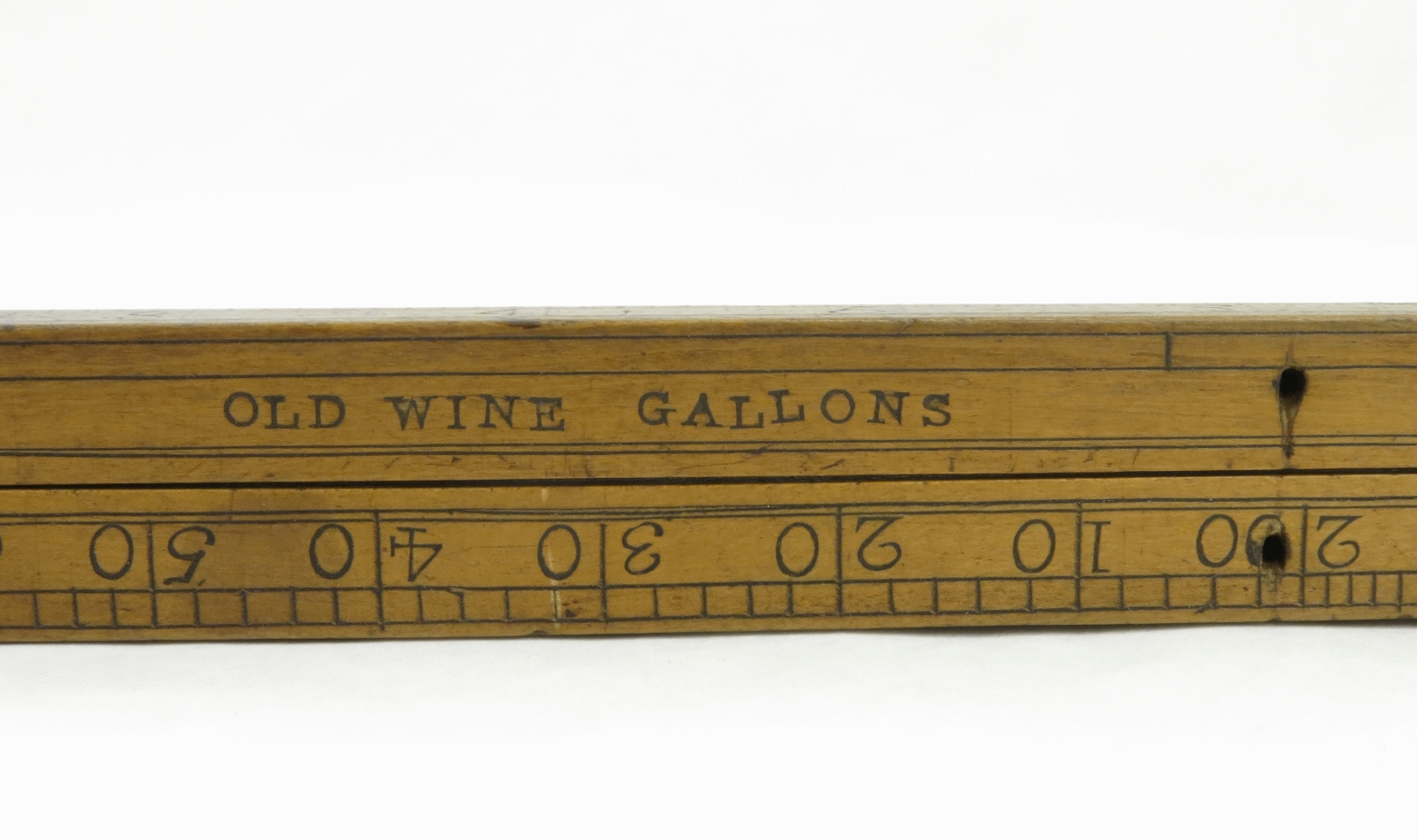 Such gauging rods were used to measure the quantity of wine or spirits in a barrel. The 4th side is blank. It dates from pre 1825 because of Winchester Gallon based units/gauge marks.