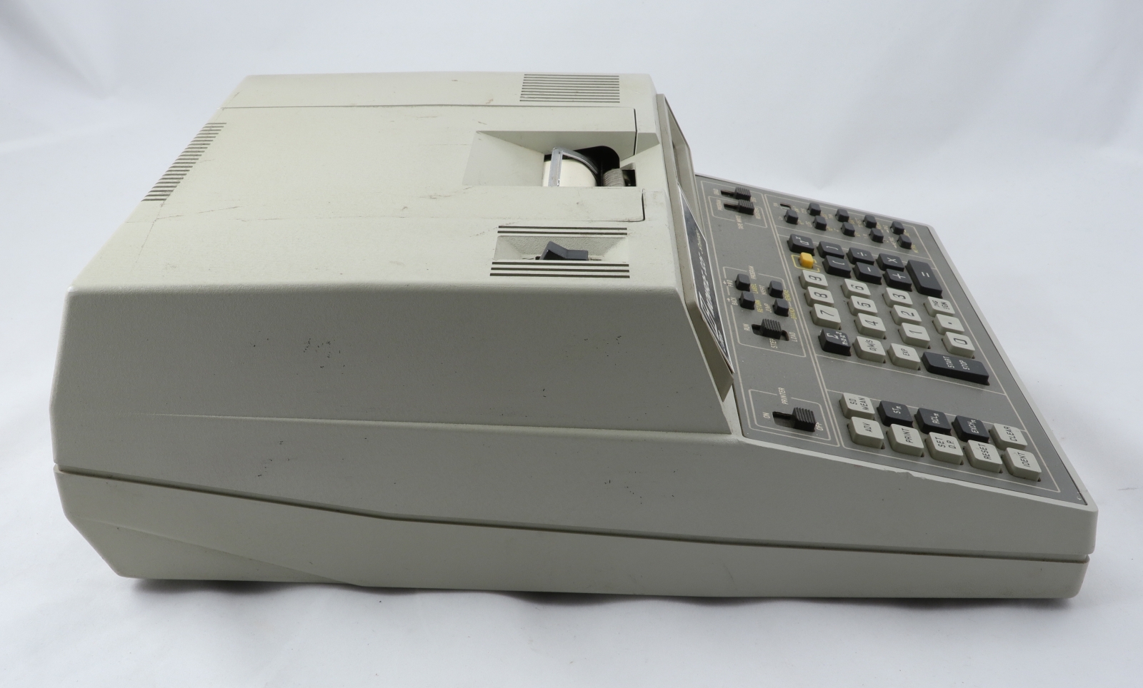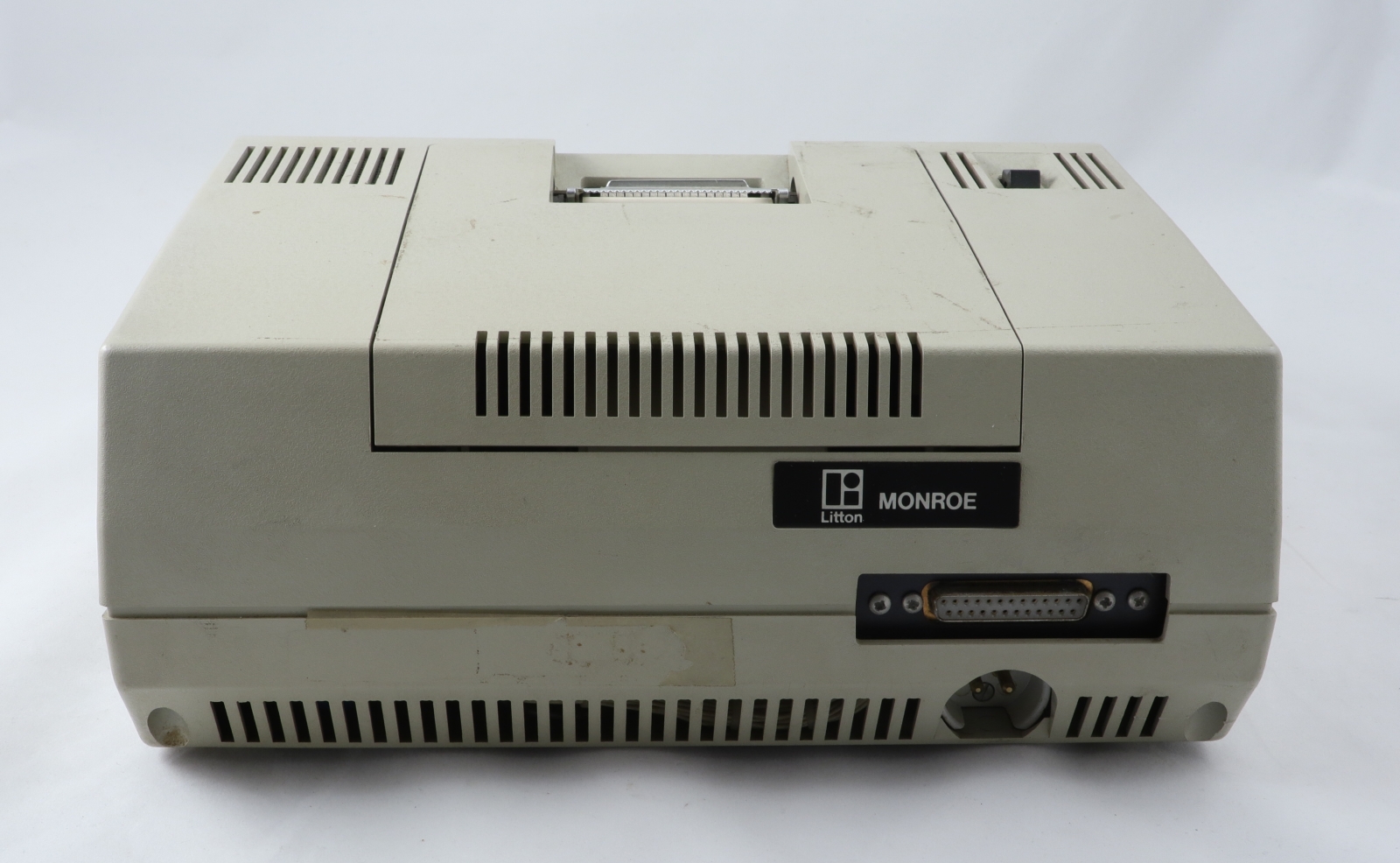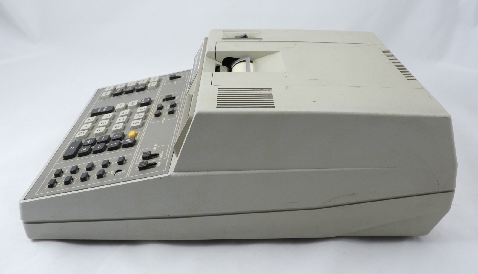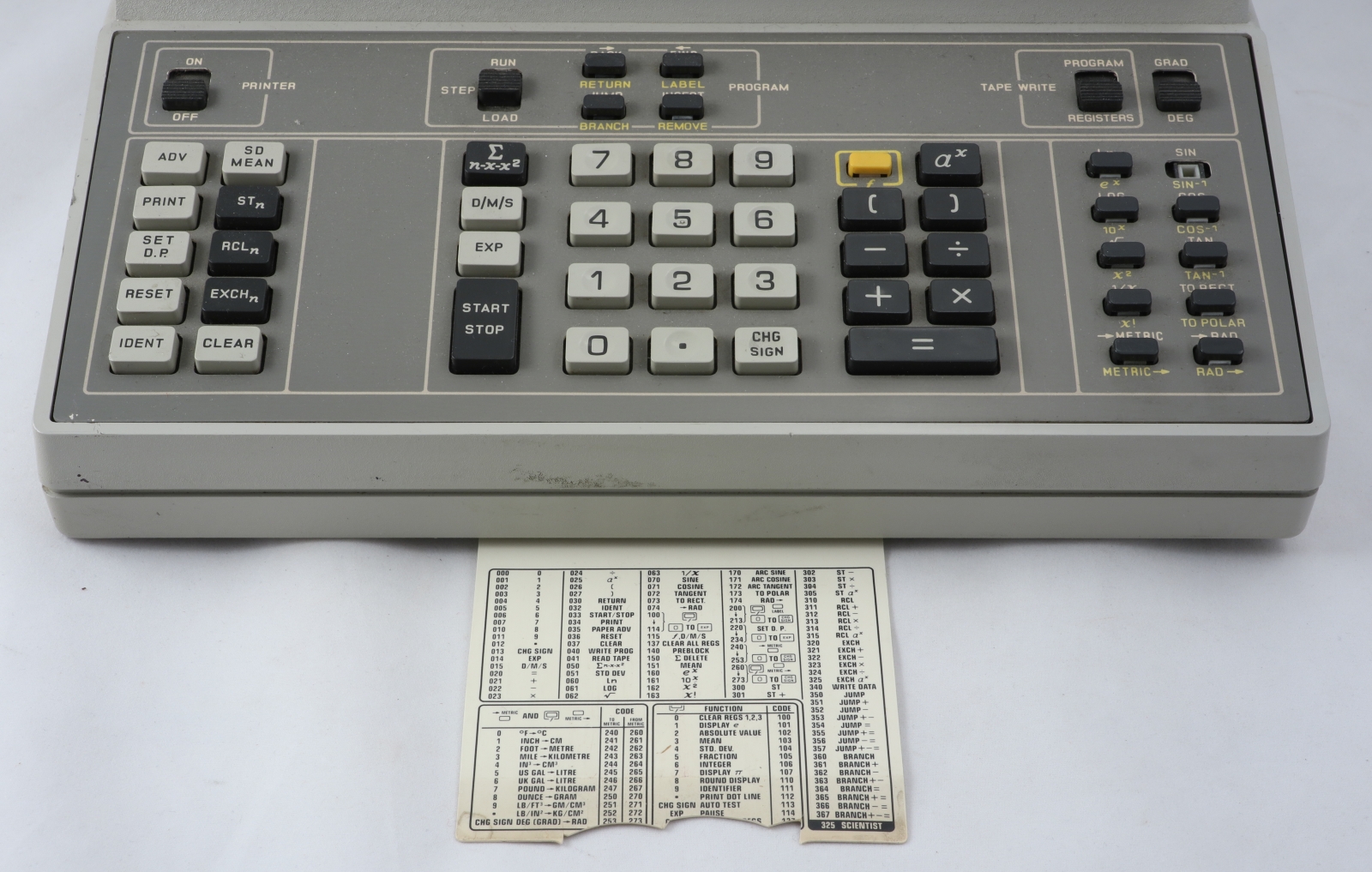 Notes: "In the late 1960s, Monroe was hurting. They were a long-time maker of very good mechanical calculators, but their products looked like antiques next to the relatively new desktop electronic calculators from Wang, Sony, Friden, and Busicom. Meanwhile, Compucorp, a division of Computer Design Corporation (itself a spinoff of Wyle), was shopping around their new line of electronic calculators. Compucorp had no retail sales or distribution organization, so they were looking for an OEM relationship with an established retailer. When they met Monroe, the marriage was executed in record time. Compucorp also had OEM relationships with Dietzgen, SCM, and Seiko. Monroe sold electronic calculators designed and built by Compucorp under the Monroe name from 1969 until the HP-35 had well and truly put a stake through the heart of large, expensive (1.5 to 3 times the cost of an HP-35), desktop scientific calculators, which was approximately 1974. In the short life of these machines, the Compucorp calculators went through no less than four redesigns, each taking advantage of the latest generation of integrated circuits. The Model 325 Scientist is from the third generation and uses a custom, Compucorp-designed 19-chip chipset (manufactured by both American Micro Systems and Texas Instruments), which was essentially a general purpose microcomputer. Pretty impressive considering that was the era of dozens of transistors per IC, not billions. In addition to the Scientist, other models were made for finance, surveying, and statistics, differing only in the firmware and key labels. The calculator was fully programmable, and numerous peripherals could be connected, including a cassette tape drive for program storage. There is a pull-out quick reference card just under the keyboard with program codes. The third generation machines also saw Compucorp finally abandon nixie tubes and switch to gas-discharge seven-segment displays. In spite of the rapid pace of technological advances in those years, the calculator is still rather large and heavy, roughly equivalent to a portable typewriter. In fairness, the third generation also saw the introduction of a “hand-held” model (“portable” would have been more accurate) powered by D-cells."