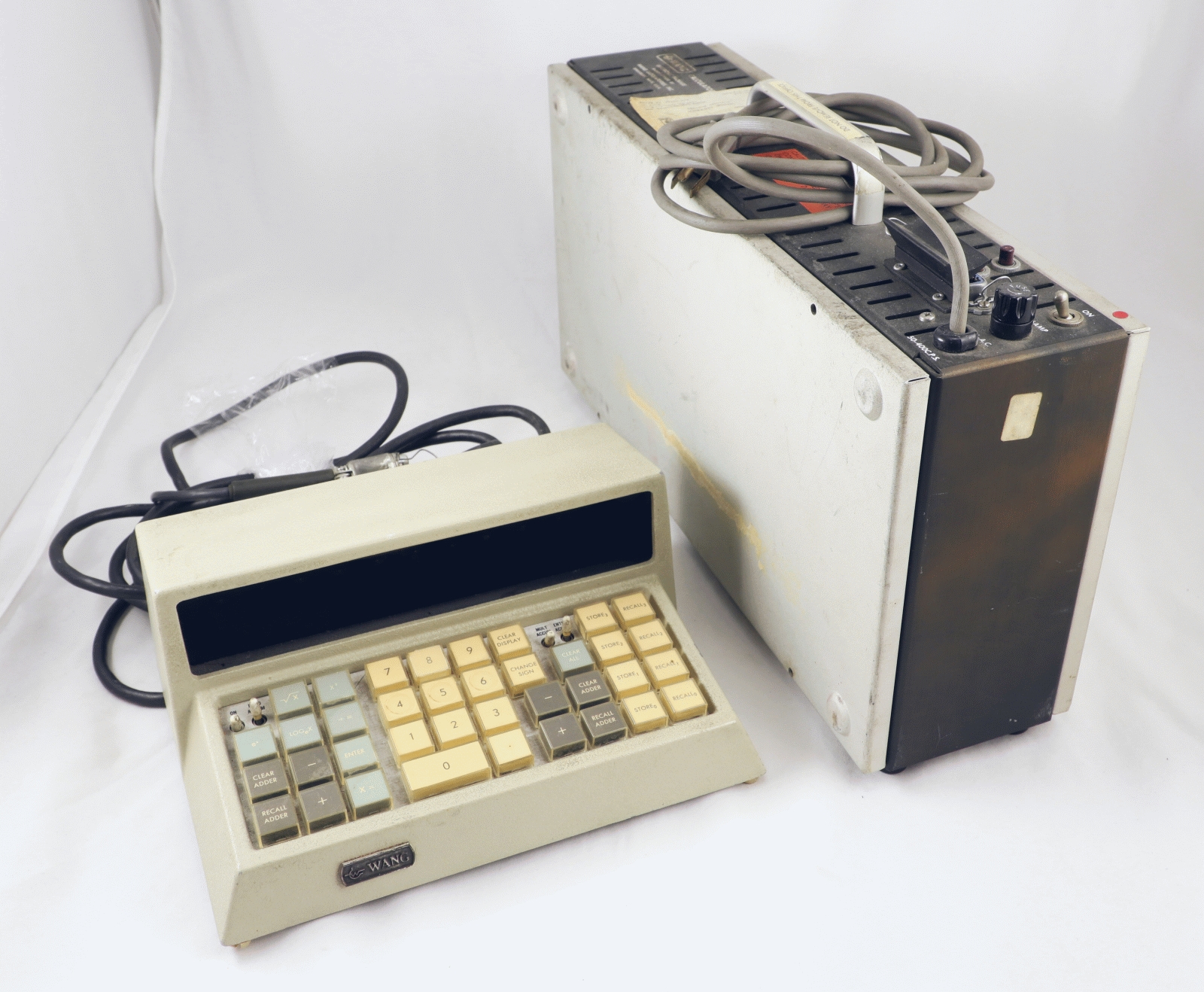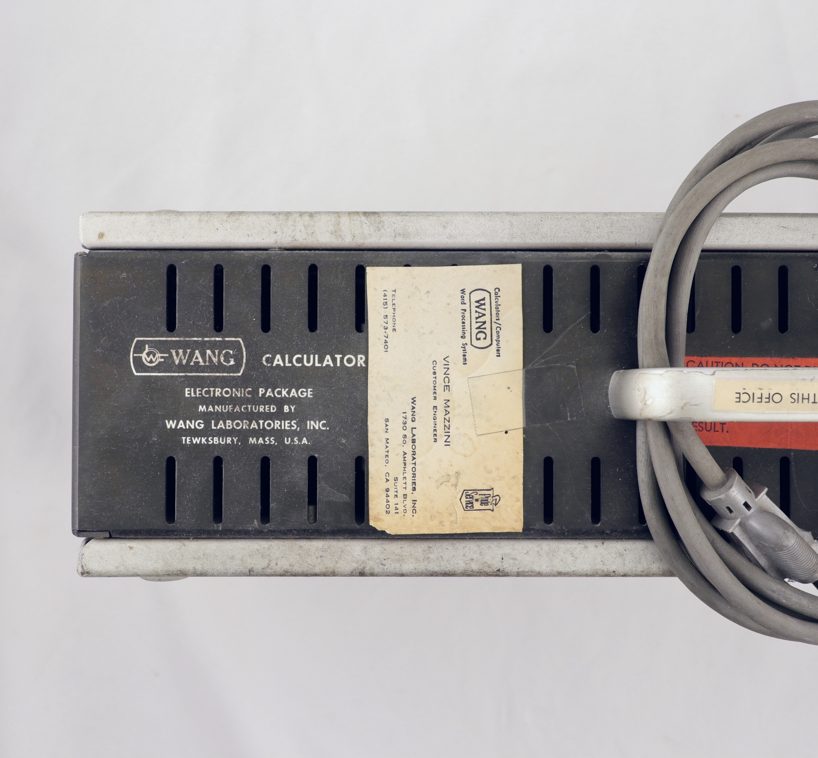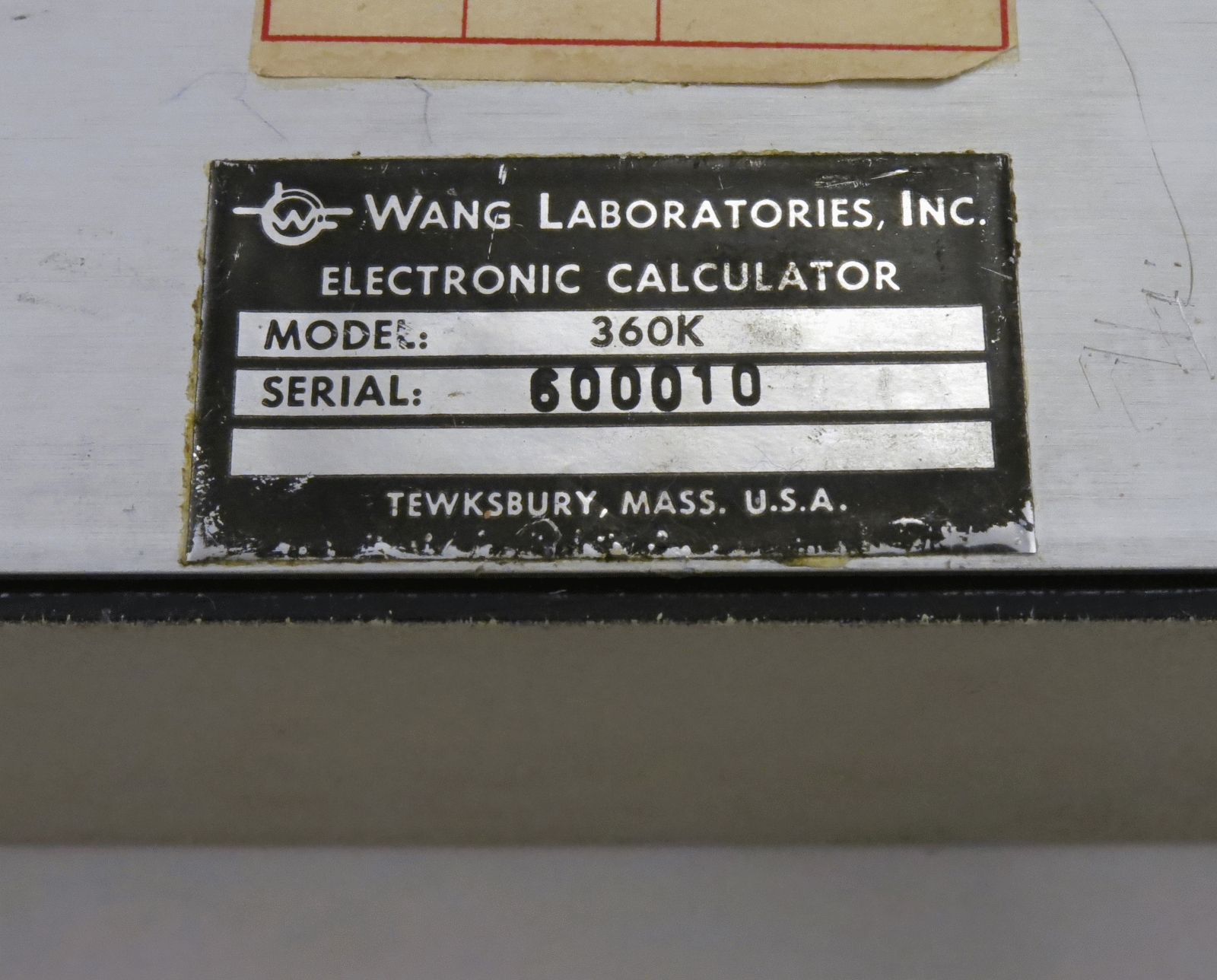 Notes: "The Wang model 360 electronic calculator was introduced in 1968, and was a sensation. It could do the four arithmetic functions as well as squares and square roots, base e logs and exponents, and had four storage registers. The nixie tube display was bright and easy to read. Wang desktop calculators were unique in that they used logarithms to perform their calculations, an invention of Dr. Wang himself. This reduced the circuitry enough, compared to other circuit designs of the time, to enable this calculator. The large box with the “electronics package” is a model 360E, which means that it supports only 1 keyboard/display unit. There was also a 360SE that supported 4 keyboard/displays. The 360K keyboard/display unit with this Wang connects to the electronics package with a large connector reminiscent of the Centronics parallel port familiar to long-time PC users. This one cord provides both power and data to the keyboard. There is a second, smaller cord coming out of this keyboard, with a smaller version of the same connector, which may have been used to connect a second keyboard, for training. Only one keyboard could be used at a time. This Wang 360 was shipped on Jun 28, 1969."