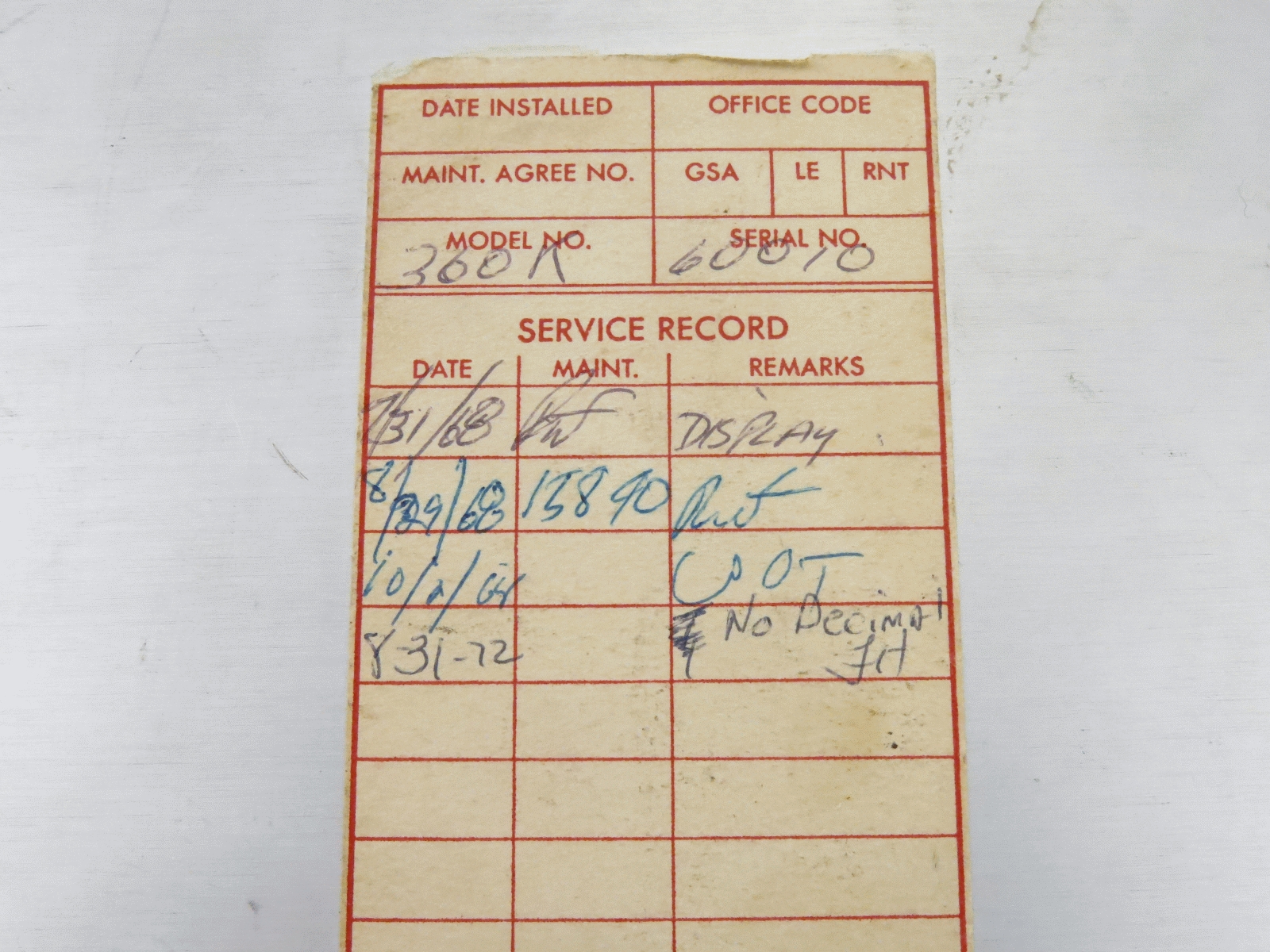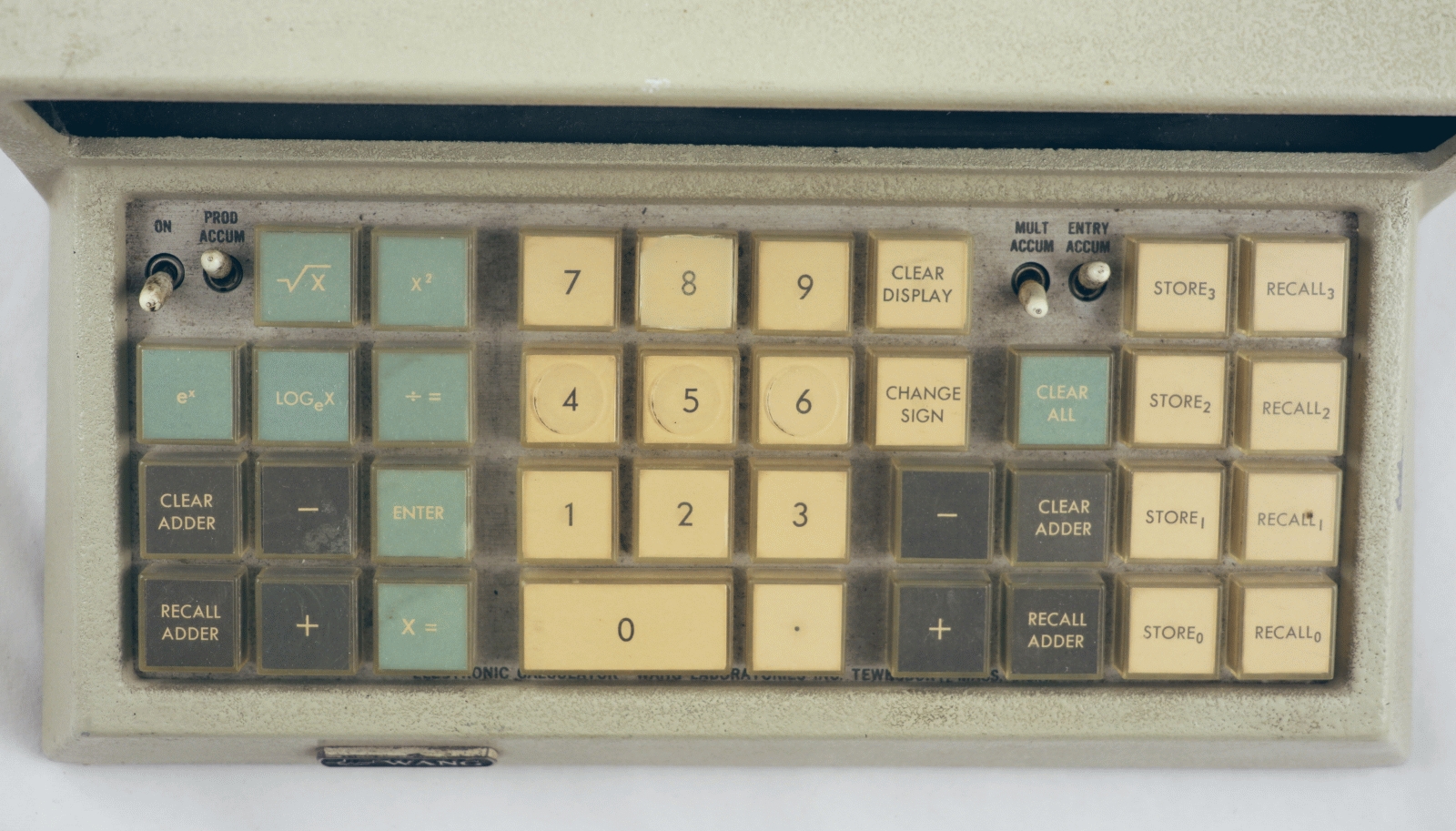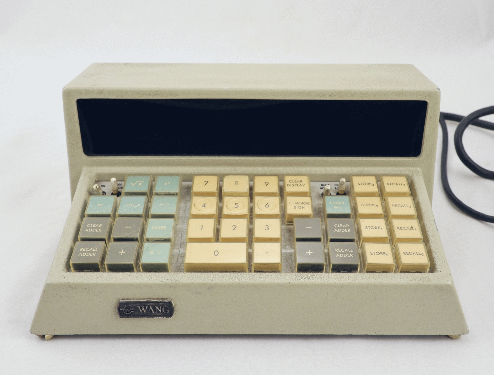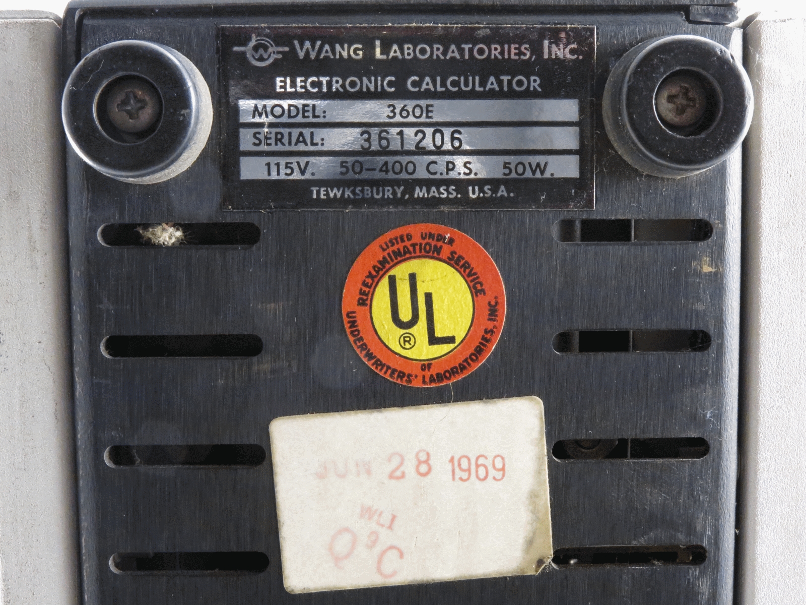 Notes: "The Wang model 360 electronic calculator was introduced in 1968, and was a sensation. It could do the four arithmetic functions as well as squares and square roots, base e logs and exponents, and had four storage registers. The nixie tube display was bright and easy to read. Wang desktop calculators were unique in that they used logarithms to perform their calculations, an invention of Dr. Wang himself. This reduced the circuitry enough, compared to other circuit designs of the time, to enable this calculator. The large box with the “electronics package” is a model 360E, which means that it supports only 1 keyboard/display unit. There was also a 360SE that supported 4 keyboard/displays. The 360K keyboard/display unit with this Wang connects to the electronics package with a large connector reminiscent of the Centronics parallel port familiar to long-time PC users. This one cord provides both power and data to the keyboard. There is a second, smaller cord coming out of this keyboard, with a smaller version of the same connector, which may have been used to connect a second keyboard, for training. Only one keyboard could be used at a time. This Wang 360 was shipped on Jun 28, 1969."