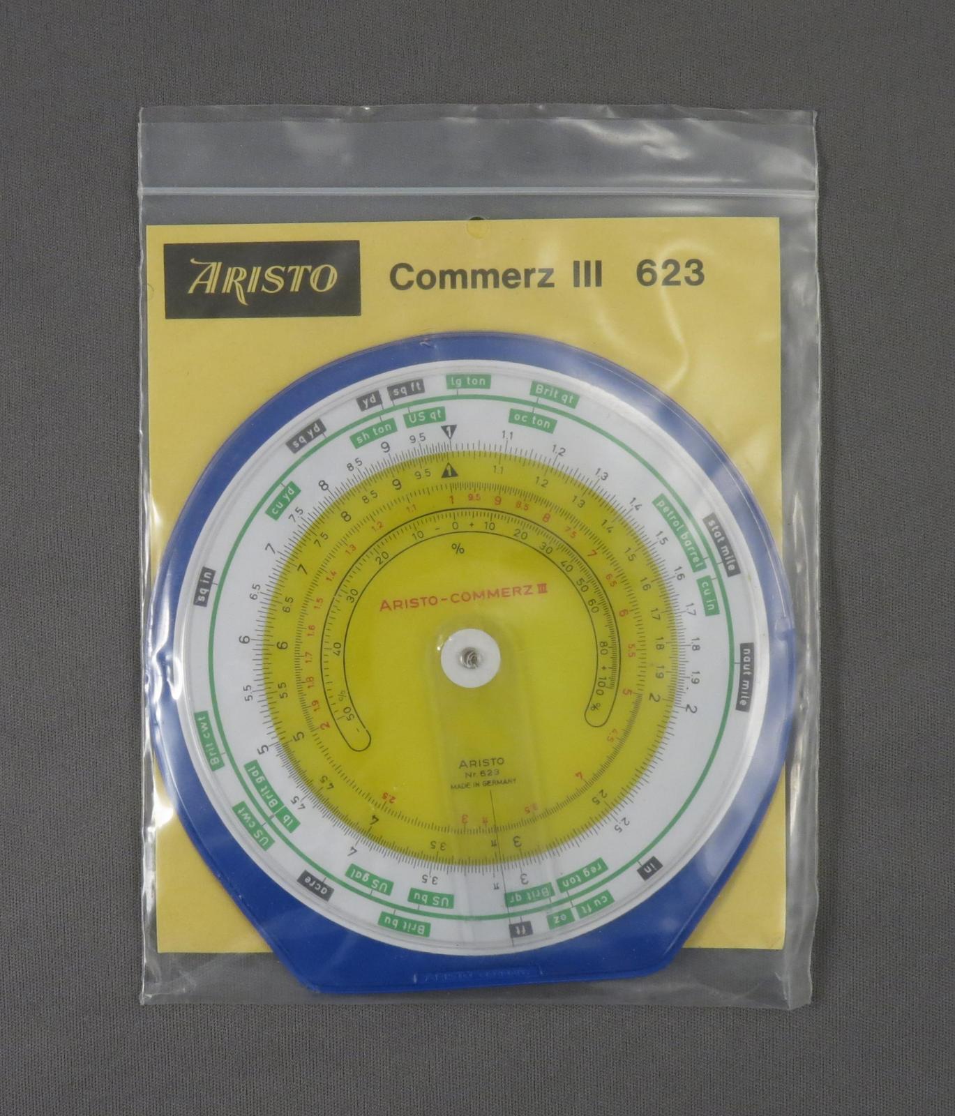 Later yellow/green version. Embellished with a conversion scale and multiple gauge marks for converting imperial to metric.