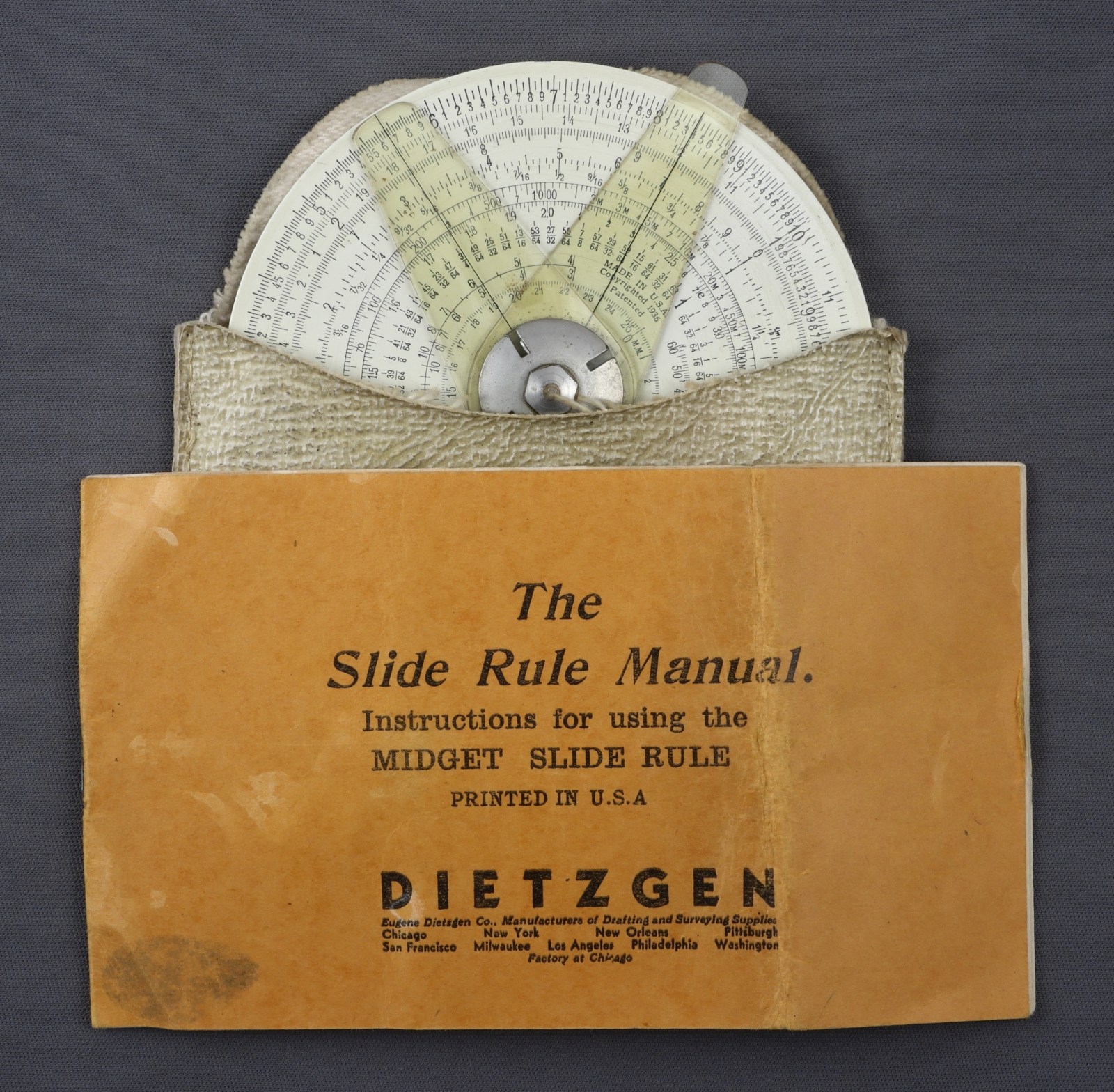 Based on 1st slide rule Gilson ever made and a model that evolved but never went out of production - standard case but Dietzgen-branded instruction manual.