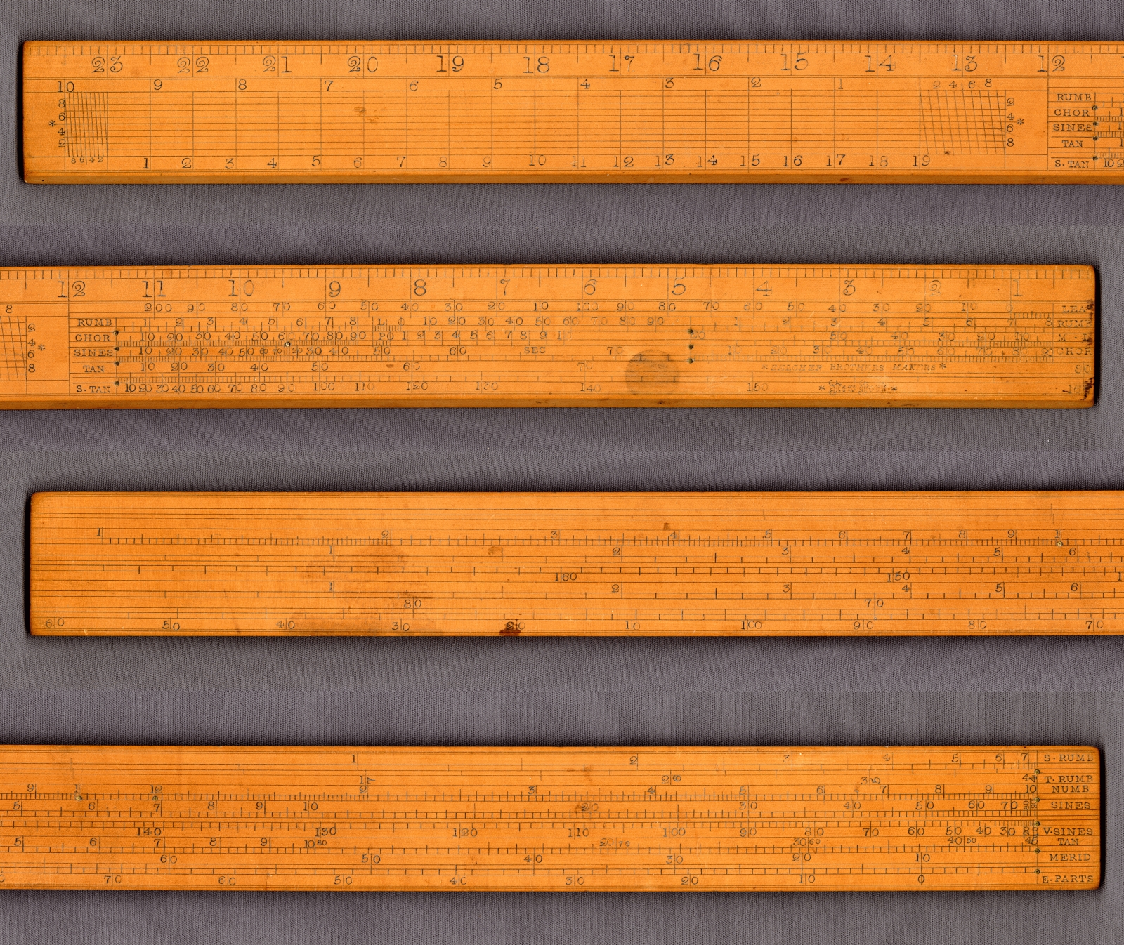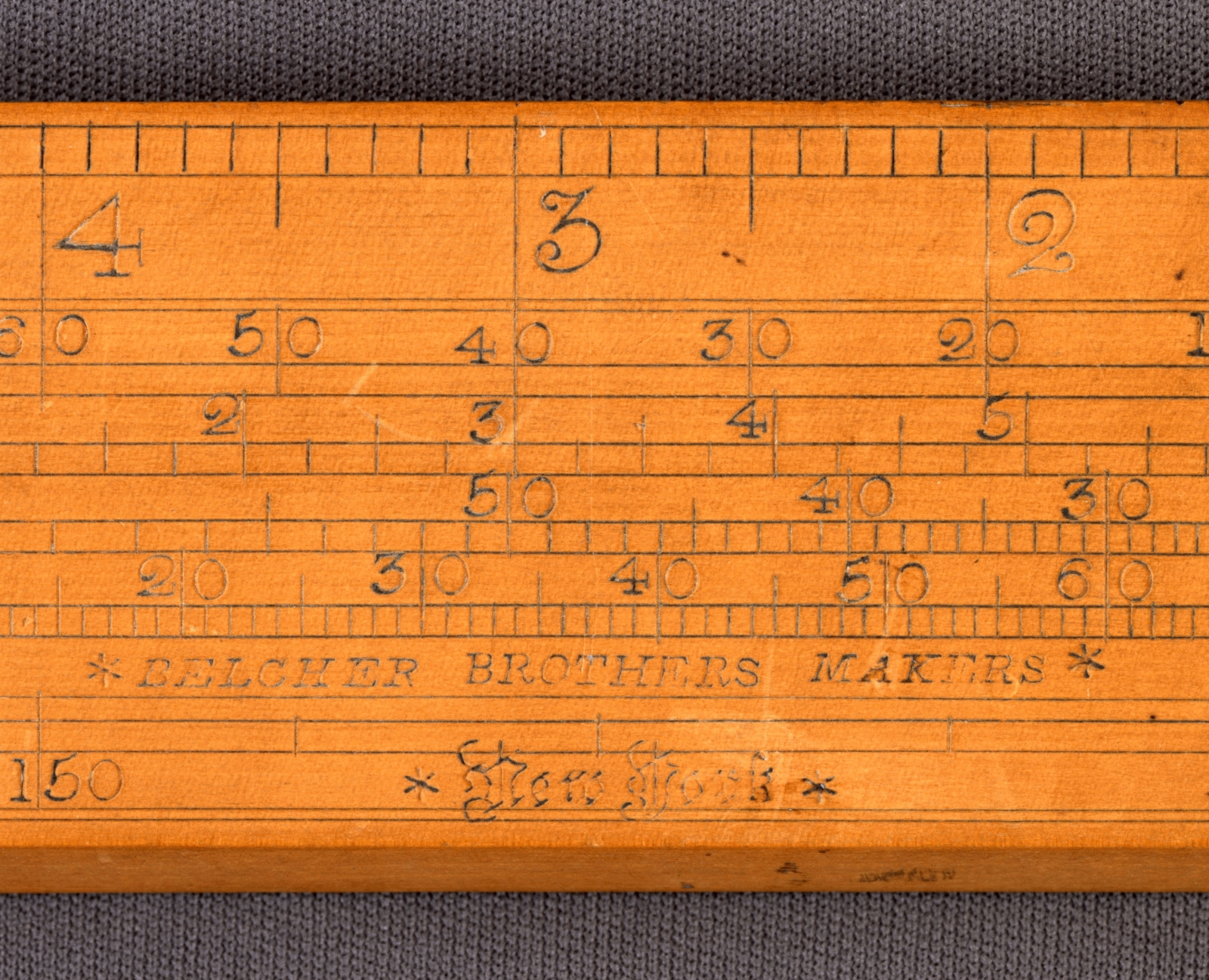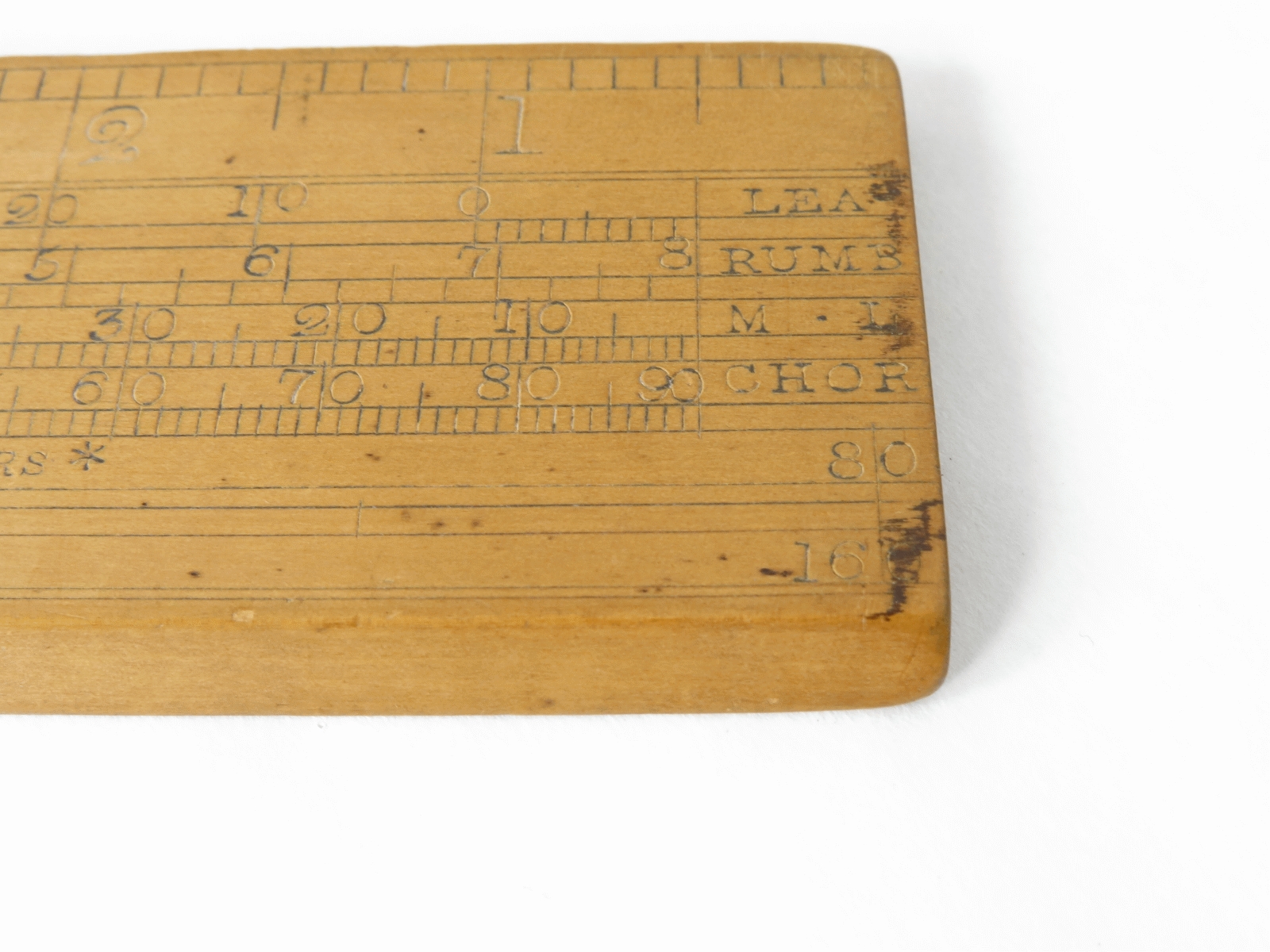 Notes: Named after the inventor of the logarithmic scale Edmund Gunter and considered the predecessor of the modern slide rule. It has the standard set of scales expected on a Gunter and 15 inset brass pins with dimples in the middle to accept the points of chart dividers or compasses.