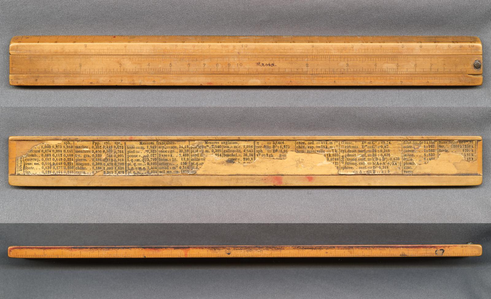 Notes: "Unbranded but the label on the back is identical to ones used by Lenoir. The A / B,B / D scale layout (no cursor) was originally designed by James Watt of steam engine fame and is named after the Soho area of Birmingham (UK). It has a typical brass button on the end of slide."