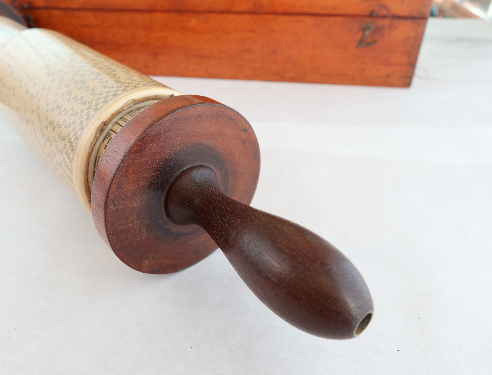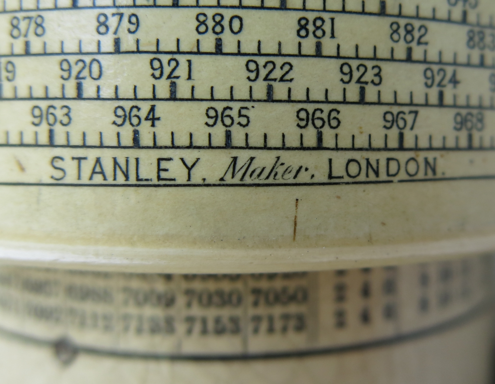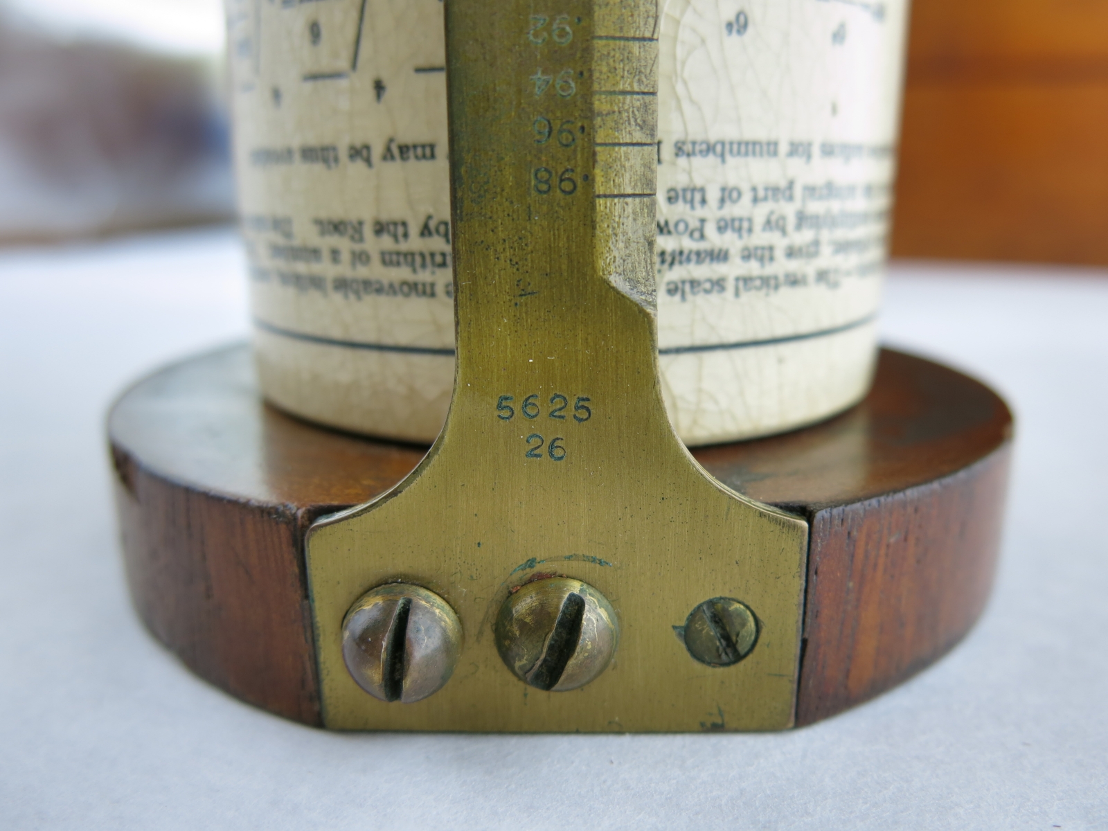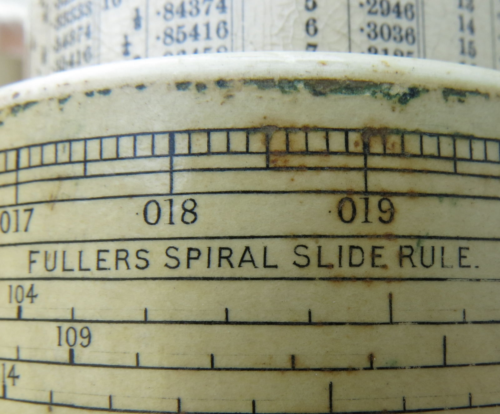 "Patented (GB187801044 & US219246) long-scale design by George M. Fuller - serial no. 5625 with conversion tables, natural sines & Birmingham Wire Gauge on inner fixed cylinder."