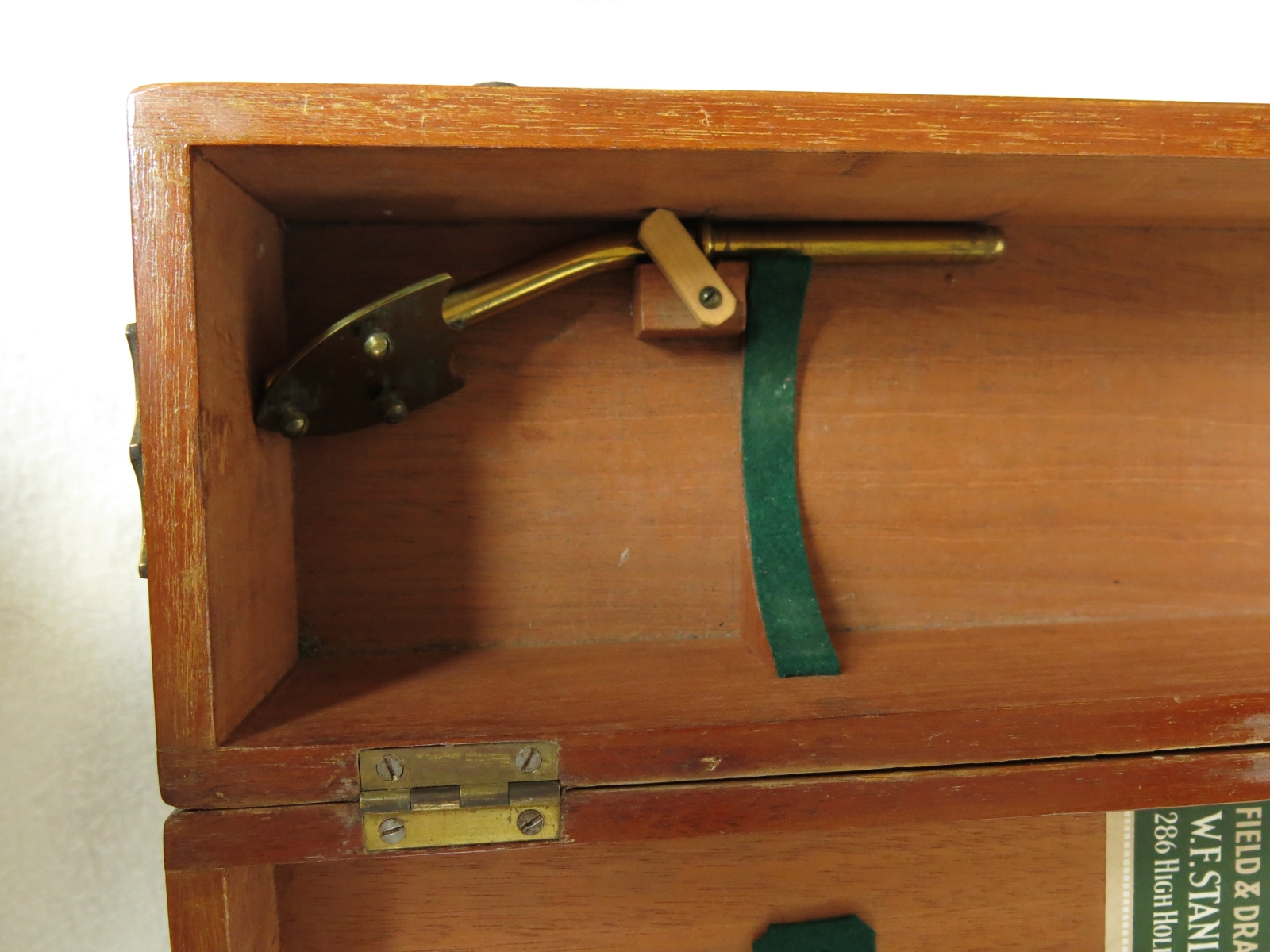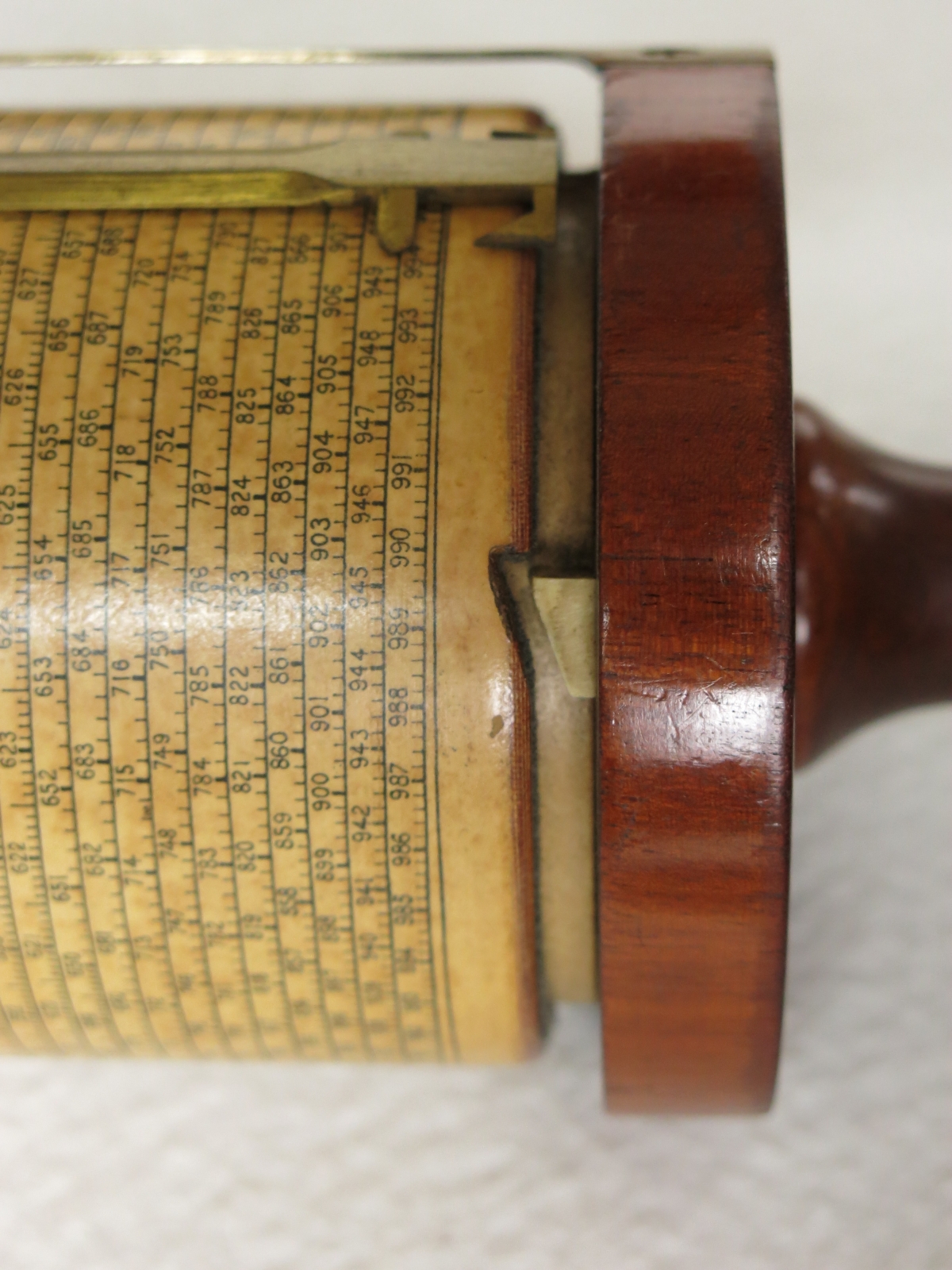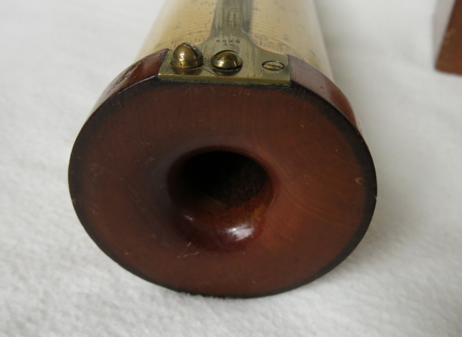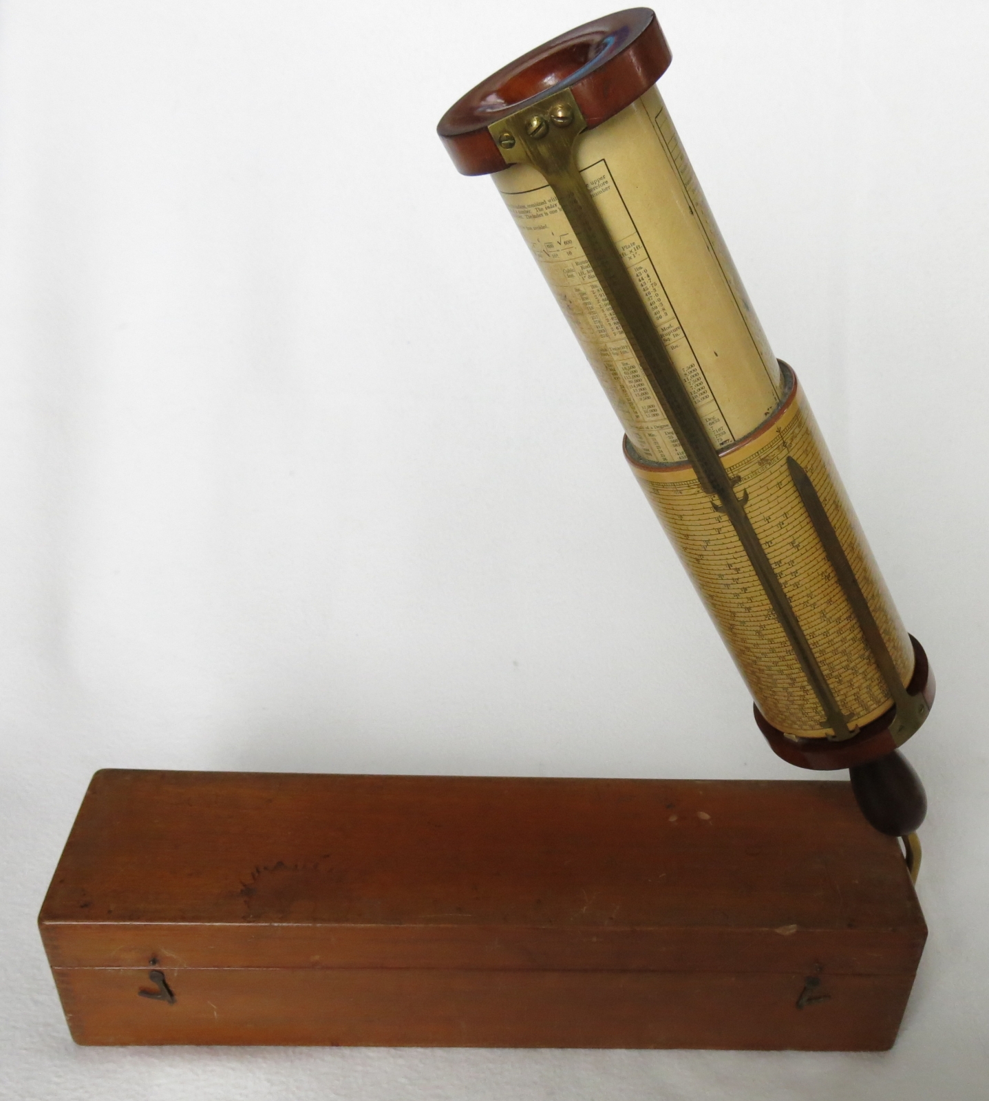 "Patented (GB187801044 & US219246) long-scale design by George M. Fuller - serial no. 6848 with conversion tables, natural sines & Birmingham Wire Gauge on inner fixed cylinder."