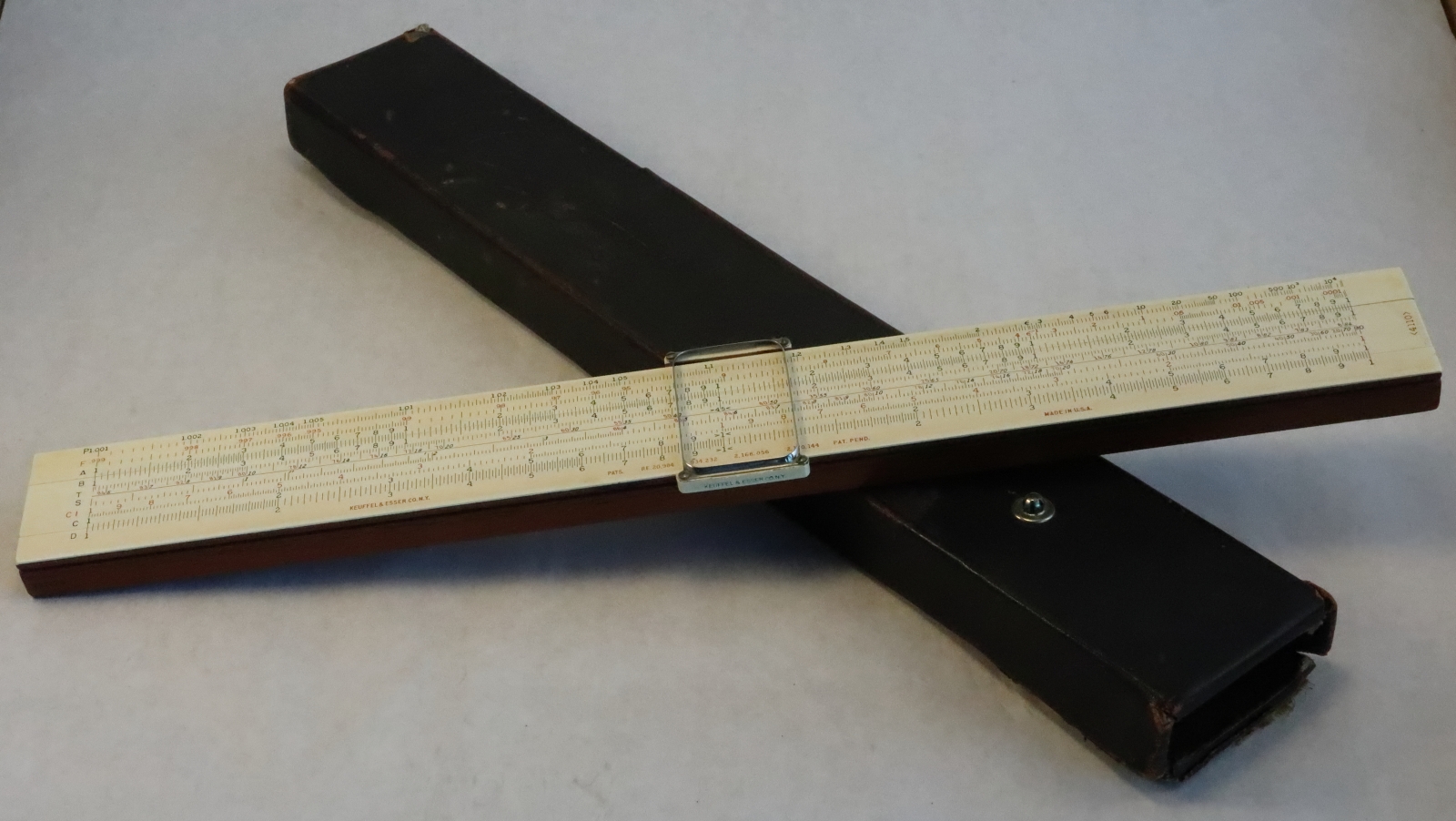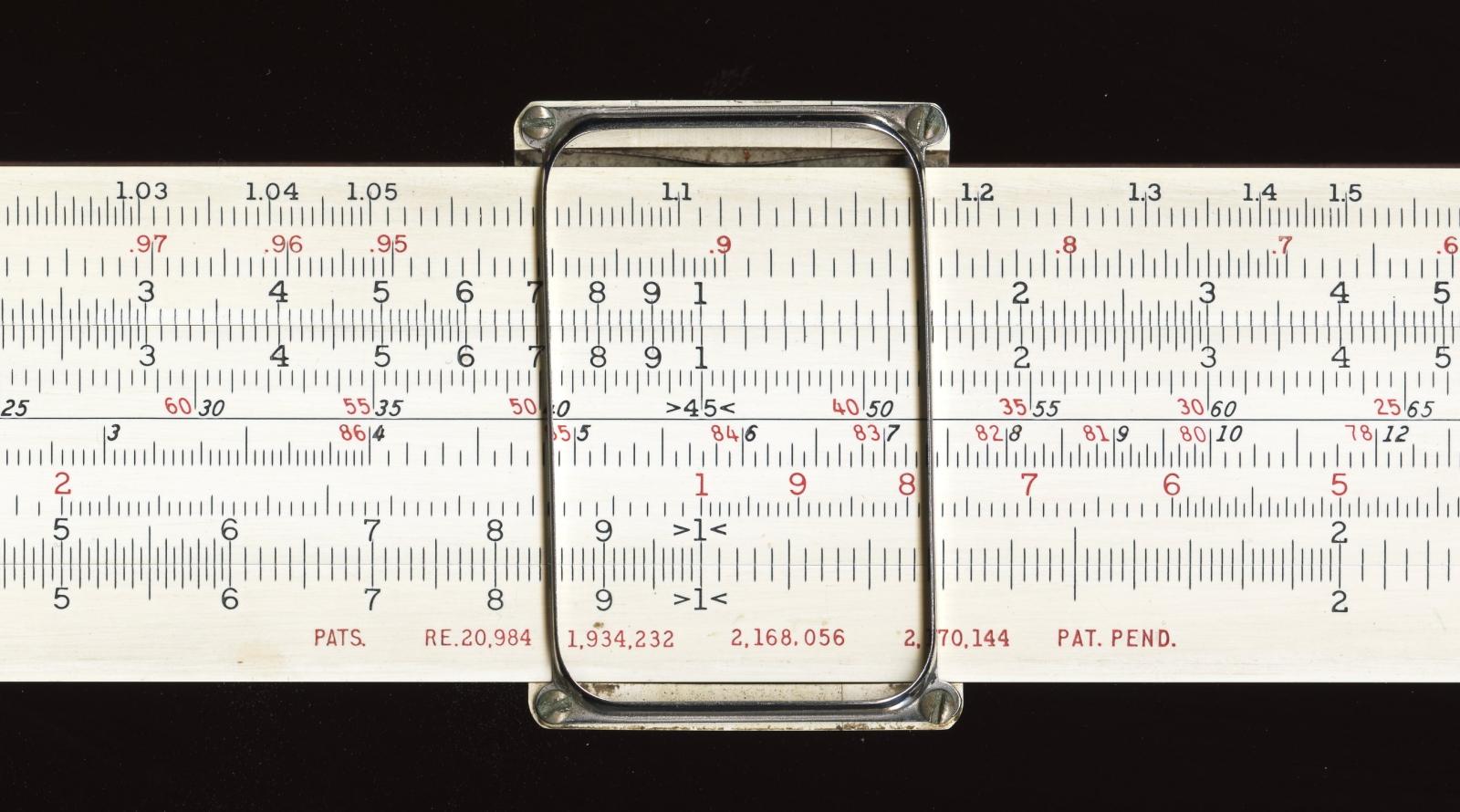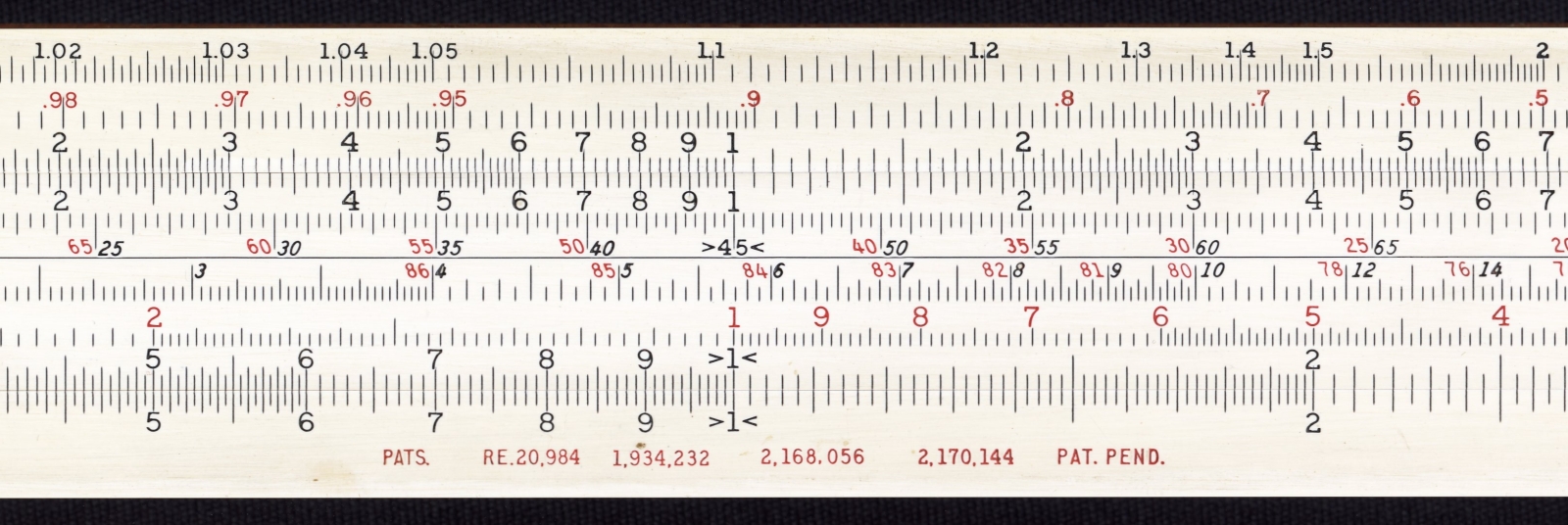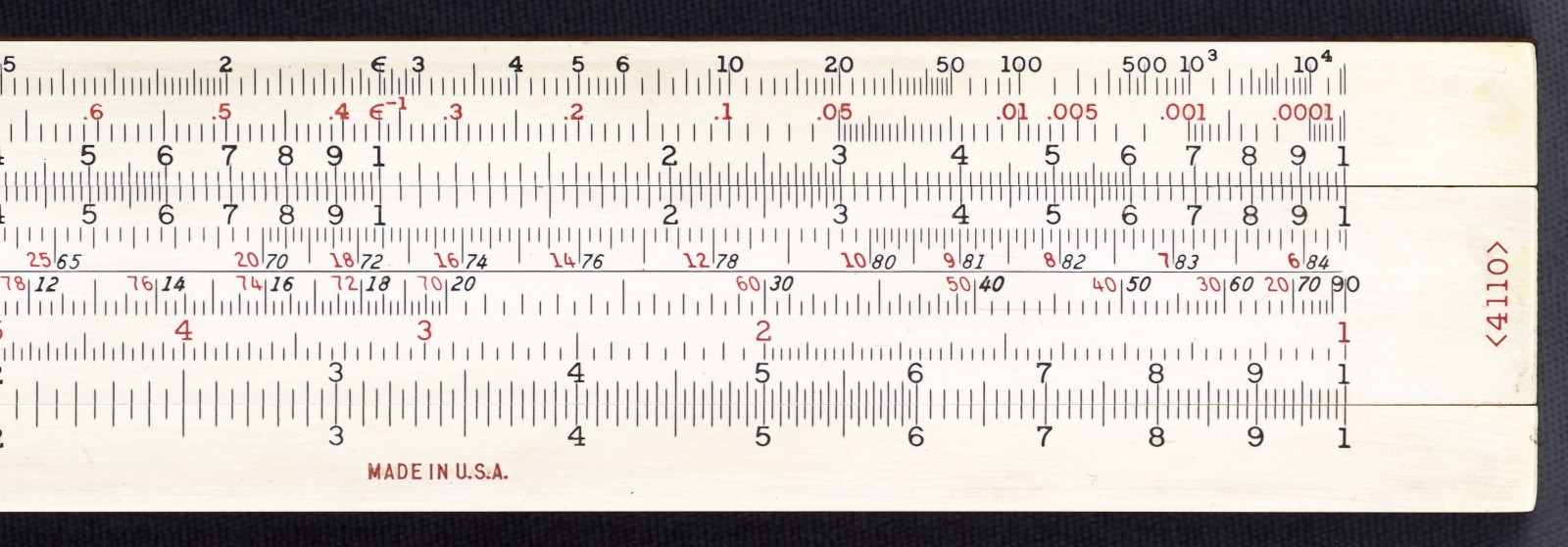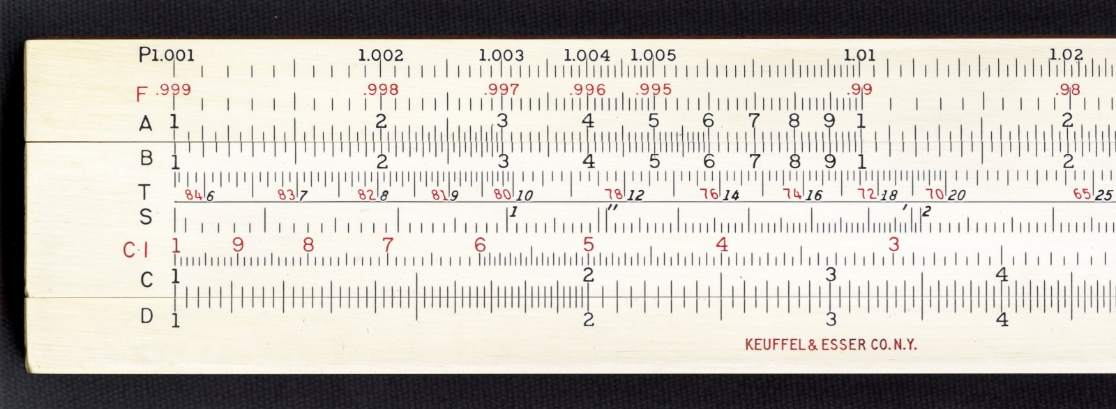 "This chunky Power Trig model was designed by four mathematics professors at the US Naval Academy in Annapolis, Maryland. Their goal was to speed up slide rule operations by simplifying the arrangement of the scales."