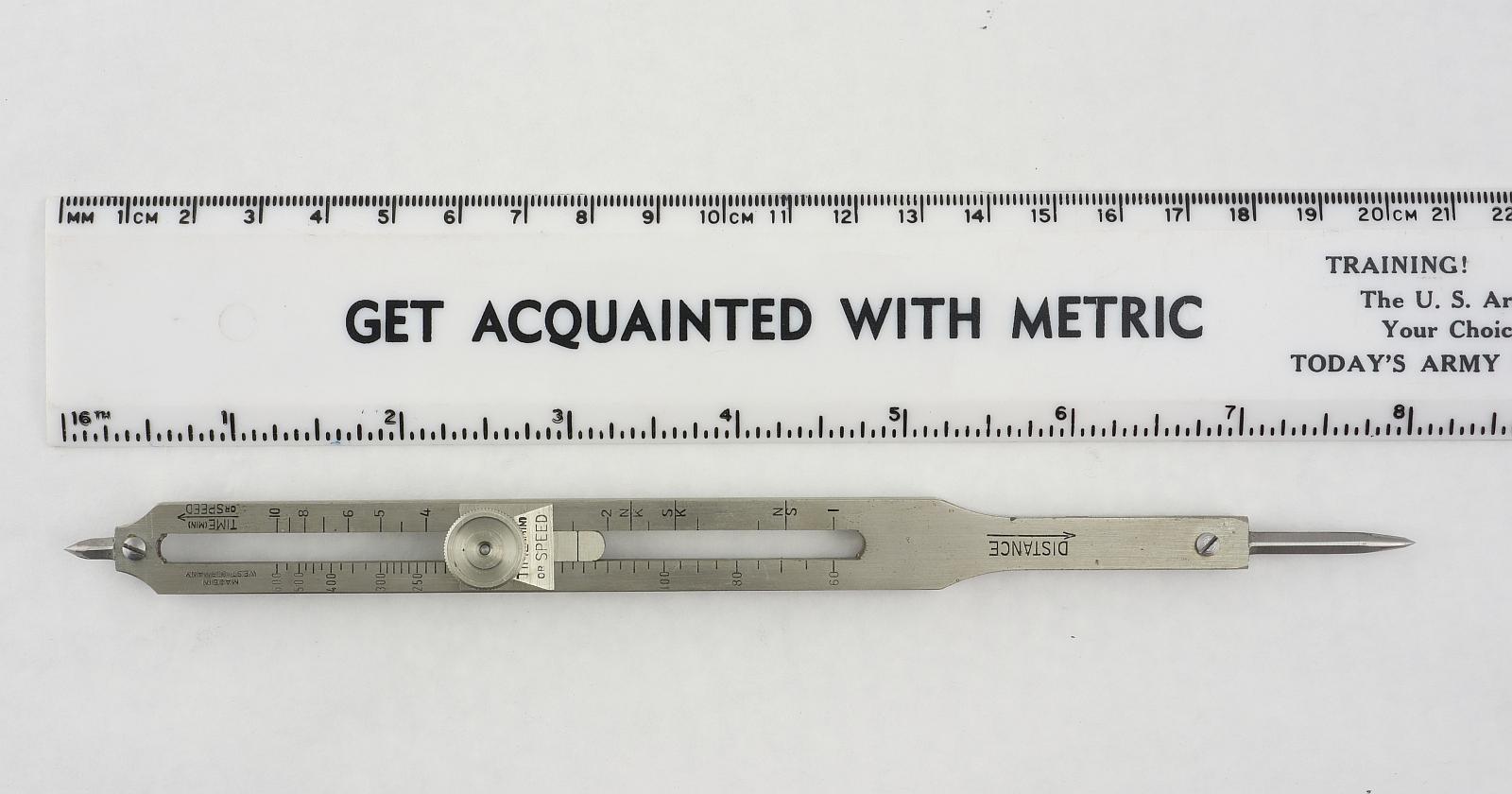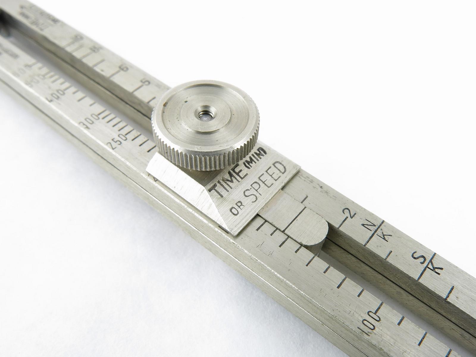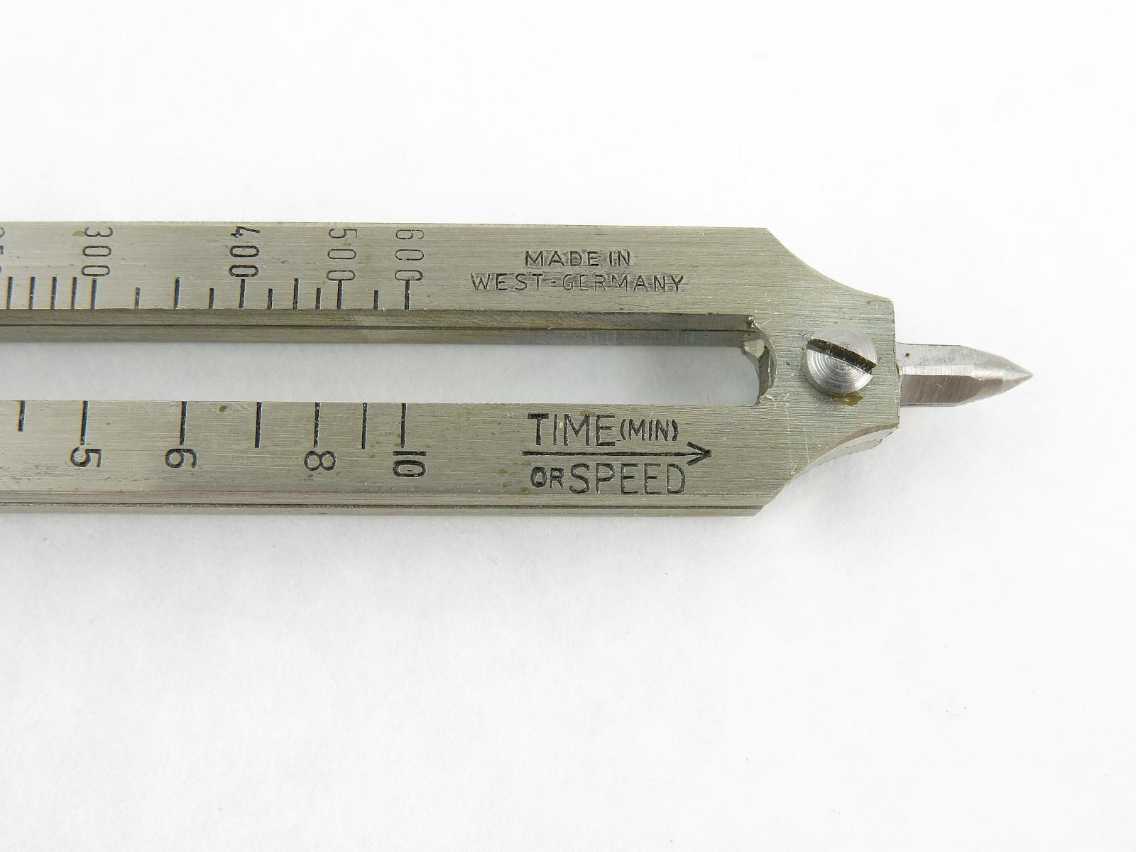 Notes: "The Weems & Plath proportional dividers are unusual among proportional dividers: they are specifically for time-speed-distance problems rather than the usual scaling up/scaling down, dividing circles into polygons, etc. The dividers are designed so that once they are set, you can spread the points to a given distance on a chart and immediately read off time or velocity. In addition to scales specific to their primary purpose, time-speed-distance solutions, these dividers also have a scale from 1 to 10 for setting the enlargement/reduction ratio as with conventional proportional dividers. "