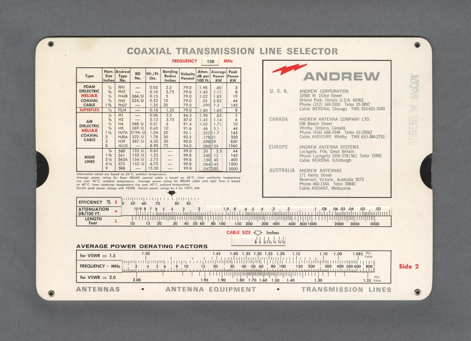 This is a slide chart for: (i) calculating microwave antenna performance and (ii) transmission by coaxial cables.
