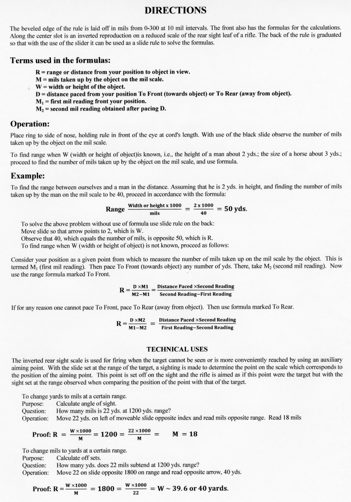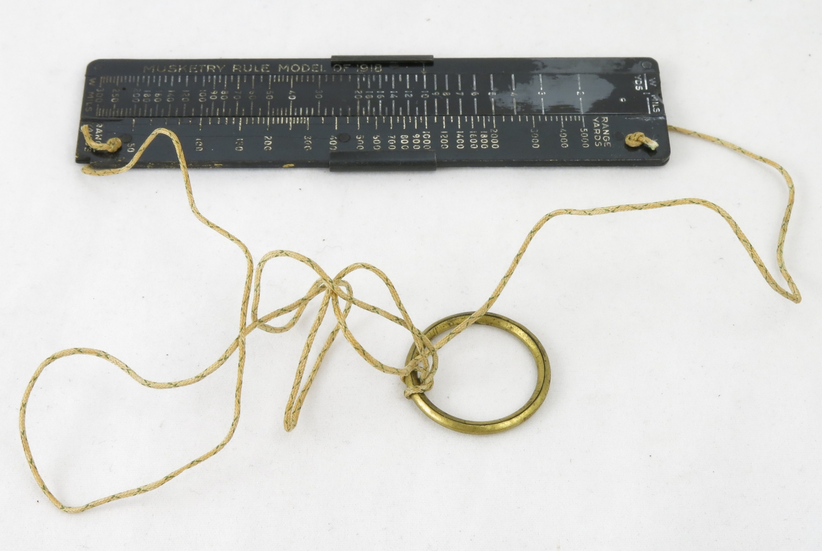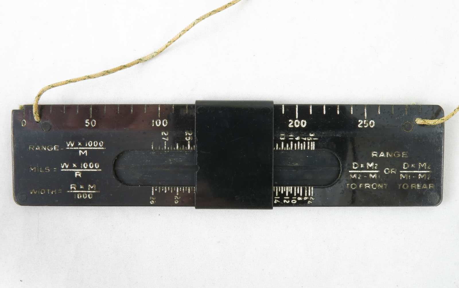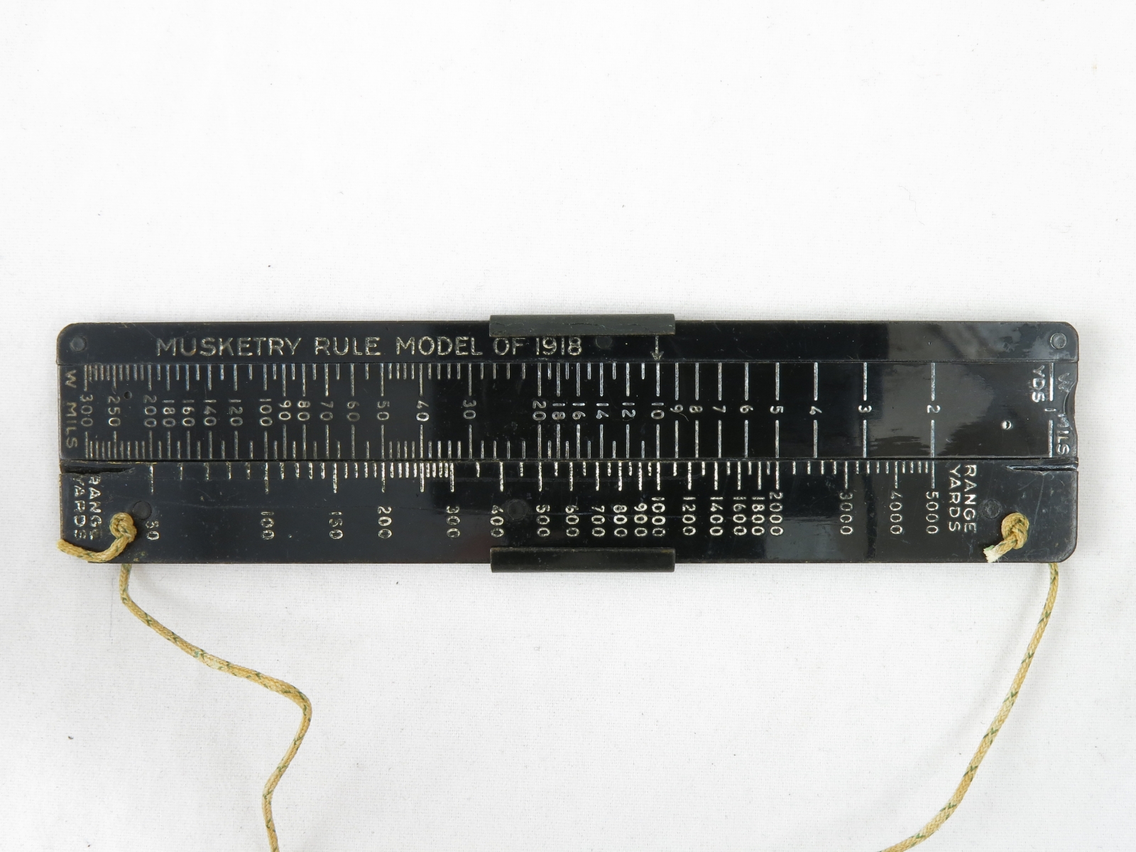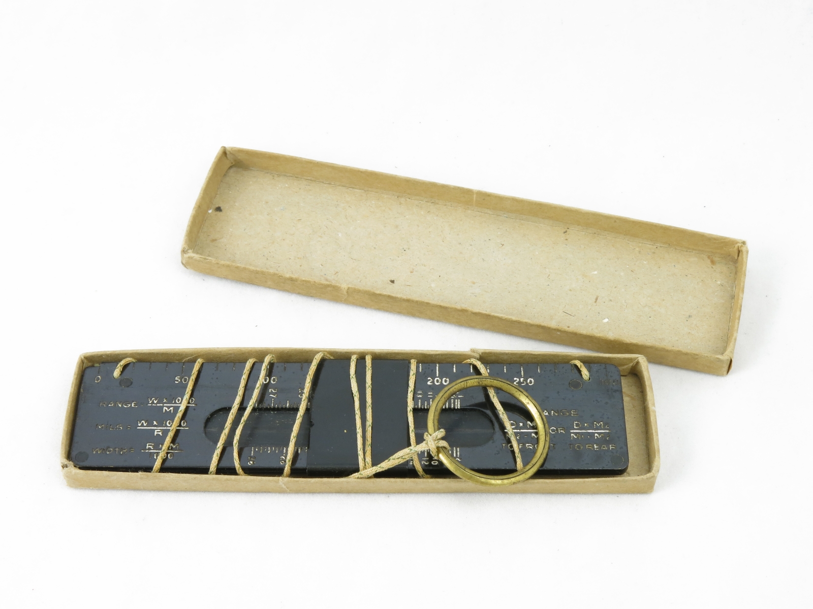 Notes: "Boxed aid (with a neck lanyard and distance gauge ) for snipers in WWI for determining the range to their target. Despite the 1918 in the model name, it was known to have been used by the US Army in conjunction with the M1903 Springfield sniper rifle from 1903 to 1936."