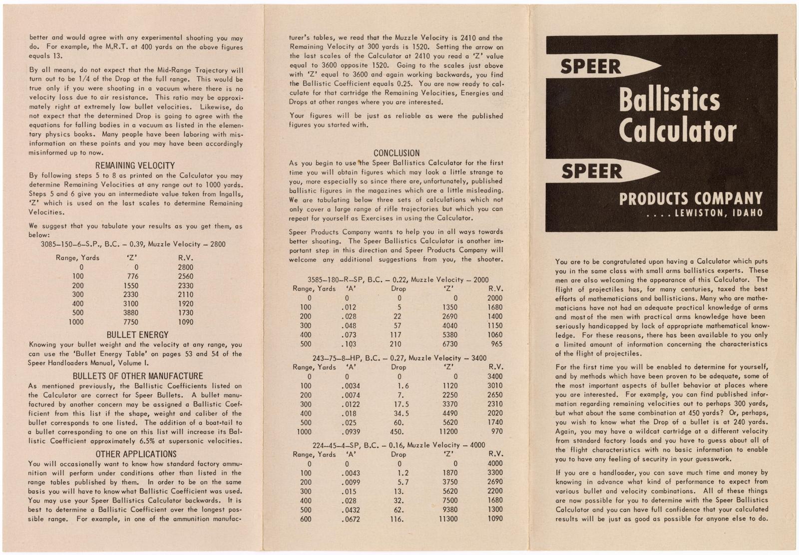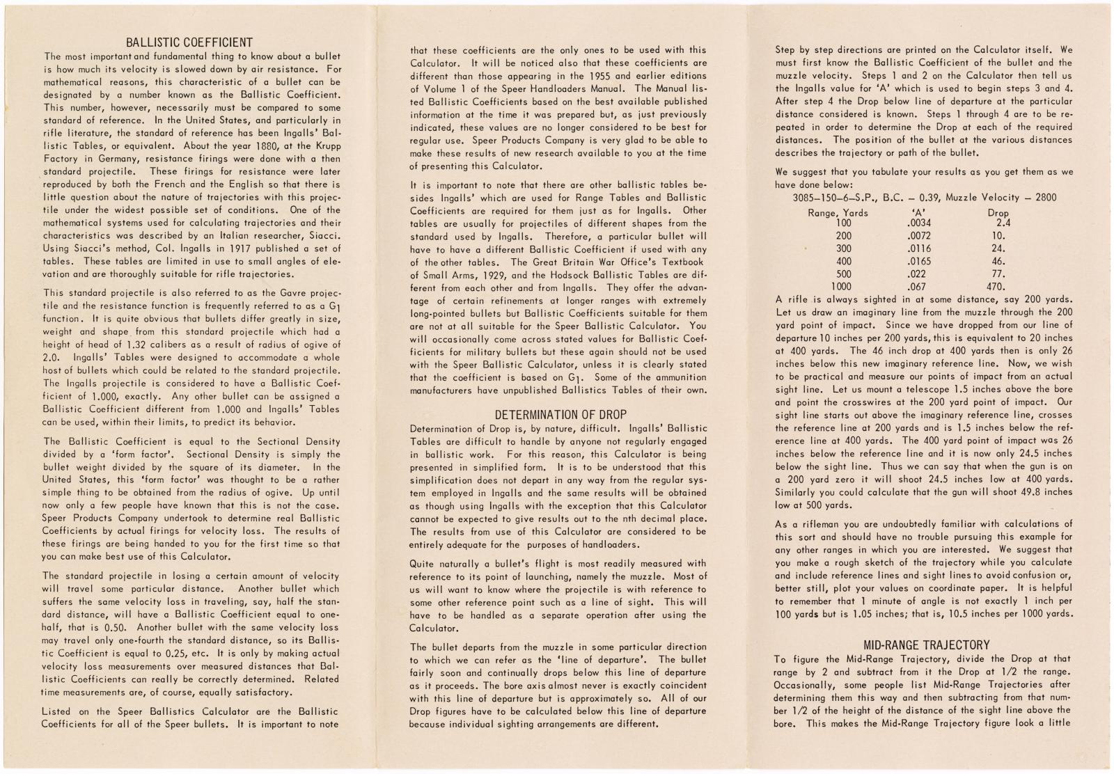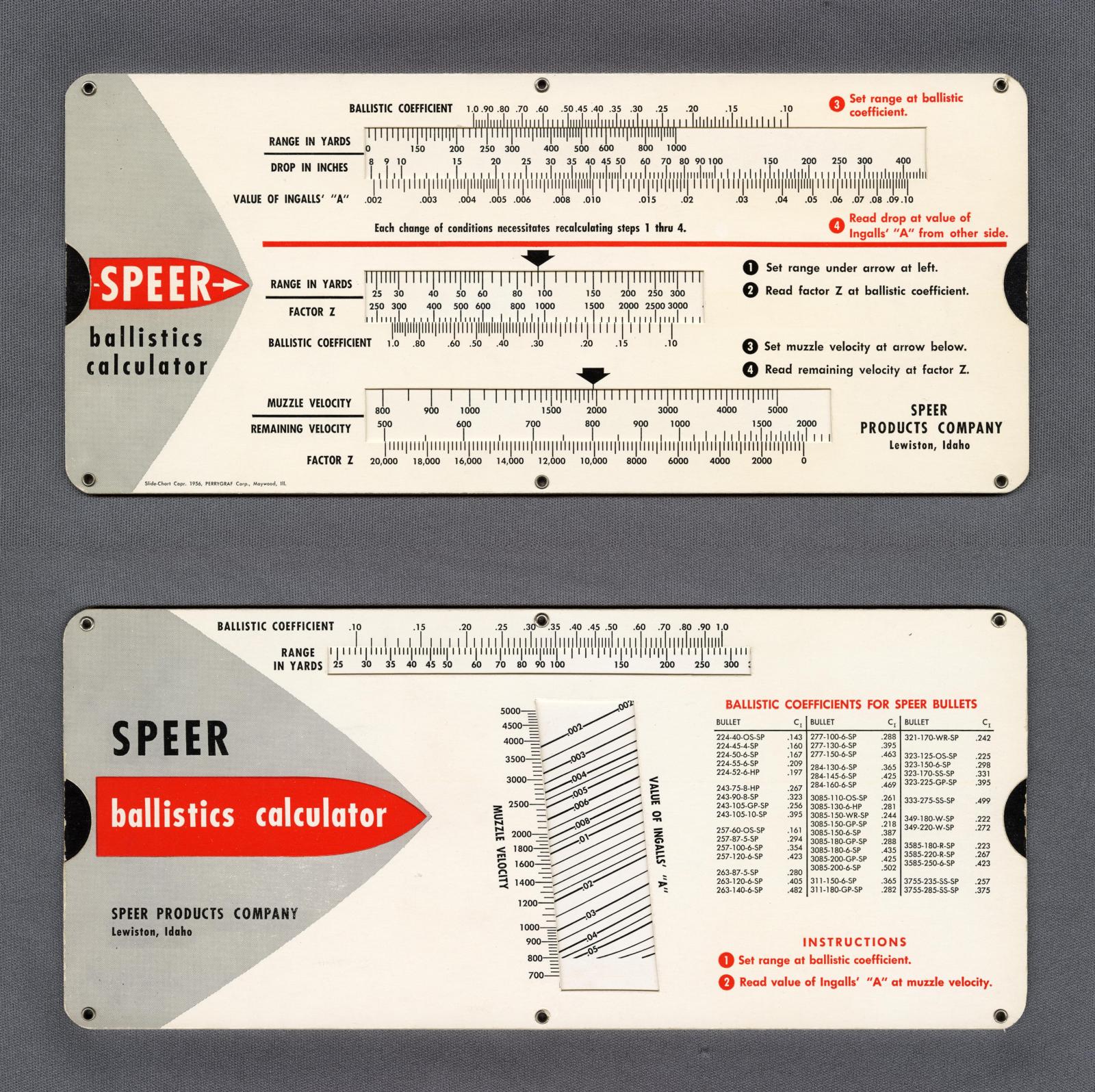 This is a slide chart for determining retained velocity and bullet drop at specified ranges given muzzle velocity and the ballistic coefficient of the bullet.