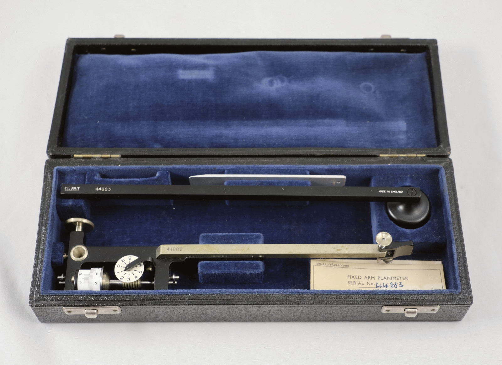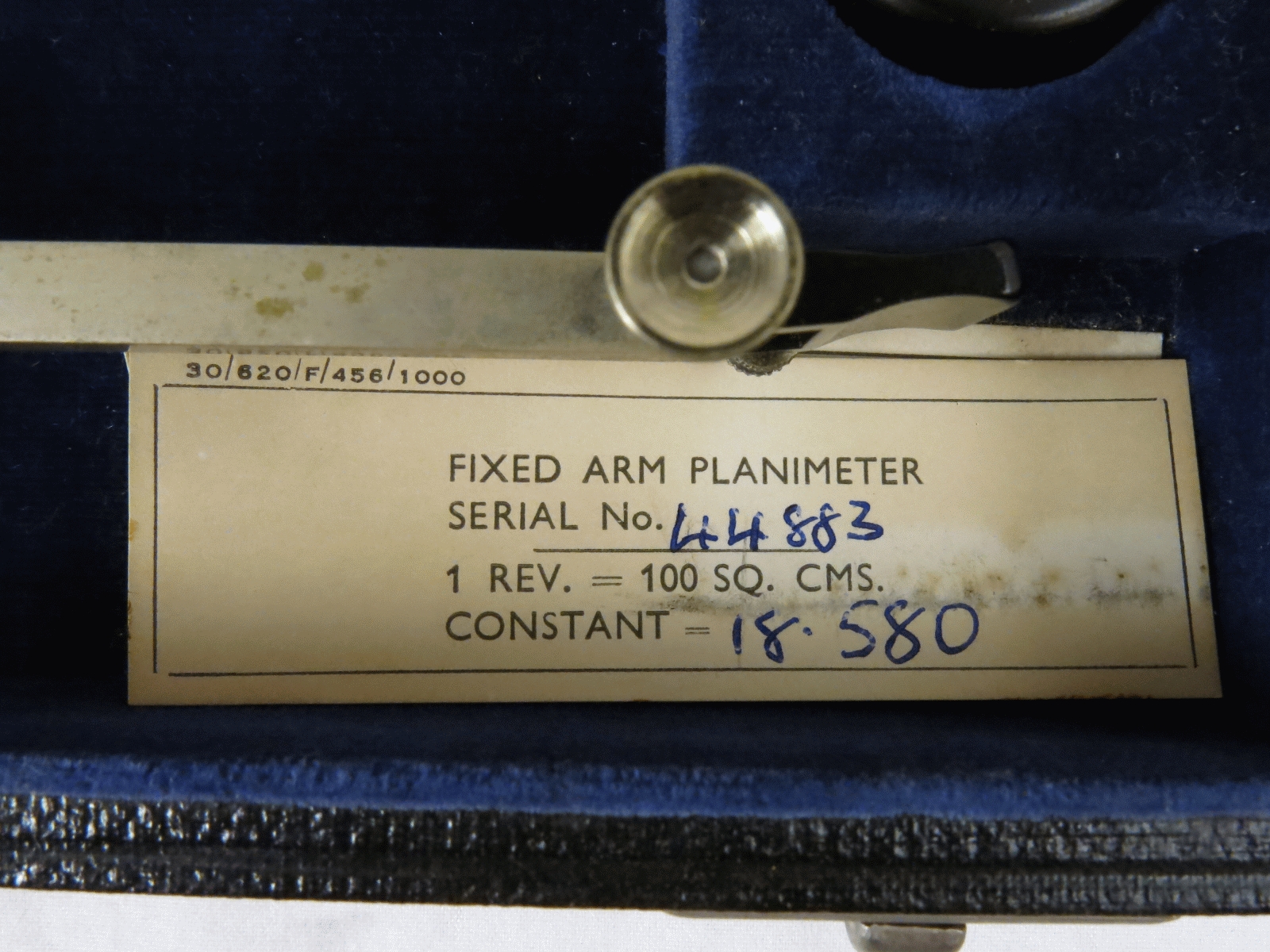 Notes: """Fixed Index"" refers to neither the pole arm or tracing arm being adjustable. In use this is not a big limitation, but you must determine a scale factor to convert the planimeter reading into the units of your drawing. The hand-held magnifying glass that would have come with this one is missing."