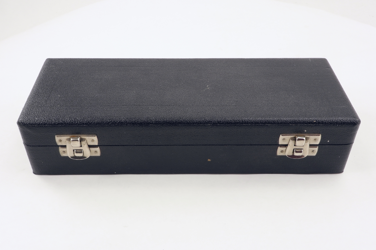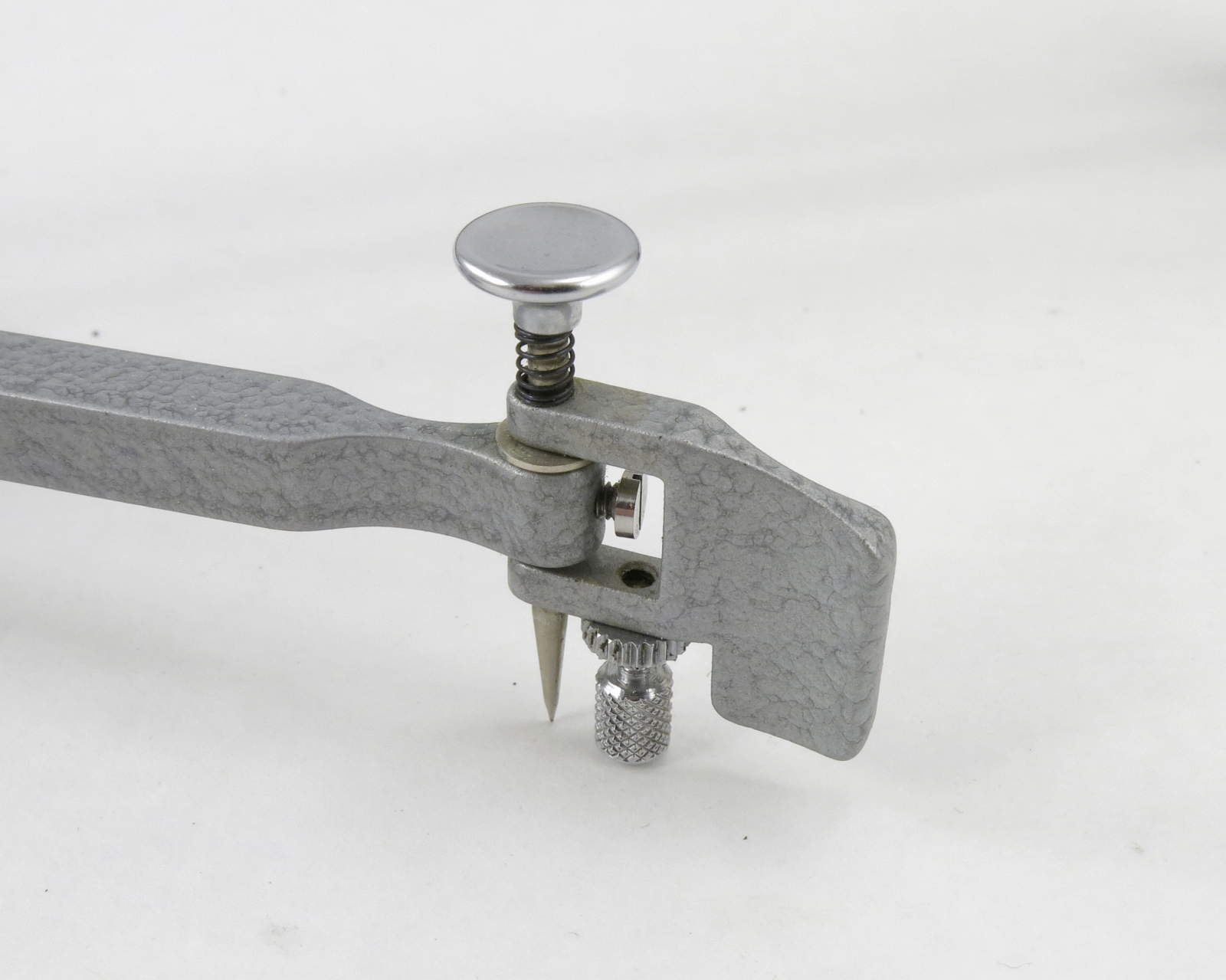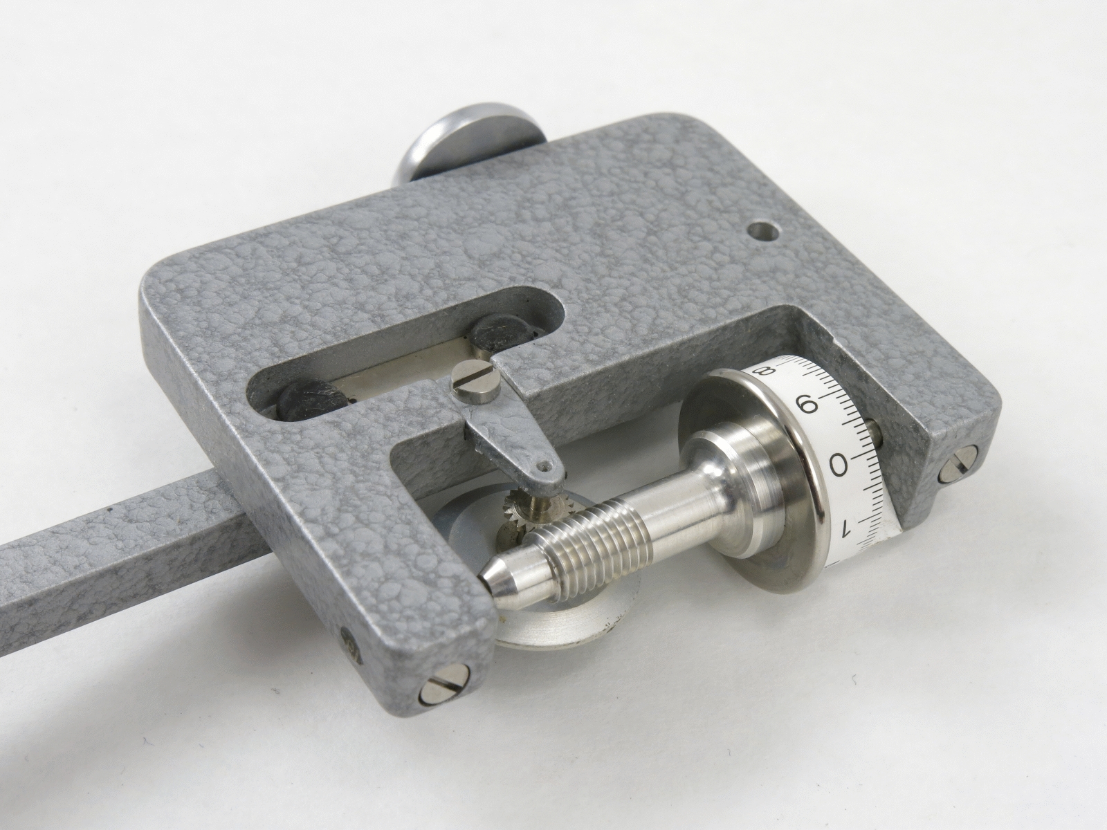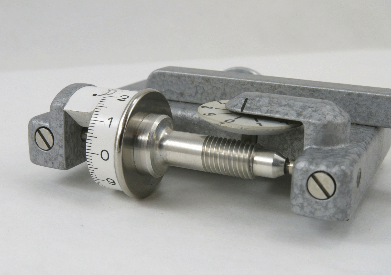 Notes: "This is an Ott Type 16 polar planimeter that was made for and sold by Dietzgen. There is no date, but the grey hammerite paint fairly screams 1950’s. It comes with everything: spare points for the weight, a screwdriver so you can install them, a checking rule, a clear plastic dust cover for the recording mechanism that can be left in place while you use the planimeter, and an excellent 12-page instruction book. "