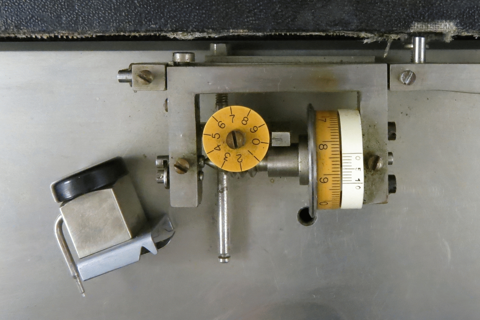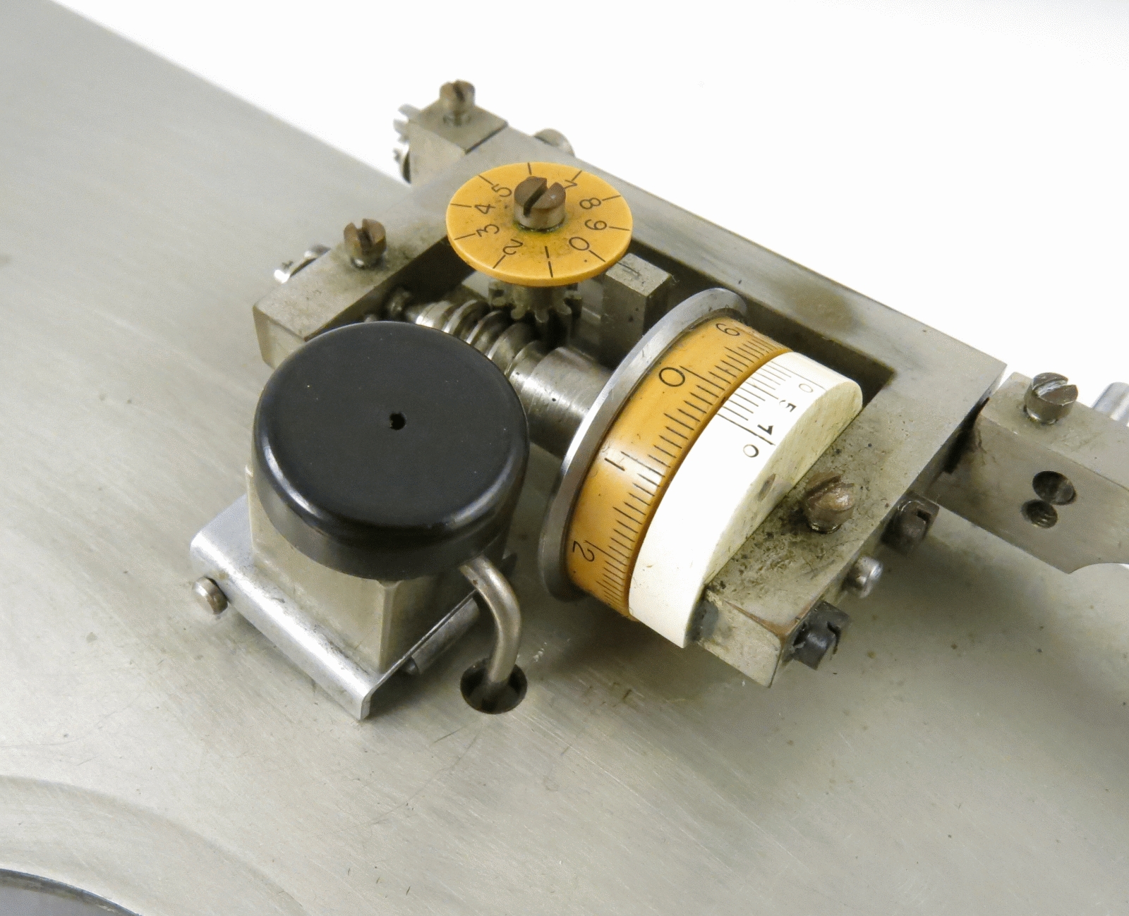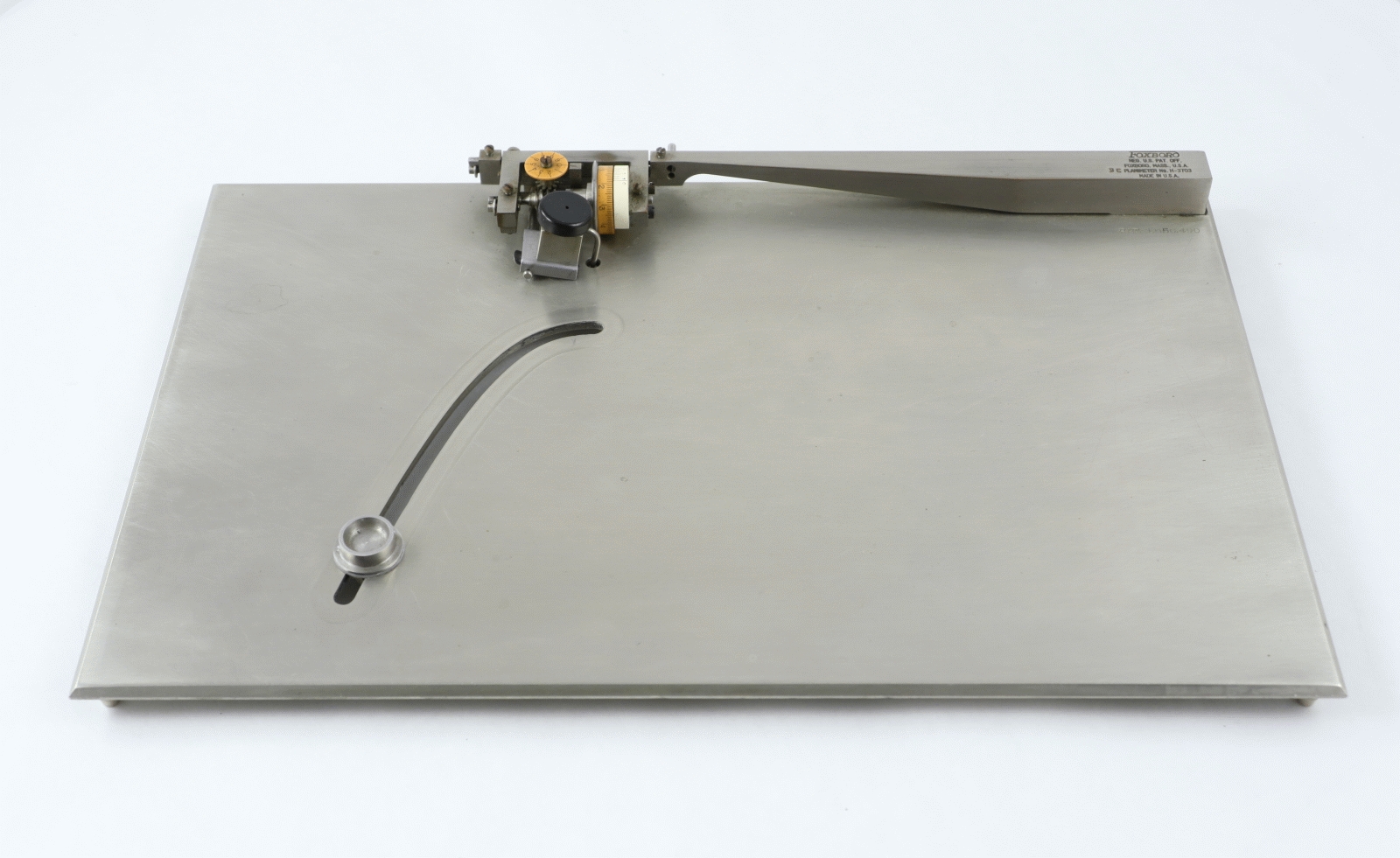 Notes: "Similar to Foxboro's radial planimeter, the recording head is fixed and the chart is rotated and moved undeath it. In this case the peg that the chart fix over is free to slide in a curved slot rather than a straight one, whch performs the square root function."