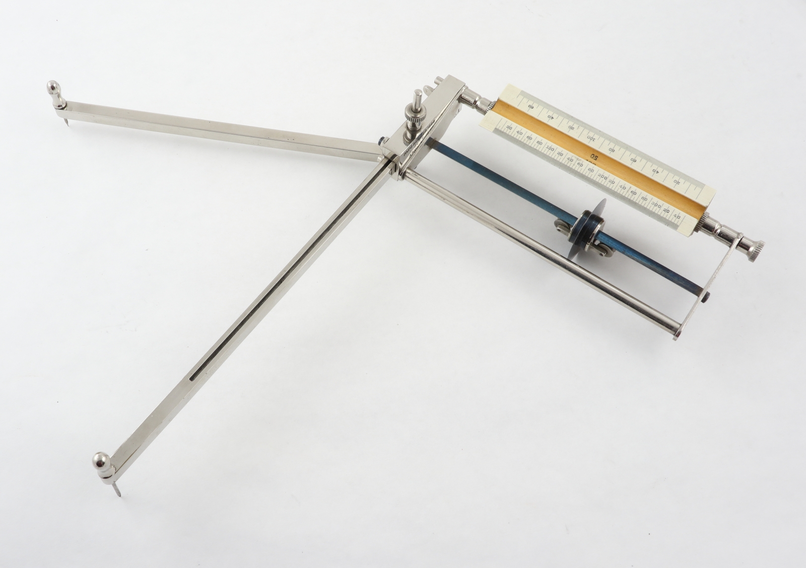 Notes: "The improved Willis Planimeter incorporates elements from the polar planimeter (a scale, on-board) and the hatchet planimeter (the knife-edged wheel recording mechanism). The rotating triangular ruler provided multiple scales for different drawing scales. This one displays patent dates from 1896 and 1901, and the serial number is 6061."