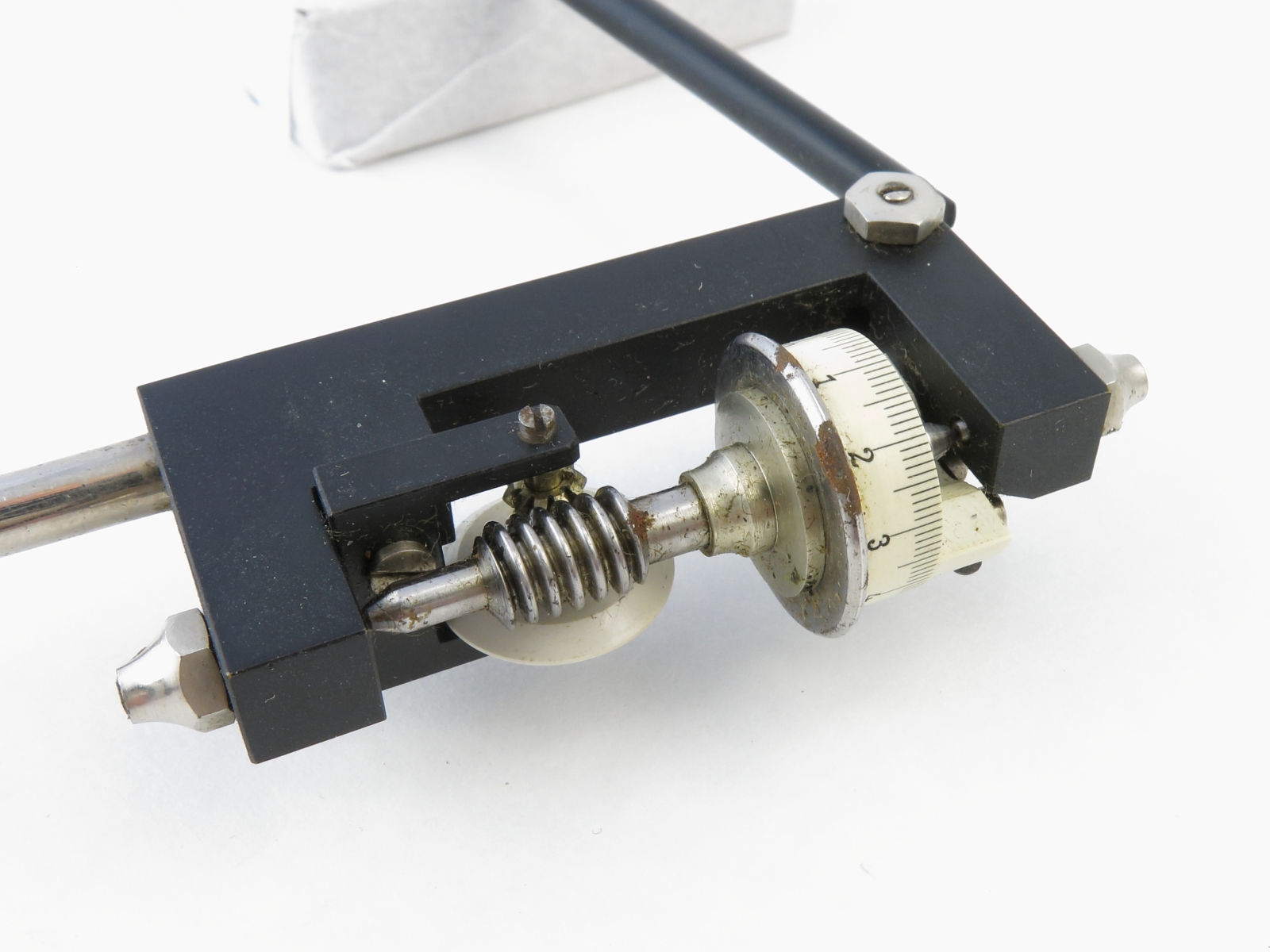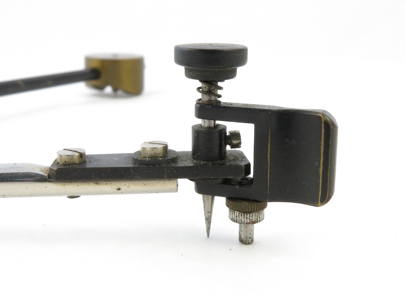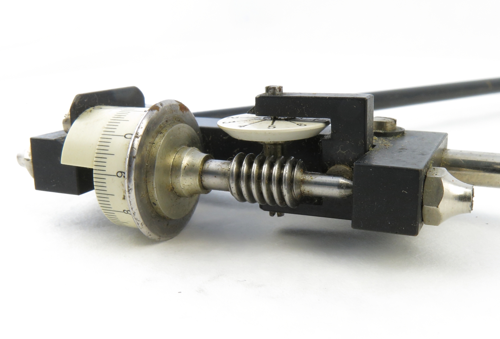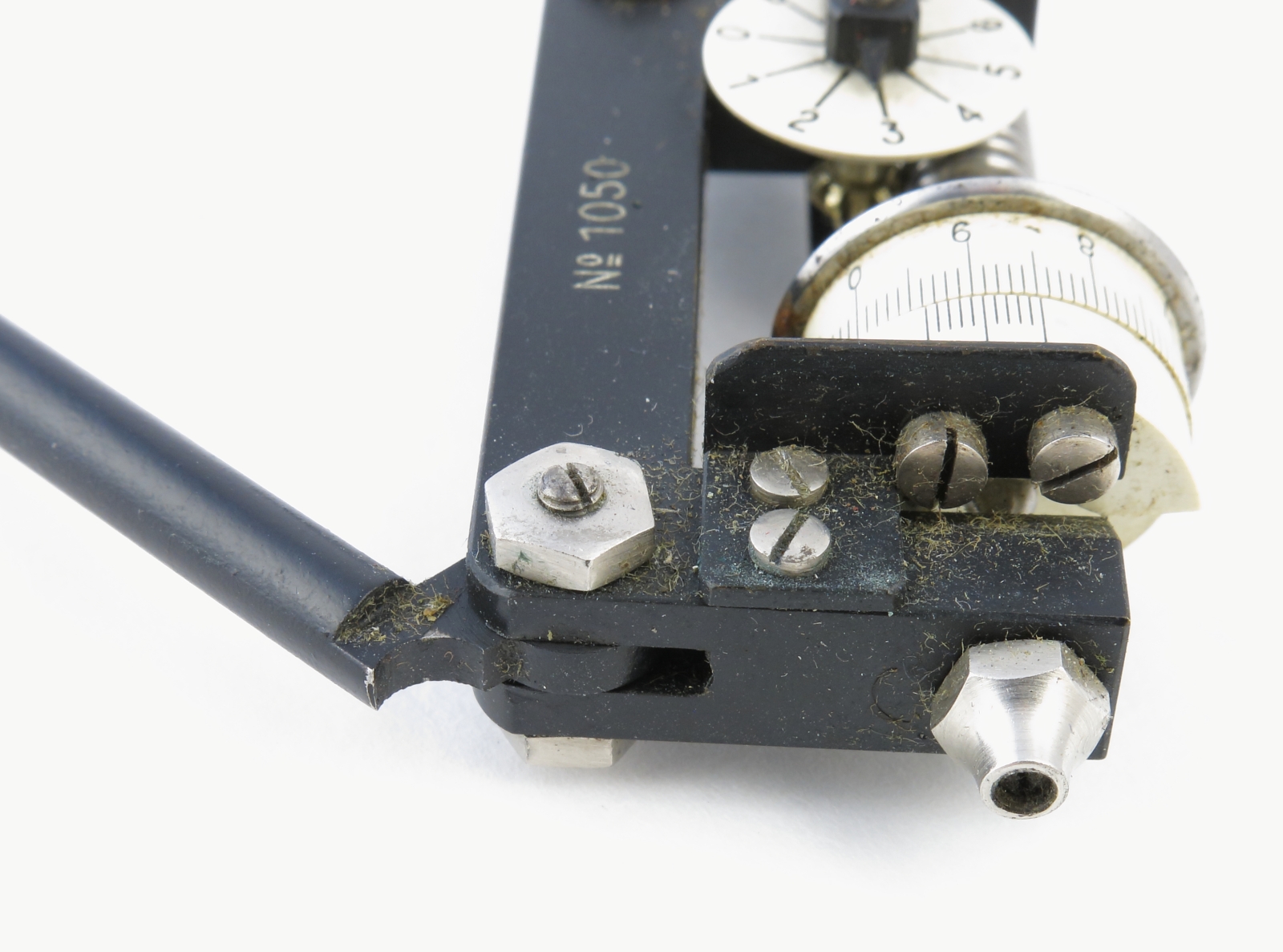 Notes: "In 1925 the K&E Model 4211 first appeared on a price list for the 1921 K&E catalog. In the 1927 catalog, the 4210 was gone and replaced by the 4211, which used a completely different style of construction and added a multiplier wheel. K&E described the 4211 as ""the polar planimeter in its simplest form,"" probably because of the fixed-length pole and tracing arms. This one is serial number 1050. "