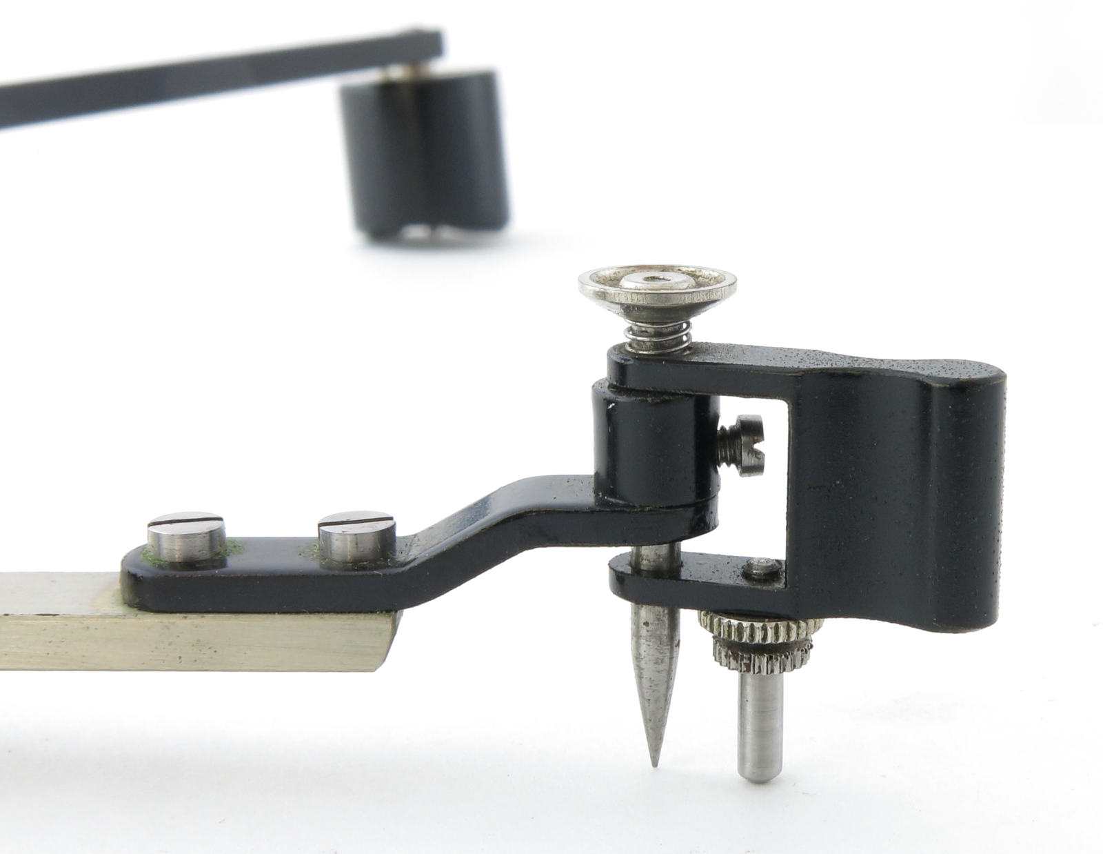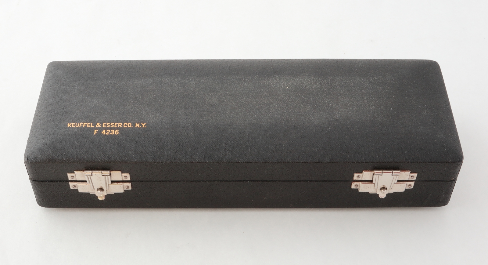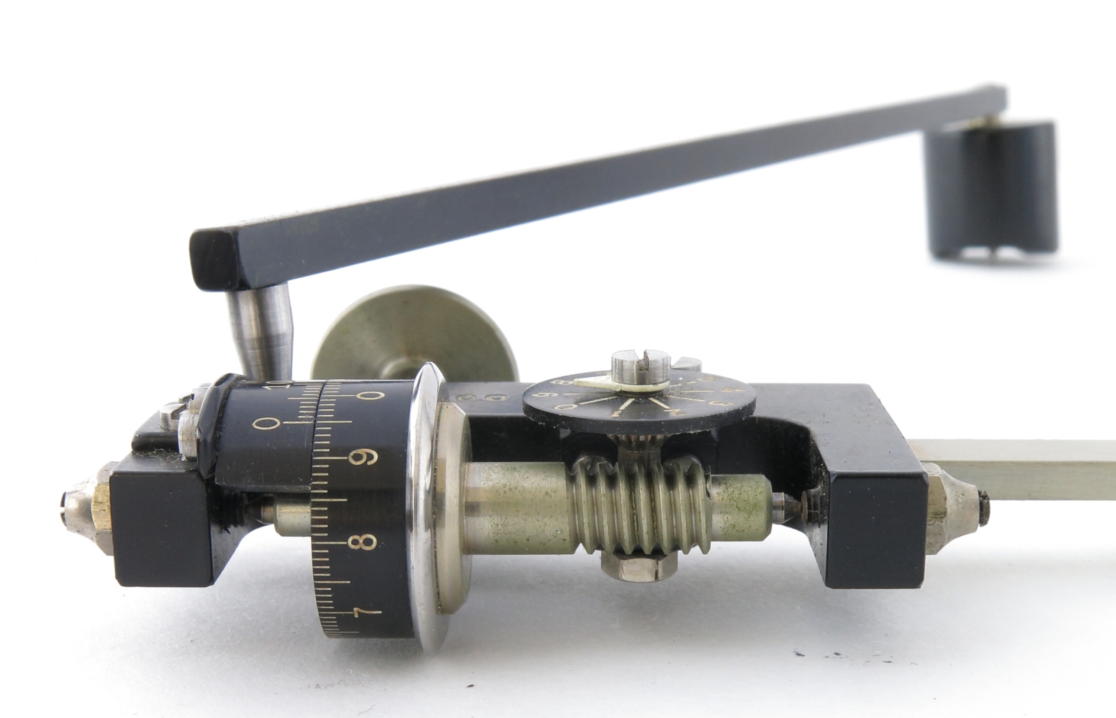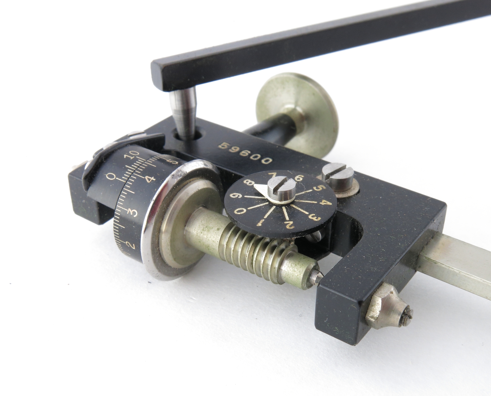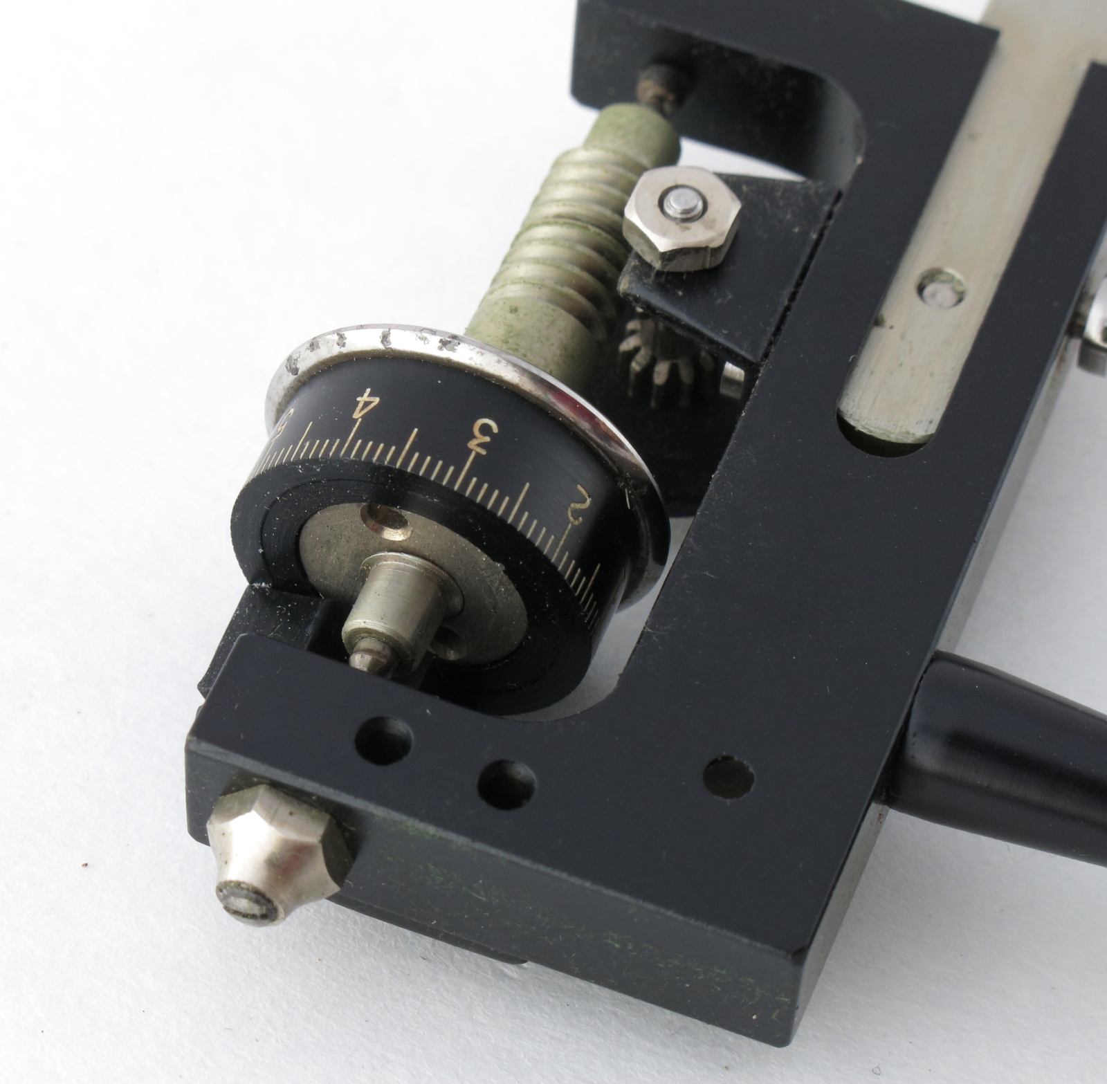 Notes: "There is no information on when this style of 4236 planimeter was made. The white-on-black markings on the tracing wheel, vernier, and multiplier disc are unusual. The best estimate for a date is mid 1950's, as the next iteration had a closed-top design, with the tracing wheel protected from dust and dirt."
