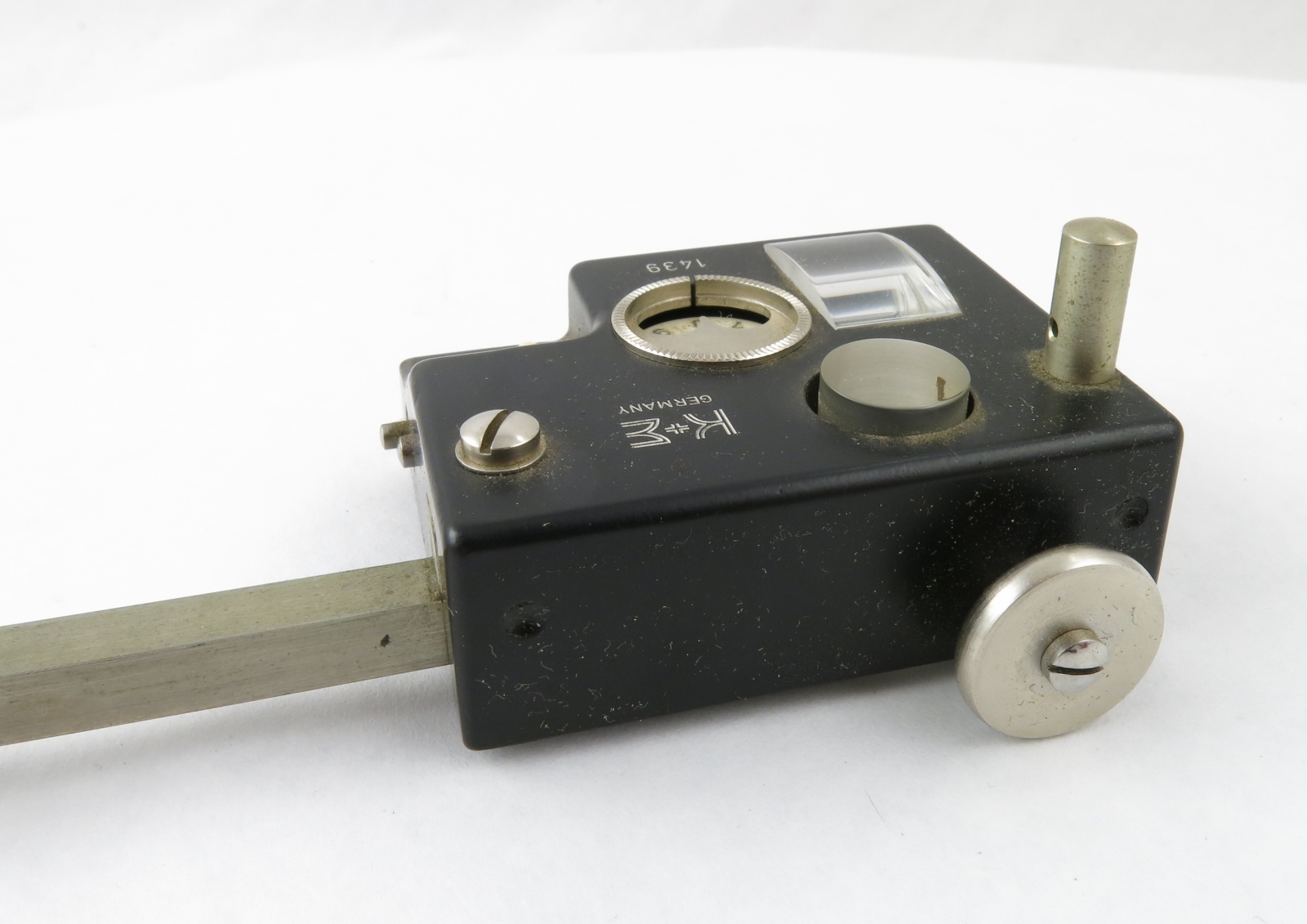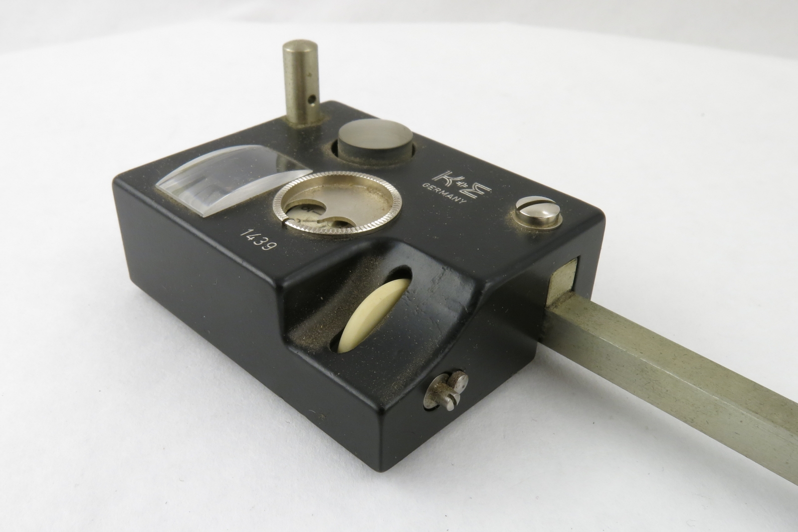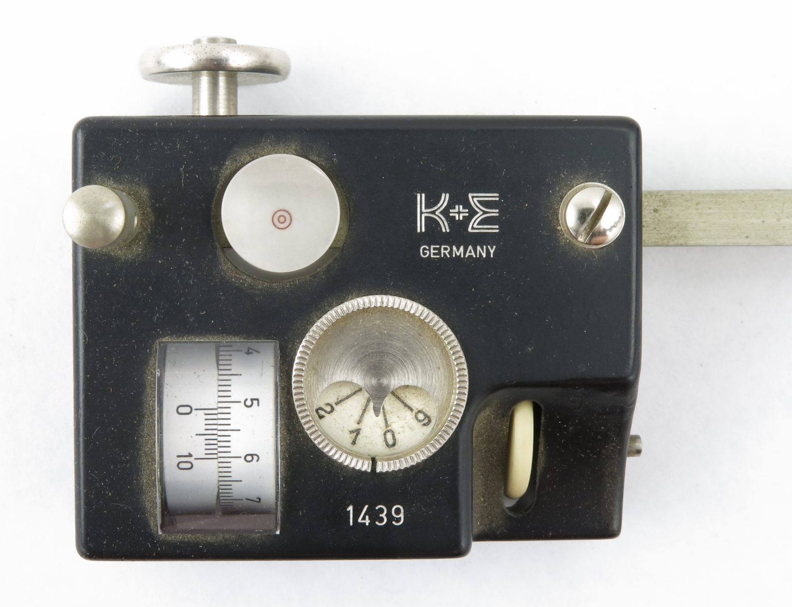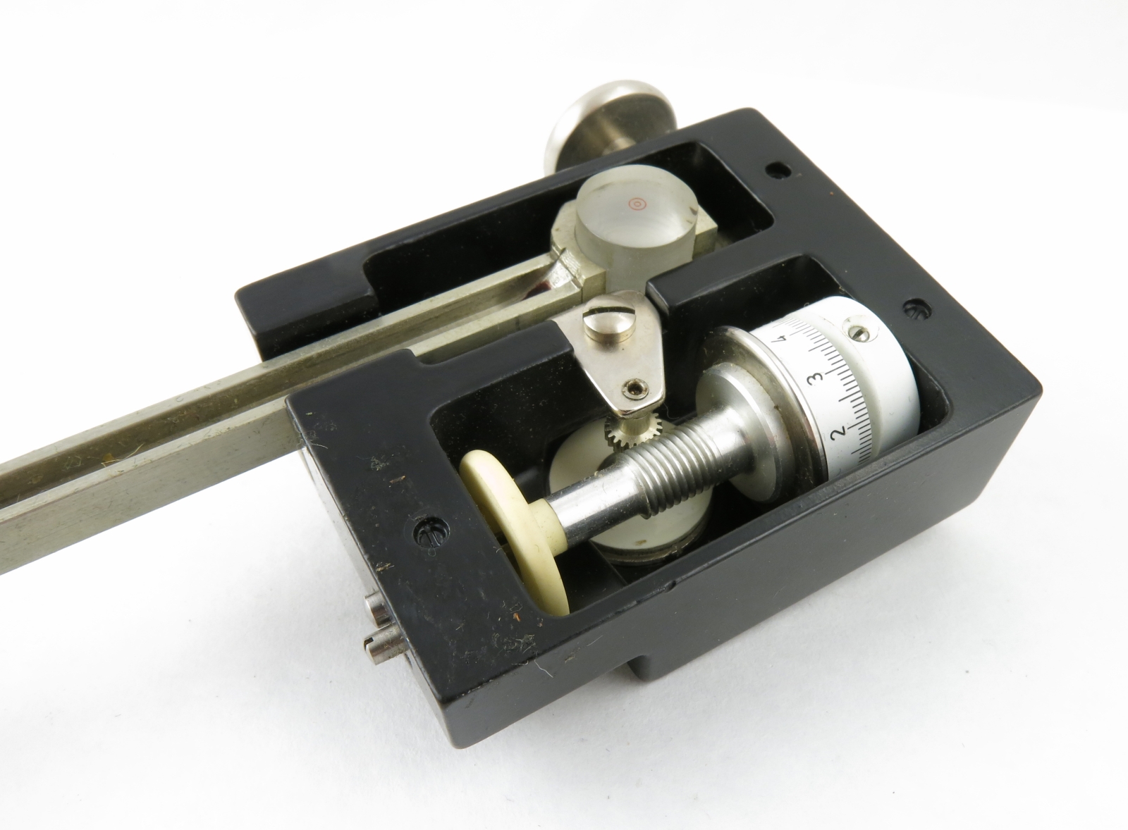 Notes: "The 62 0100 radial planimeter is the former Model 4215, with the ""modern"" covered mechanism and plastic wheel for zeroing the planimeter. The tracing ""point"" is a magnifying glass built into the cursor frame, with a red bullseye for tracing the chart."