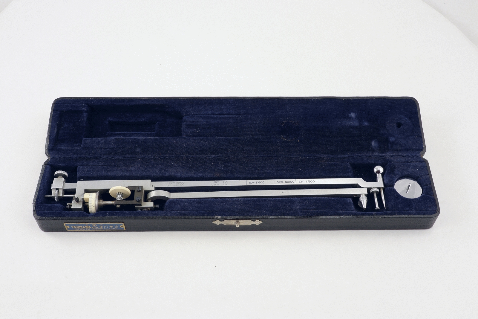 Notes: "This appears to be an excellent copy of the Amsler Type 4 planimeter. The only brand marking is on a metal plate on the box and says, “Yasukawa & Co. Yokohama”. Yasukawa may have been the manufacturer, but it is much more likely that they were the retailer and the planimeter was made by someone else in Japan, perhaps Tamaya. There is no brand name, model name, or serial number on the planimeter itself."