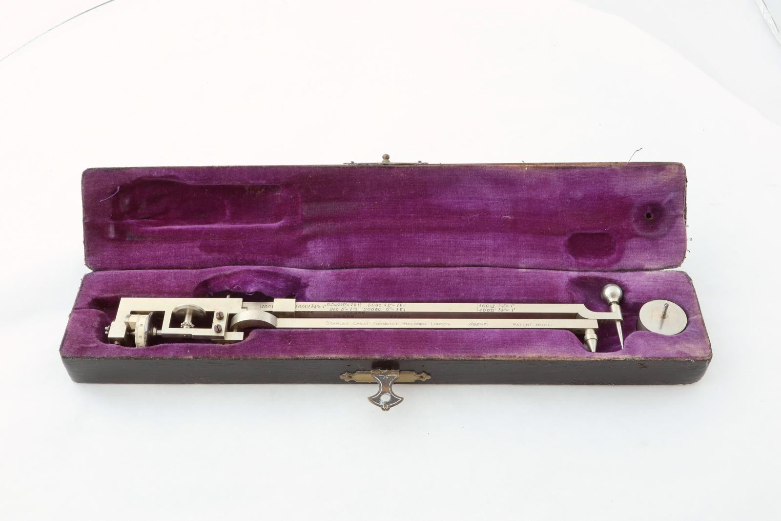 "This is an Amsler Type 4 planimeter that was sold by W.F. Stanley in the UK. The serial number, 21200, indicates that this was (very approximately) made in 1880."