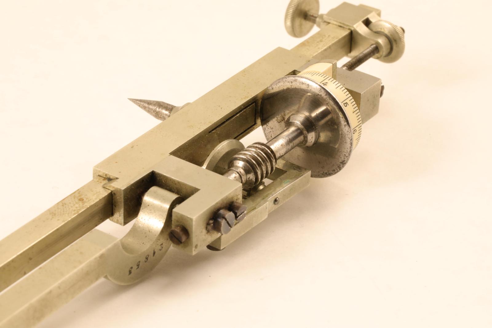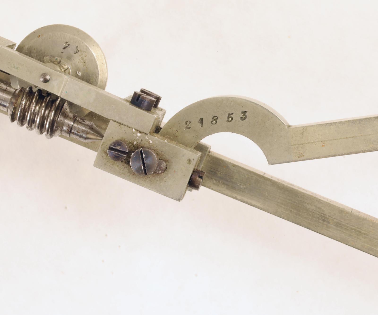 Notes: "This is an Amsler Type 6 planimeter that was sold by W.F. Stanley in the UK. The Type 6 differs from the Type 4 by having two spike sticking up from the tracing arm. Those spikes are used to determine the mean height of indicator diagrams. Based on the serial number, 21853, this planimeter was made in approximately 1880."