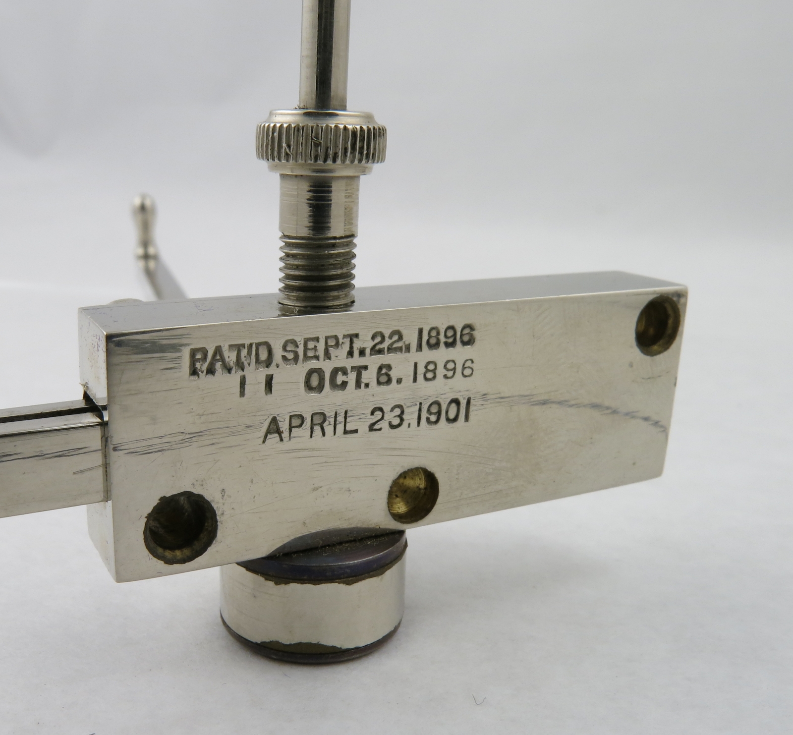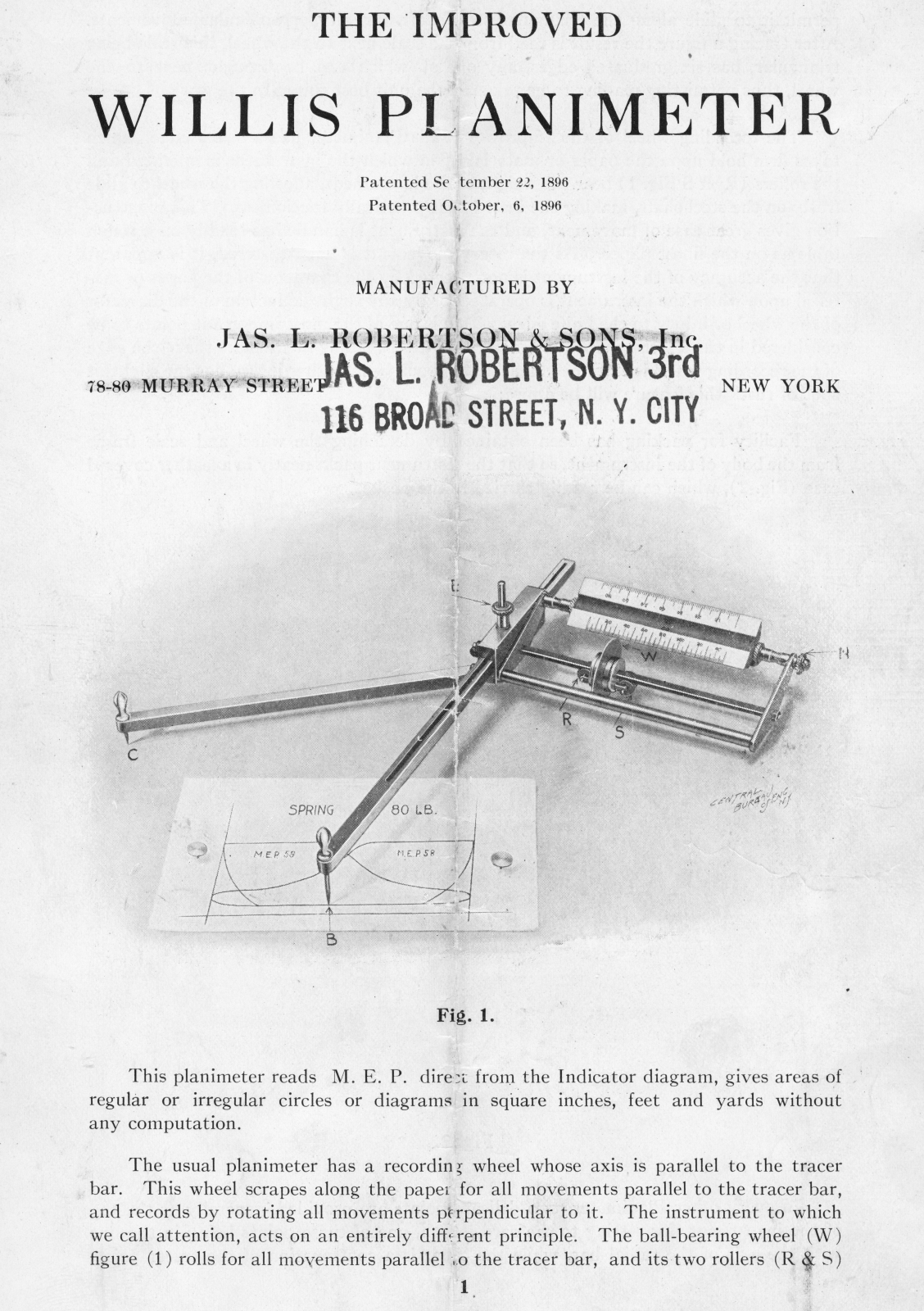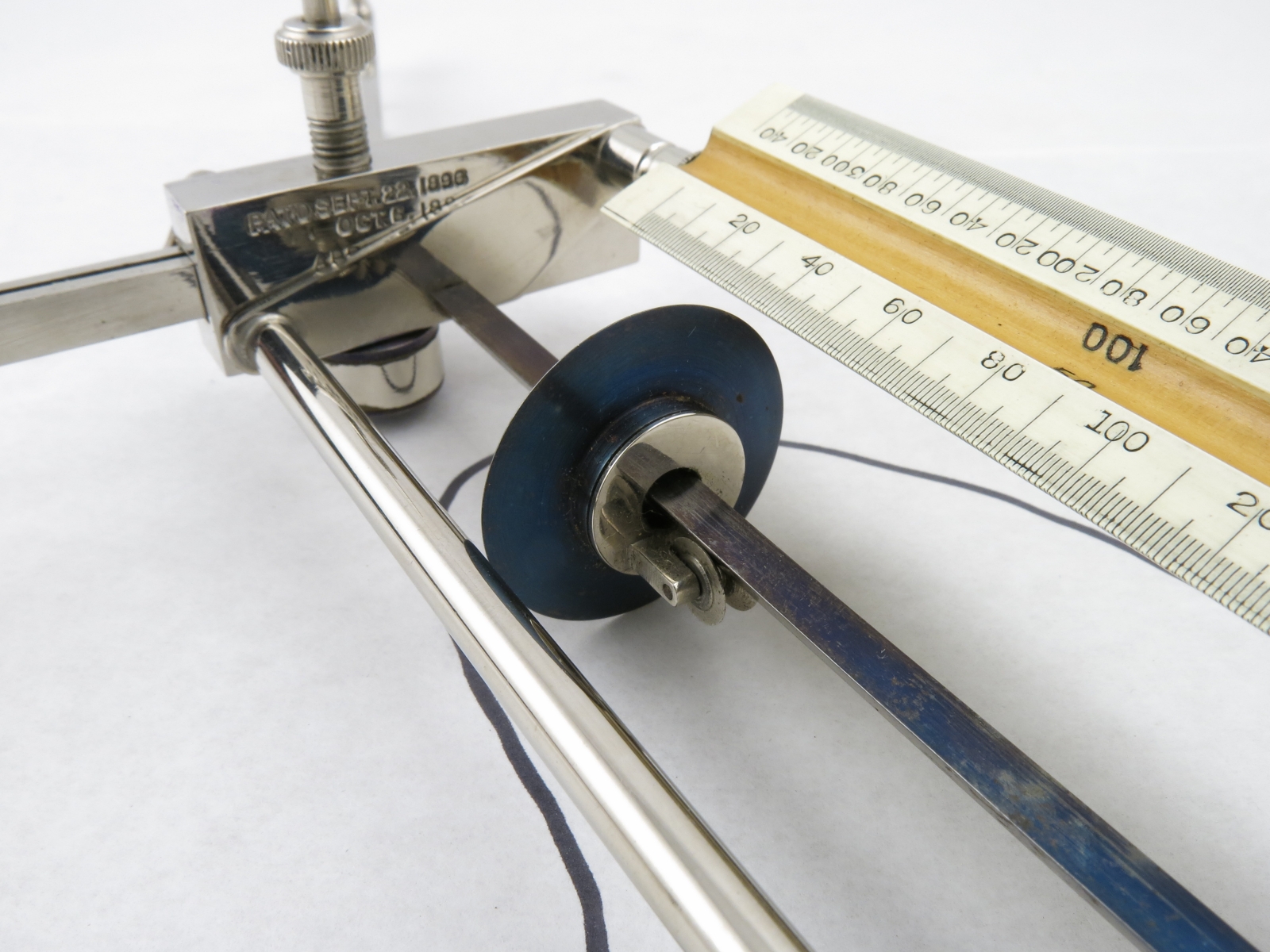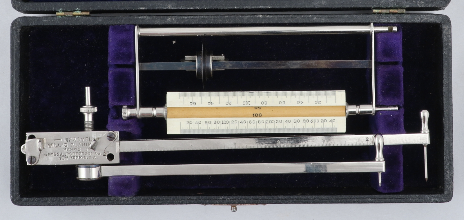 Notes: "This is the improved model of the Willis Planimeter, incorporating the changes in the 1896 and 1901 patents. The tracing wheel on this one rides on ball bearings along a triangular blued steel rod. "