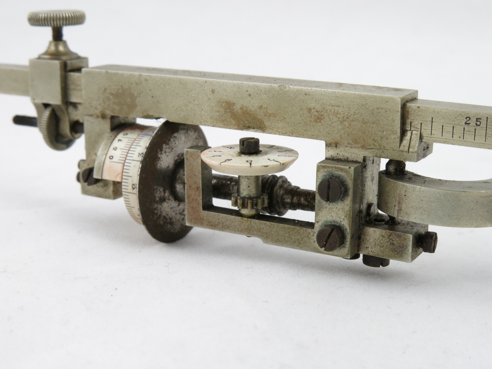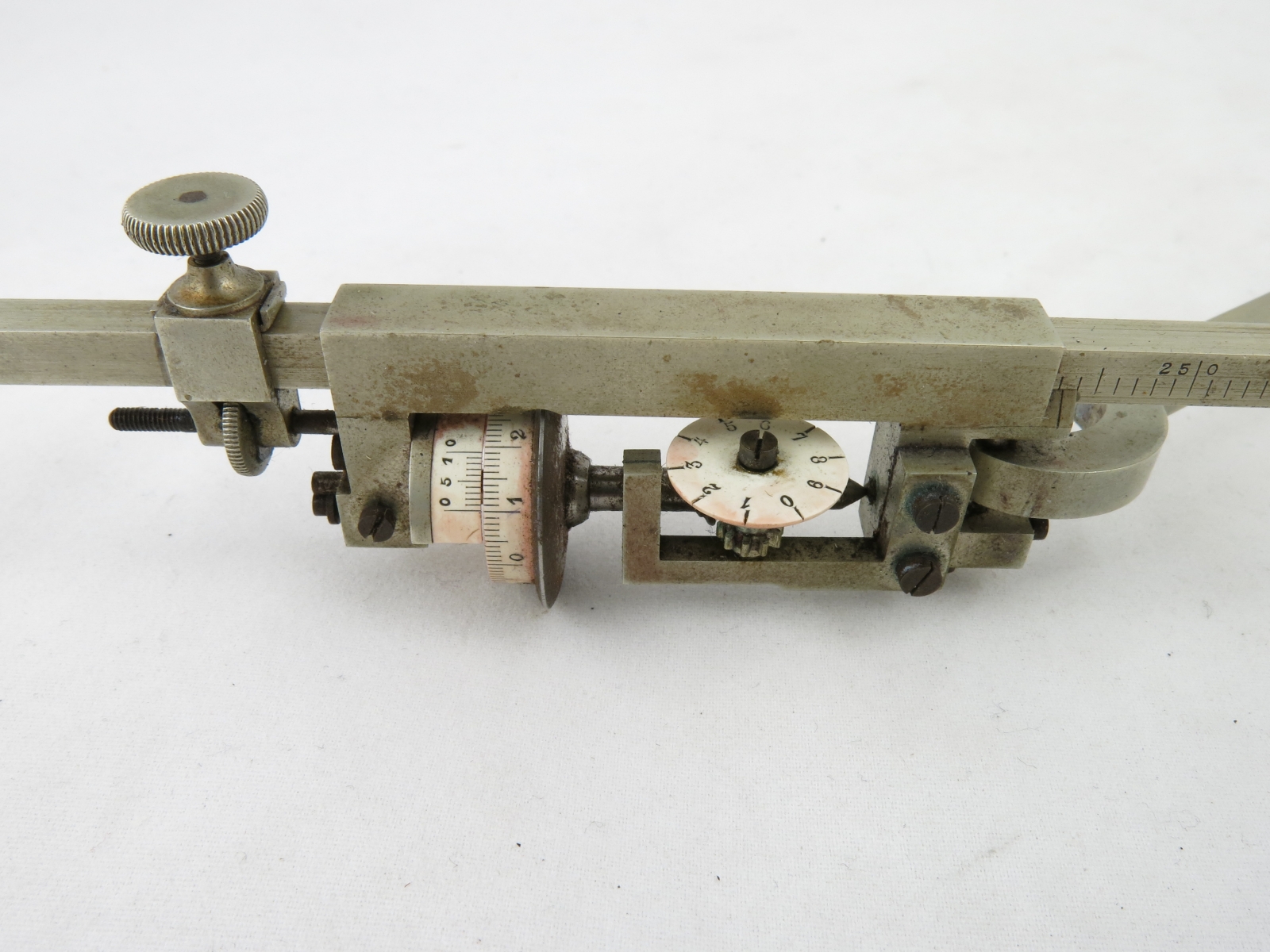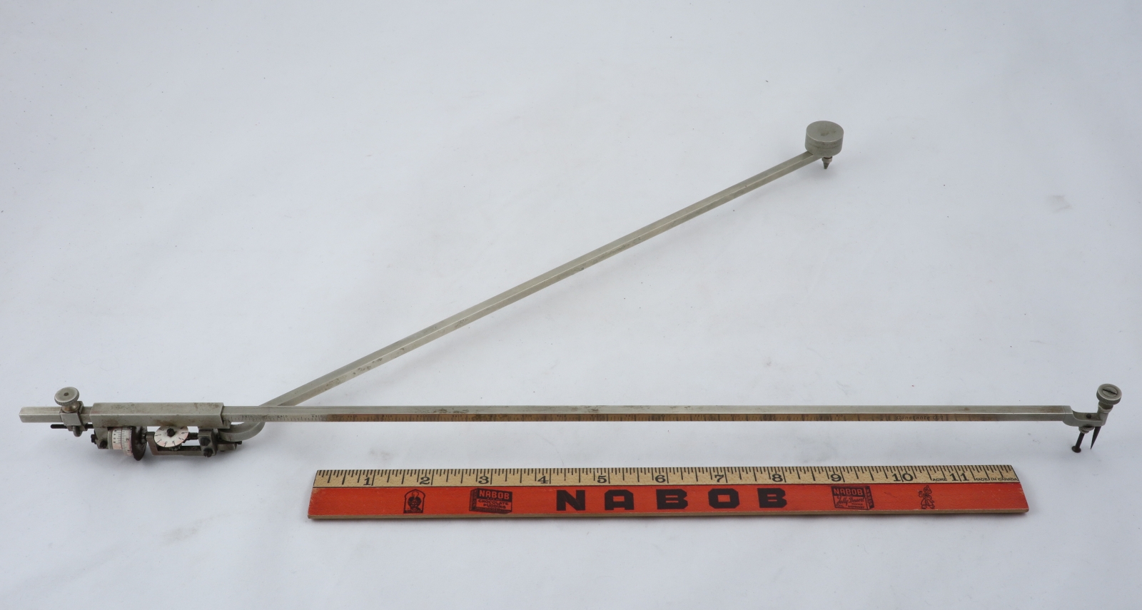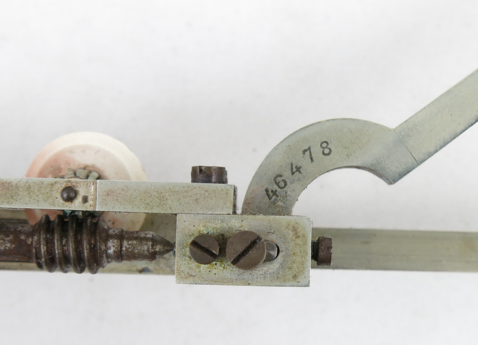 Notes: "The Amsler Type 7 is essentially a very large Type 4, made of heavier gauge components. It is a somewhat specialized planimeter in that it is optimized for measuring very large areas. As you can see in the pictures, the tracing arm is 19 inches long! Although the tracing arm is adjustable, this planimeter would be very inconvenient for use on small areas. The serial number is 46478."