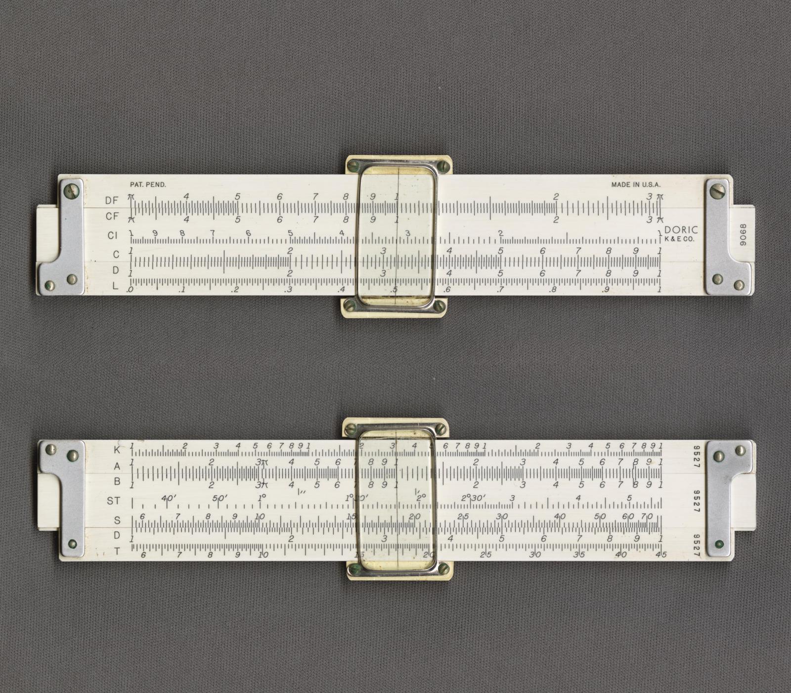 Notes: "The K&E Model 9068 Polyphase Duplex slide rule first appeared in 1949, in a price list for the 1944 K&E catalog, not in a new catalog. The 9068 model number did not last long; by 1952 it was listed as the “4168 (formerly 9068)” in a K&E educational products catalog. So, dating this rule is sorted out. The 4168 slide rule was made all the way up to 1972, although by then it’s model number had changed once again."