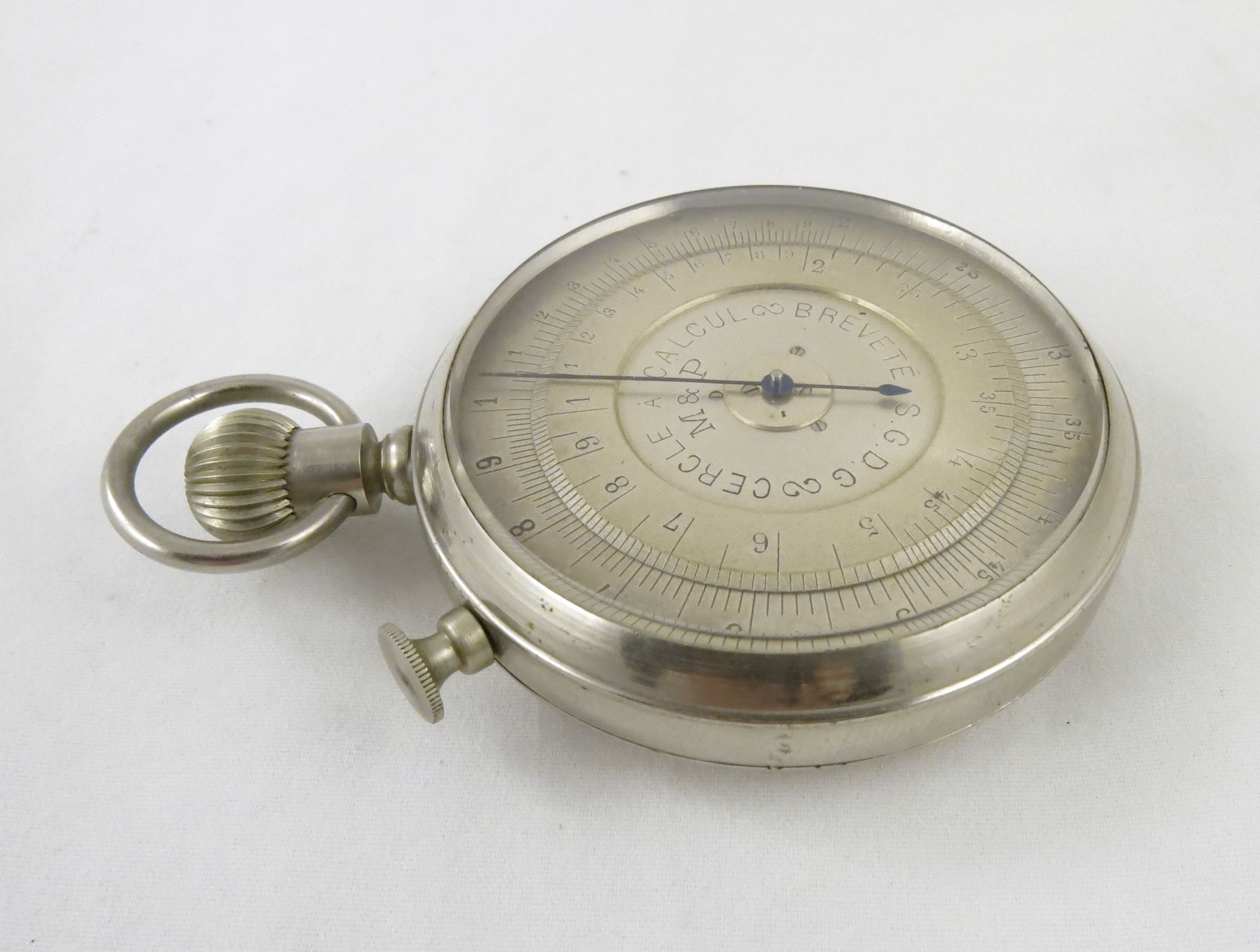 1880 patented design with a rarer true pocket-watch type 1 sibling that included a watch movement within the outer ring of scales.