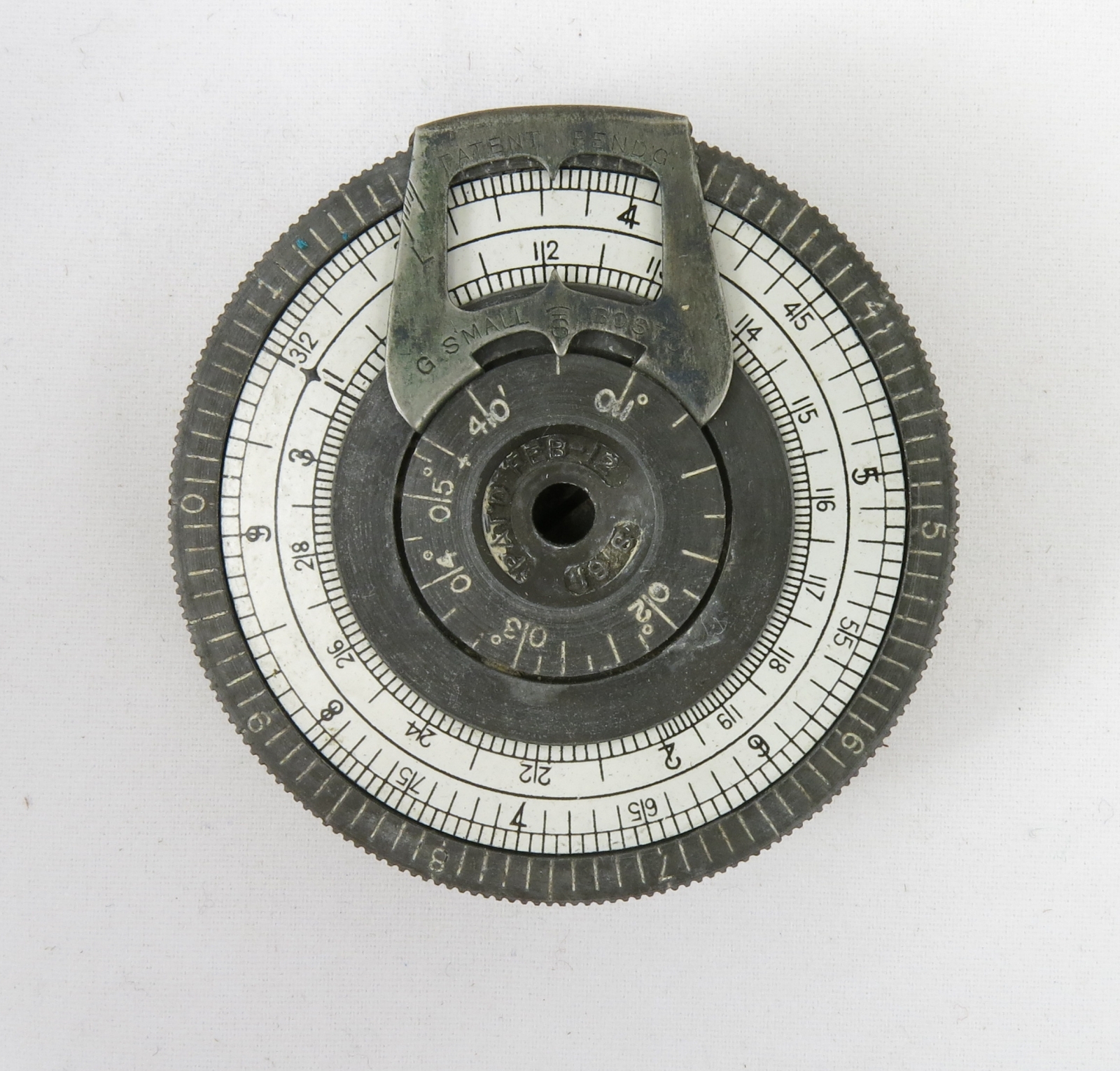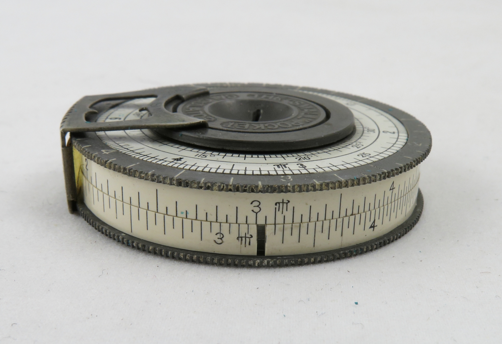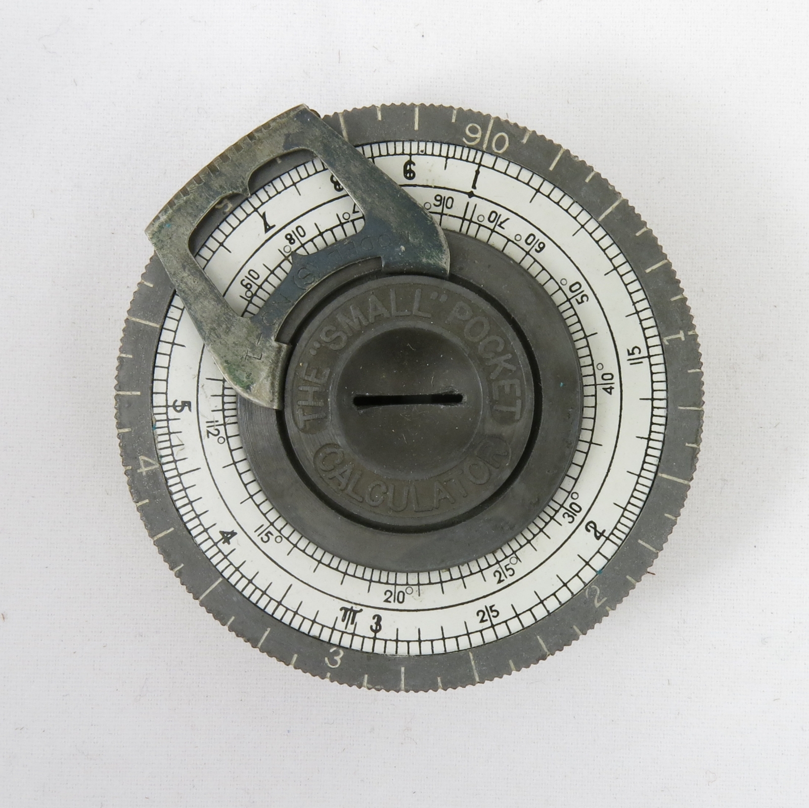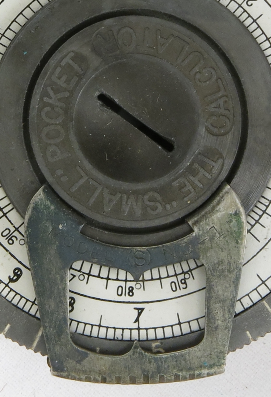1st of two versions based on a patent for a similar device filed in 1900 by Roger W. Conant. Strictly speaking is a circular rather than pocket watch type of slide rule.