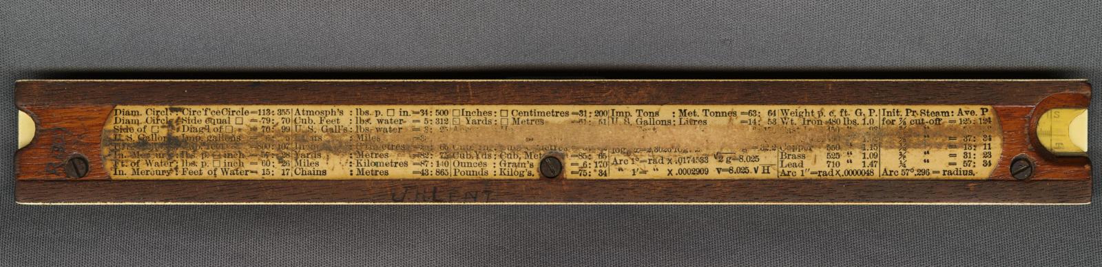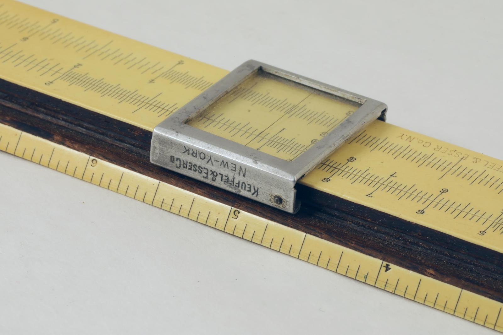 Notes: "This appears to be a K&E model 4041 Mannheim slide rule with no model number marking. It is late enough that there is enough length beyond the end of the scales to allow using a cursor with a centered hairline, rather than an all-brass chisel cursor. There is, however, only just enough length for that cursor. The date would be 1910, +/- 5 years. "