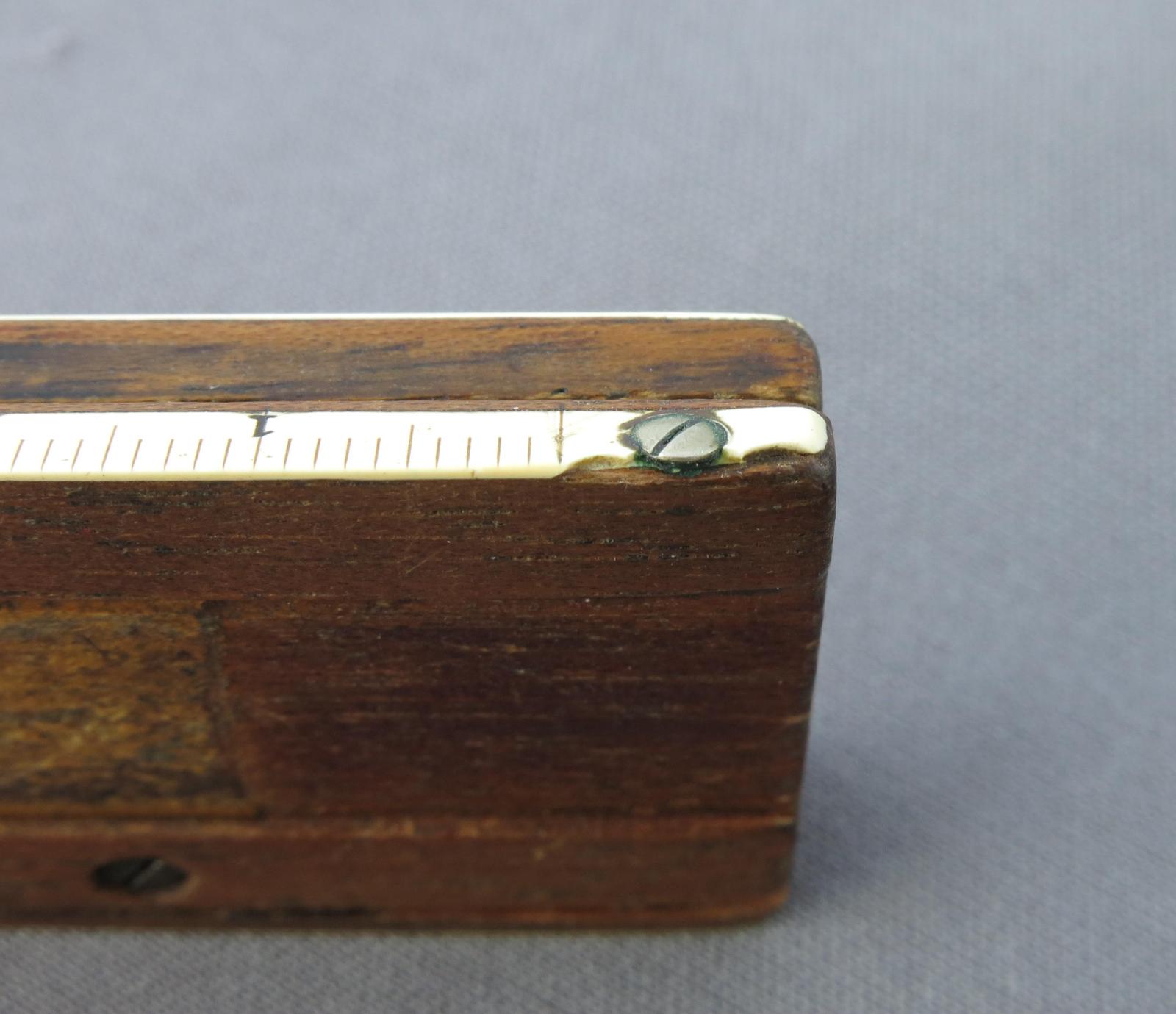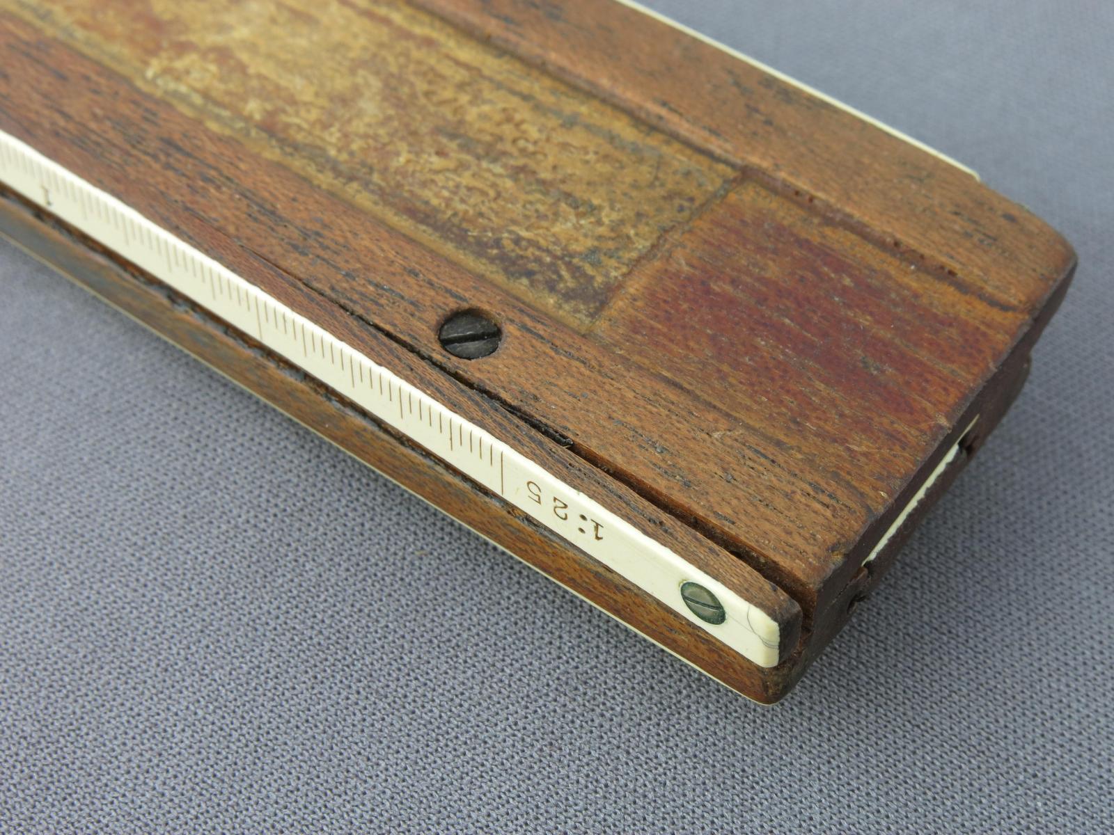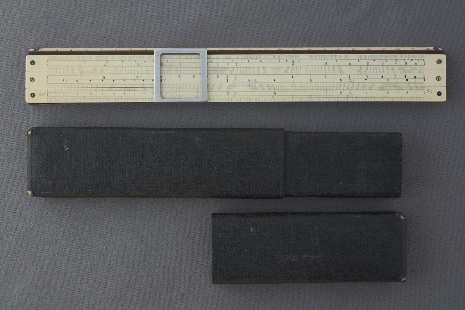 Notes: "Gebruder Wichmann only sold other company’s products. This slide rule is almost a Rietz slide rule, except no CI scale. It has interesting trig scales on the back of the slide, with the S scale is on the top and the T scale is on the bottom. Each of the trig scales is referenced to the scale it is next to: the S scale to the A scale and the T scale to the D scale. This allows the S scale to cover a range of angles that normally requires both an S and ST scale: 35 minutes of arc to 80 degrees. The tangent scale runs from 5.7 degrees to 45 degrees, but for small angles you would just use the left half of the sine scale. "