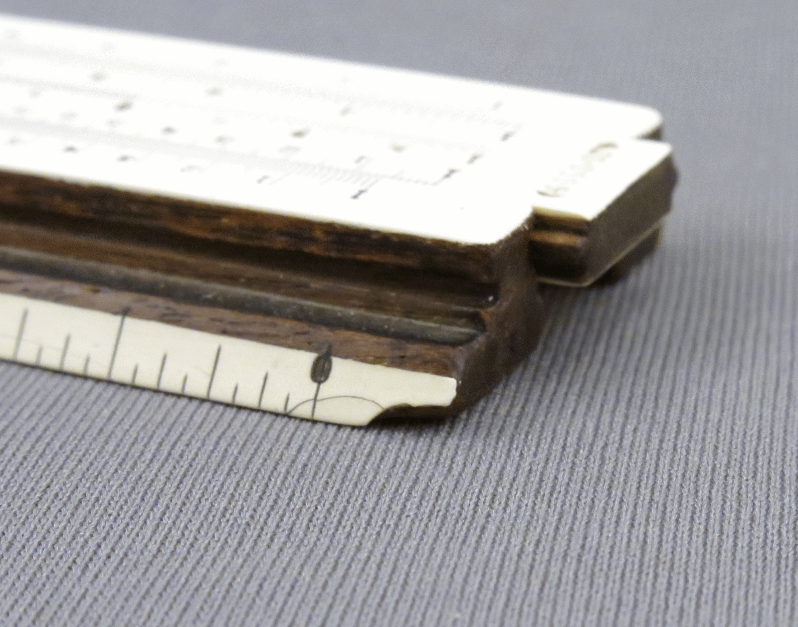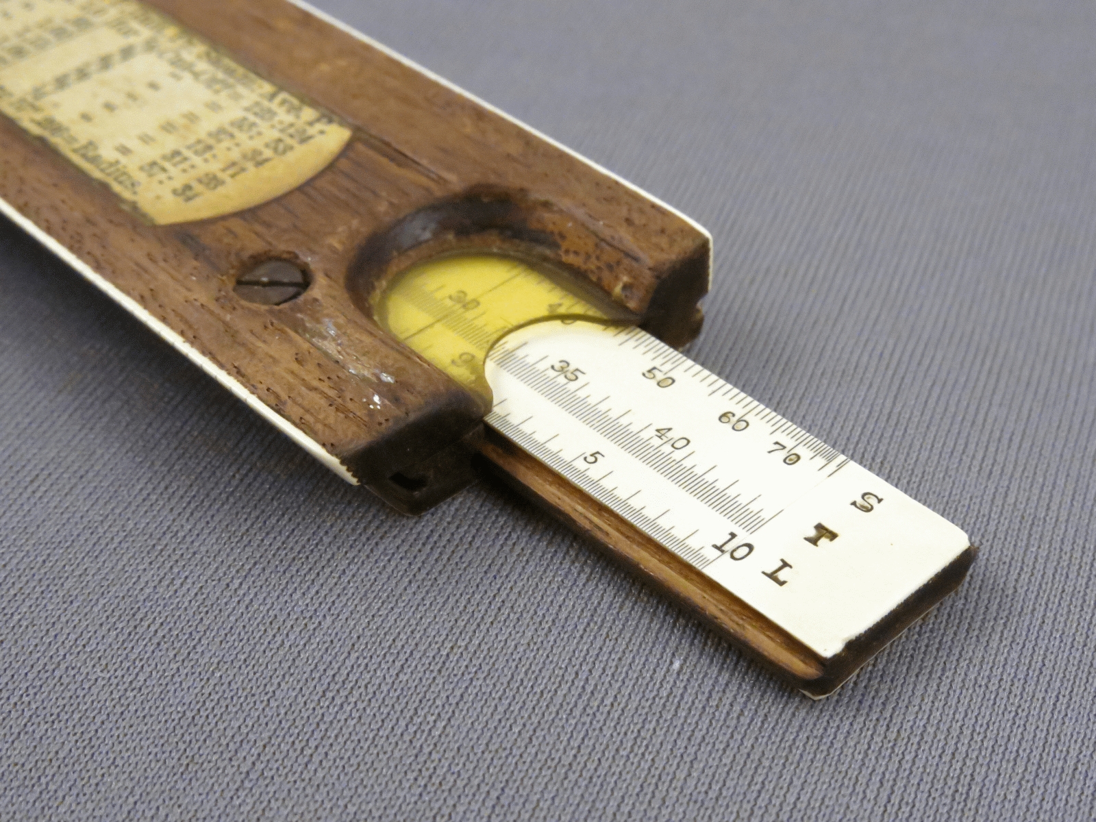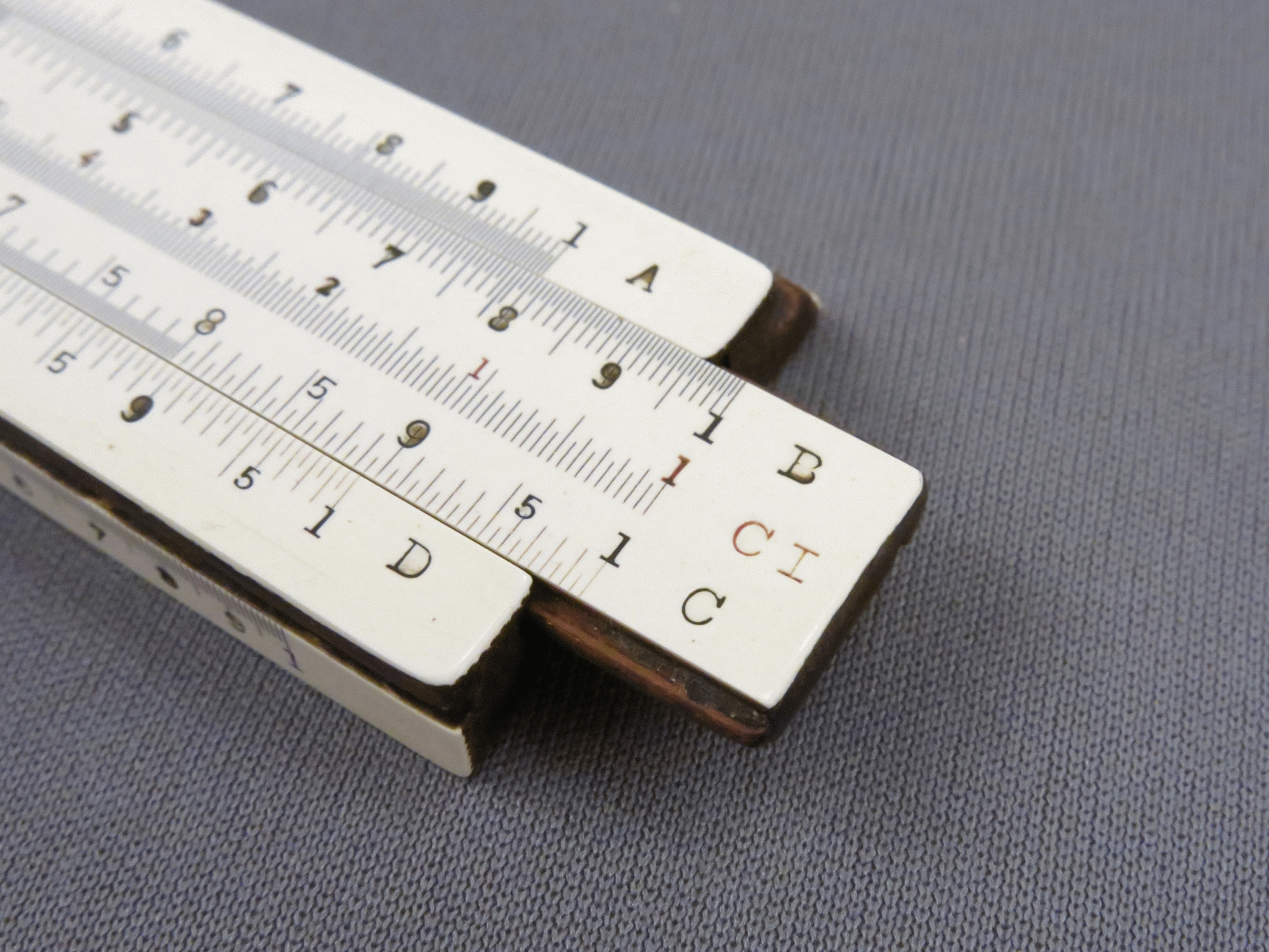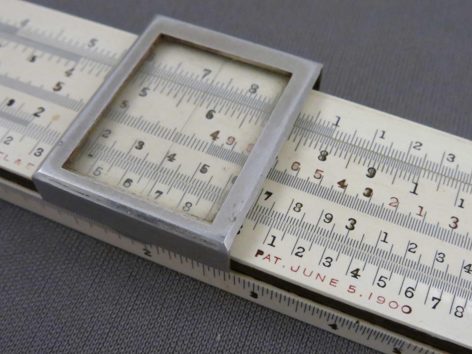 Notes: "The model 4053 Mannheim slide rule, or Polyphase Slide Rule as K&E called it, was in production from 1909 until 1972, was available in 5”, 8”, 10”, and 20” lengths, and along the way went through many changes, major and minor, in construction, scale layout, and markings. Those changes make determining the date range for this slide rule fairly easy. The K scale being on the lower edge broadly sets the date range to 1909 to 1921. The use of the “-3” length designation (indicating a 10” slide rule) in the model number started in 1911, and the metal framed cursor ended in 1915, so this slide rule was made between 1911 and 1915. This 4053 is the scarce “finely divided” version (the “F” in the model number), which has all the divisions of a 20” slide rule on a 10” slide rule. "