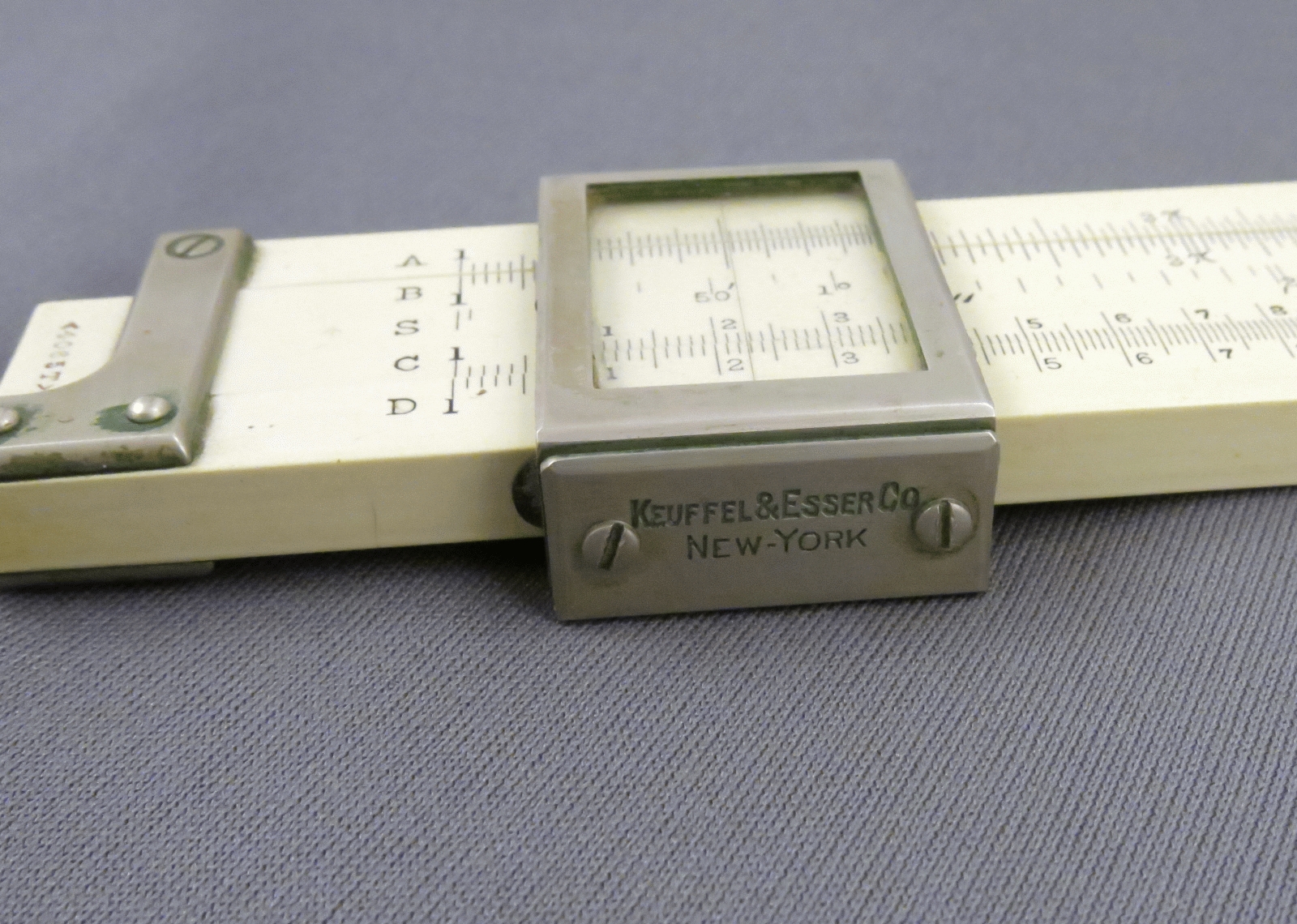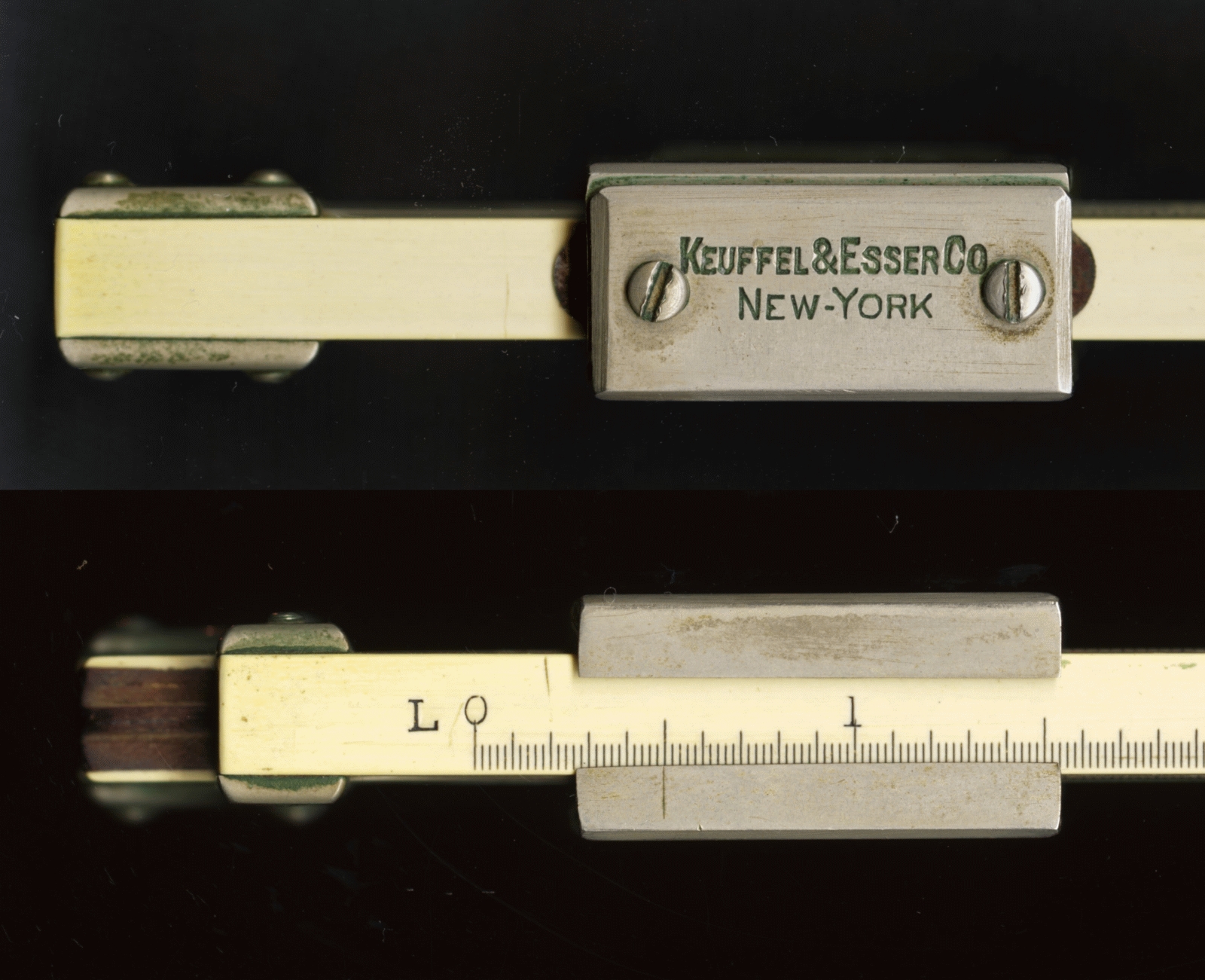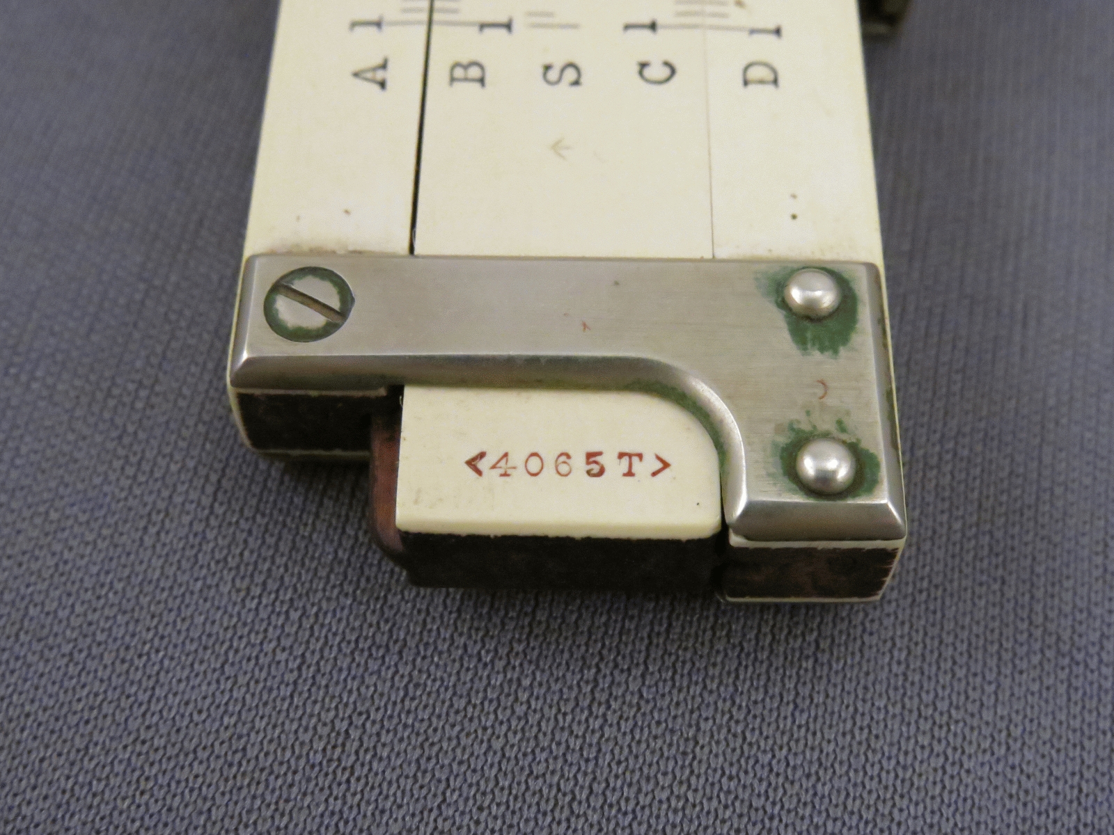 Notes: "The K&E 4065T is an 8-inch duplex slide rule, and added S, T, and L scales to the model 4065, which was made concurrently. The 4065 was an 8-inch version of the 10-inch 4071, which was the 1909+ continuation of the original Cox Duplex slide rule. The 8-inch models 4065 and 4065T were introduced in 1909, the 4065 model number having previously been used for a 5-inch slide rule. The date for this slide rule is 1910 to 1913, with the L-shaped end braces and the clamshell cursor putting the lower and upper limits on that range respectively. "