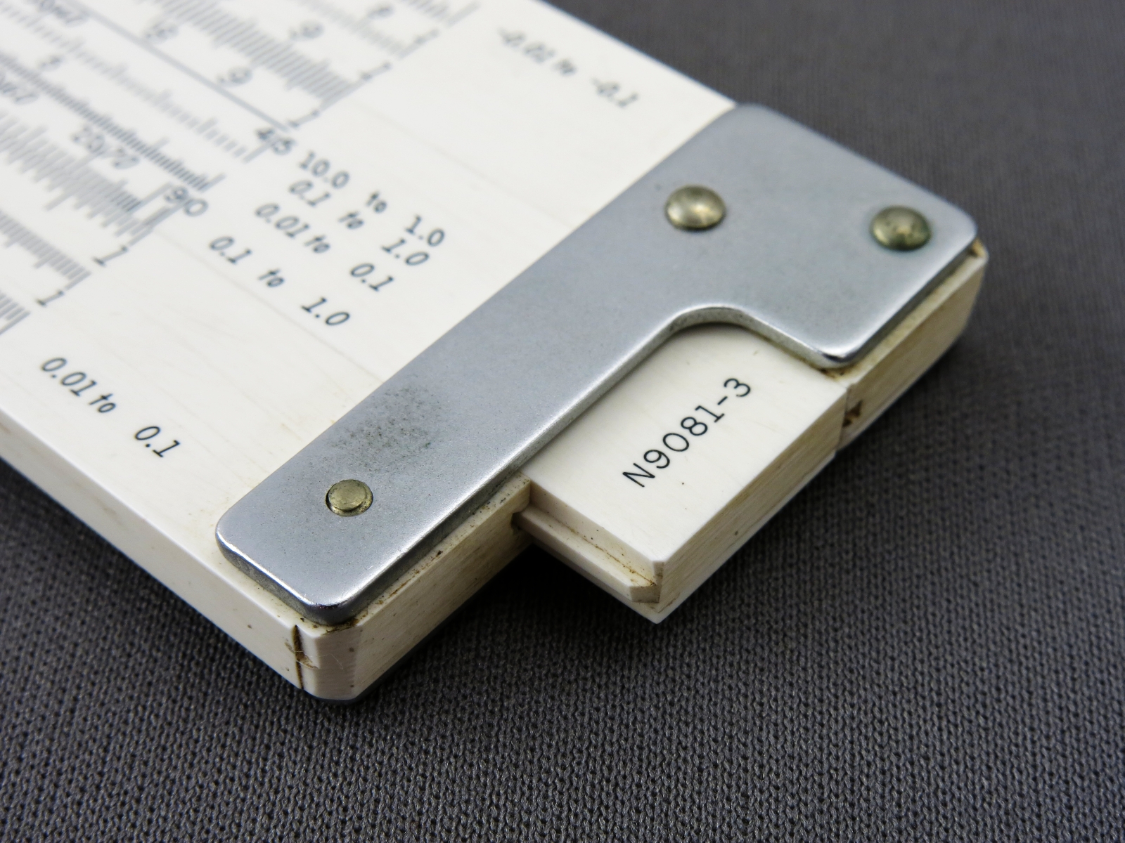 Notes: "The K&E 9081-3 slide rule is an all-plastic version of K&E’s flagship mahogany 4081-3 Log Log Duplex Decitrig slide rule. The 9081-3 model number was only used from 1949 until 1952 when it was replaced with the 4181-3 number. This one must have been made right at the end, when the 9081-3 number was being phased out, as the slide rule is still labeled ”N9081-3” while the box is labeled “N4181-3 Old No. N9081-3”. The 9081-3 feels more substantial than most other plastic slide rules, and is noticeably thicker."
