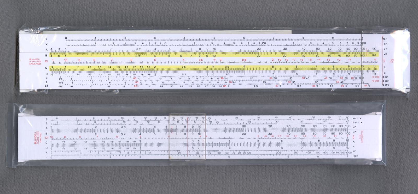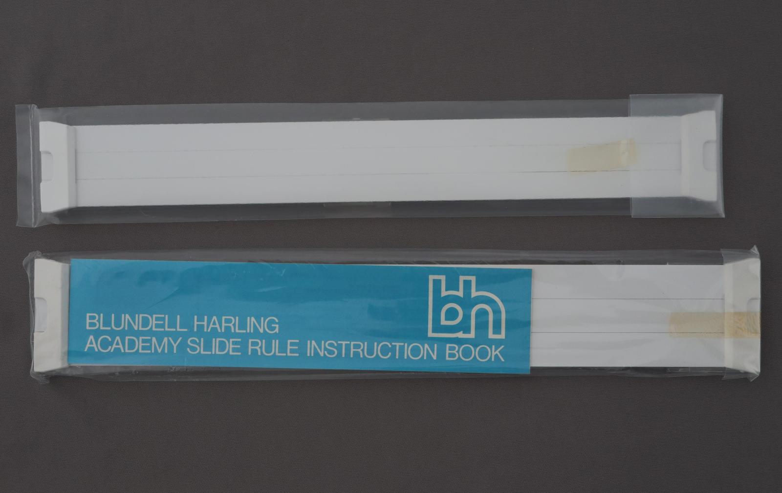Notes: "These two Blundell Harling slide rules show two different variations of the Reitz pattern that Blundell Harling sold. Both slide rules are built like a duplex slide rule but are single sided, with the back completely blank. Both have the distinctive Blundell Harling “ears” on the ends that keep the cursor from sliding off"