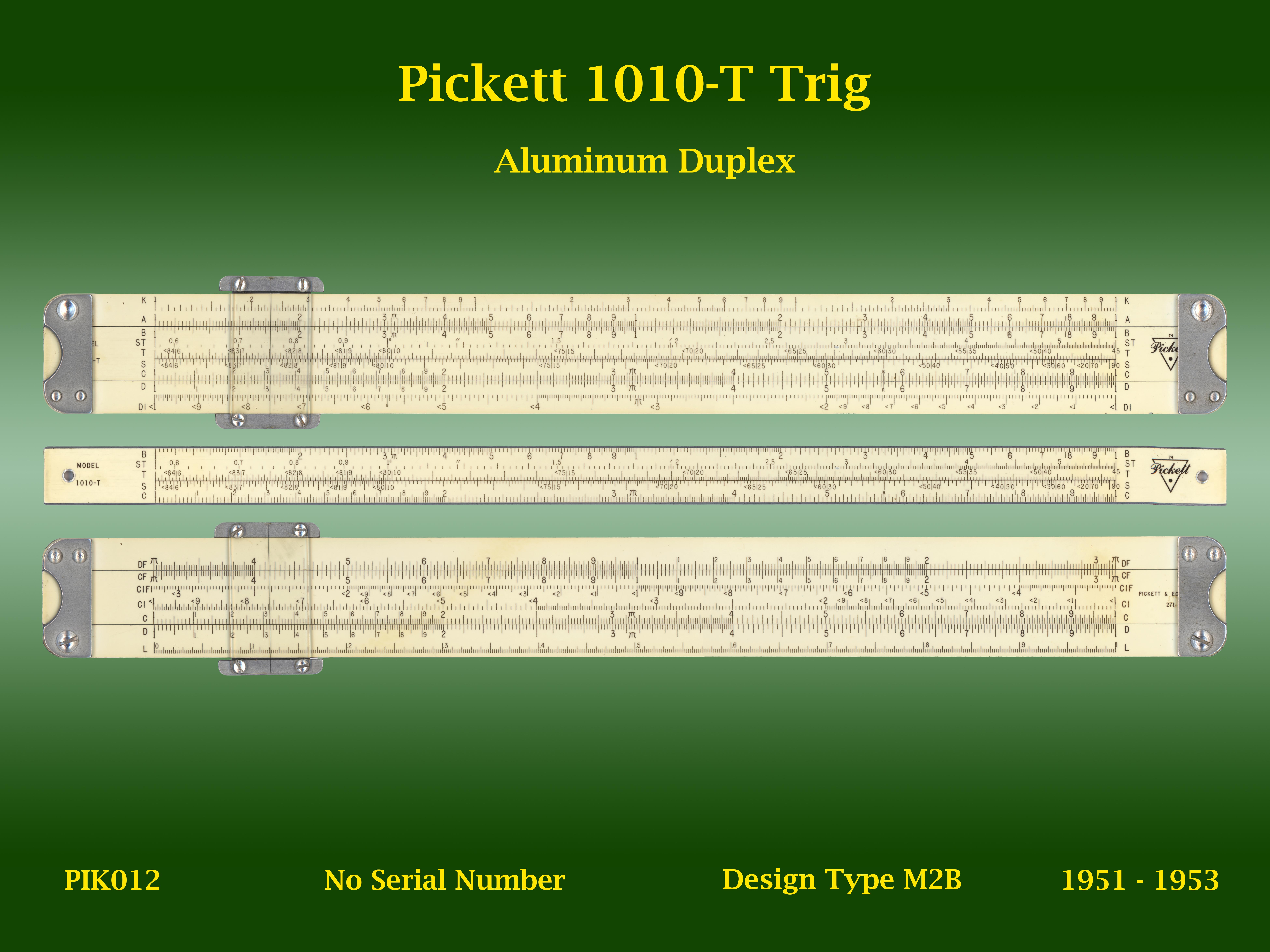 | PIK012 | Linear | 1010-T | Trig | | M2B | Pickett | USA | | Aluminum | "10" | 1951-1953 | C3 |