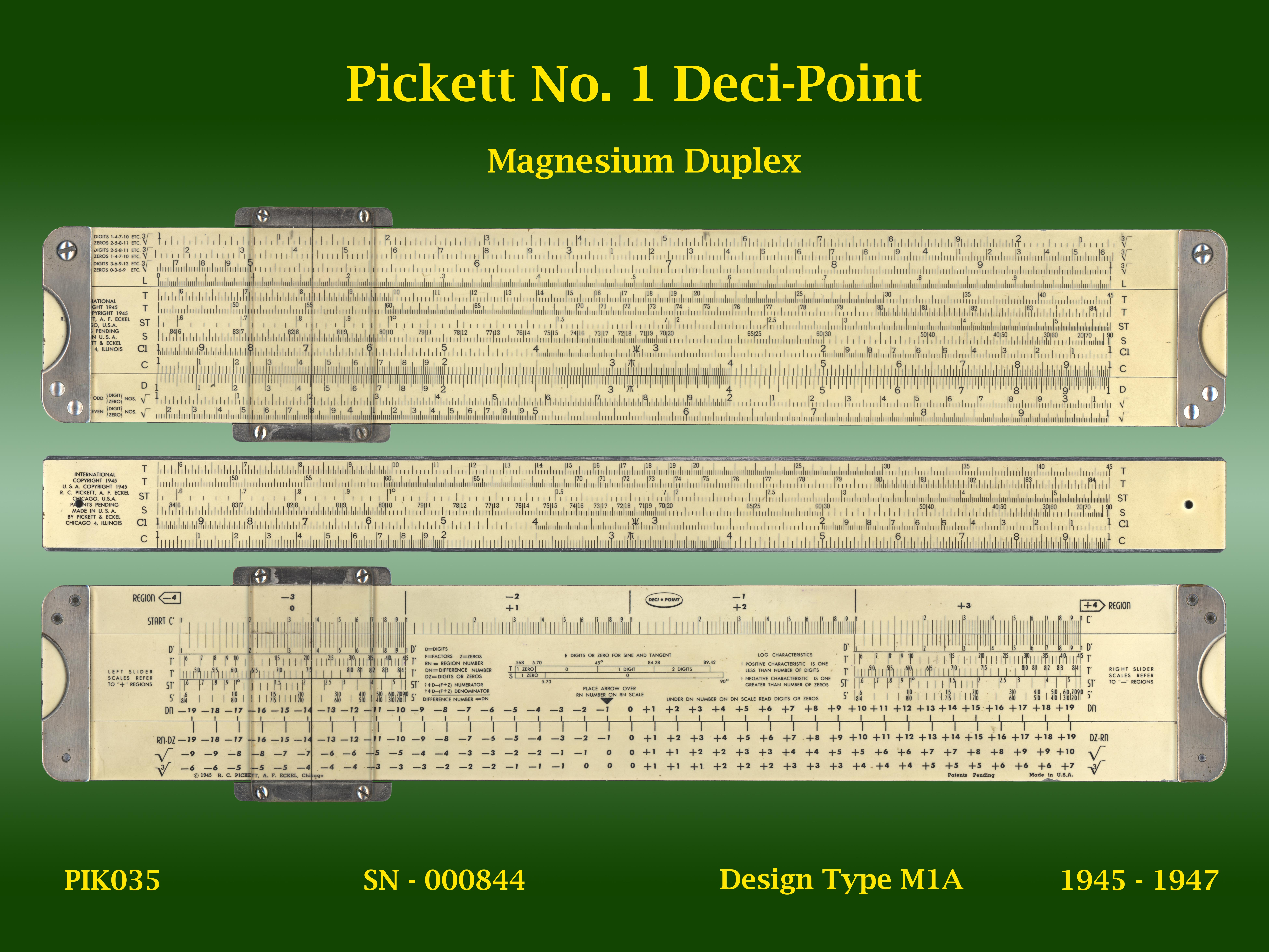 | PIK035 | Linear | No. 1 | Deci-Point | | M1A | Pickett | USA | 00844 | Magnesium | "10" | 1945-1947 | C5 |
