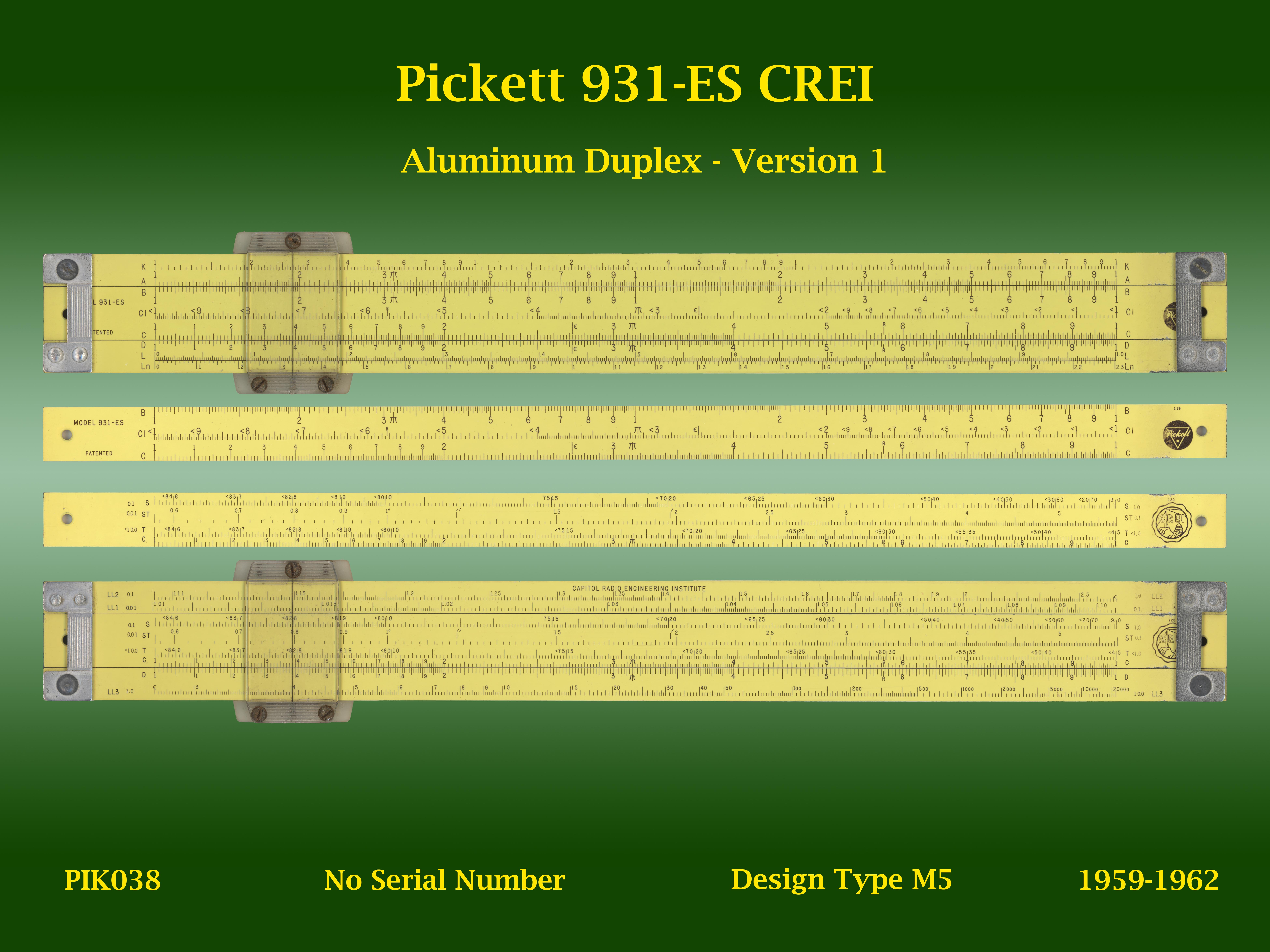 Special slide rule made for Capitol Radio Engineering Institute (CREI). Scales optimized for making radio engineering calculations.
