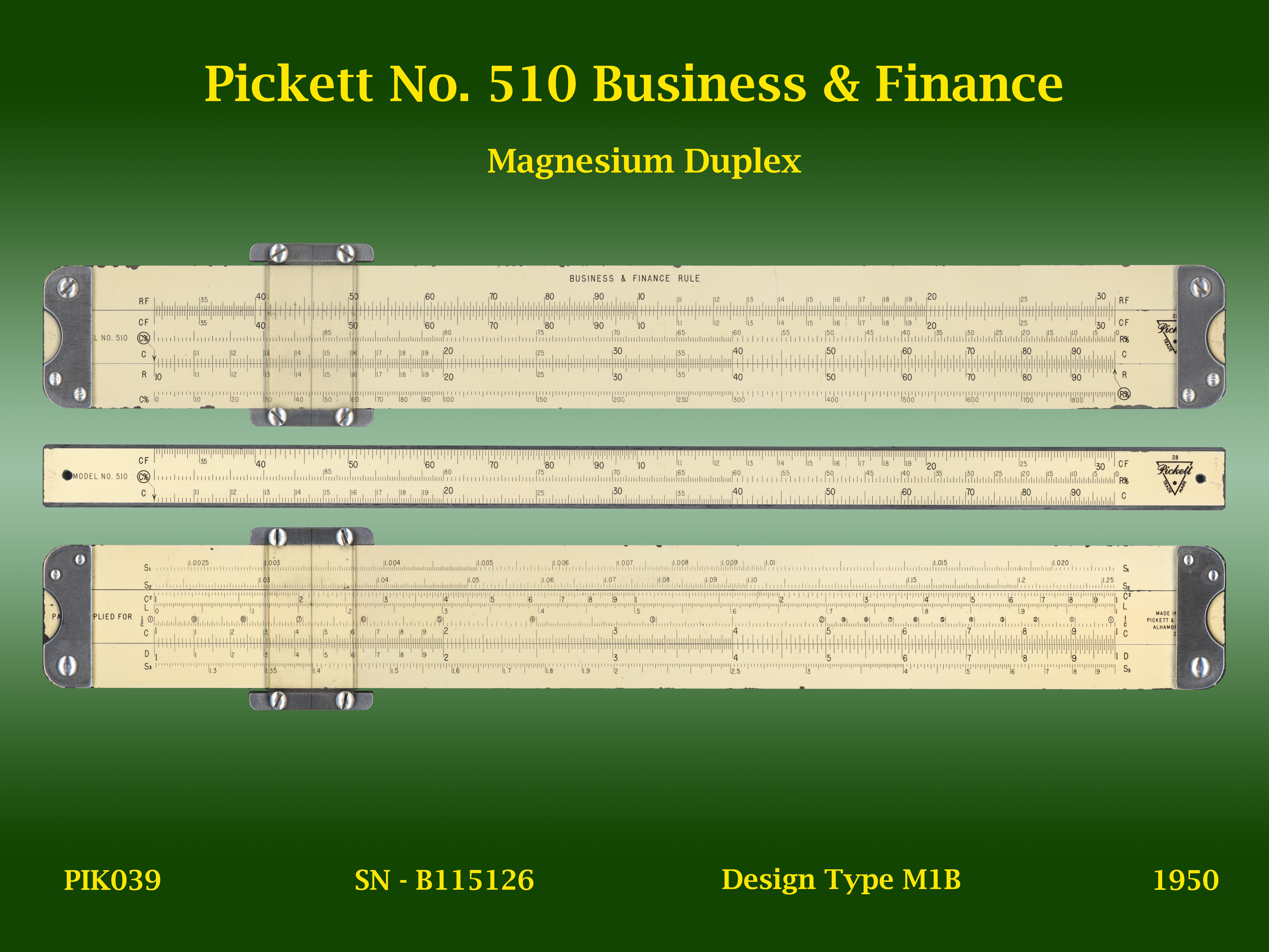 | PIK039 | Linear | No. 510 | Business & Finance | | M1B | Pickett | USA | B115126 | Magnesium | "10" | 1950 | C6 |