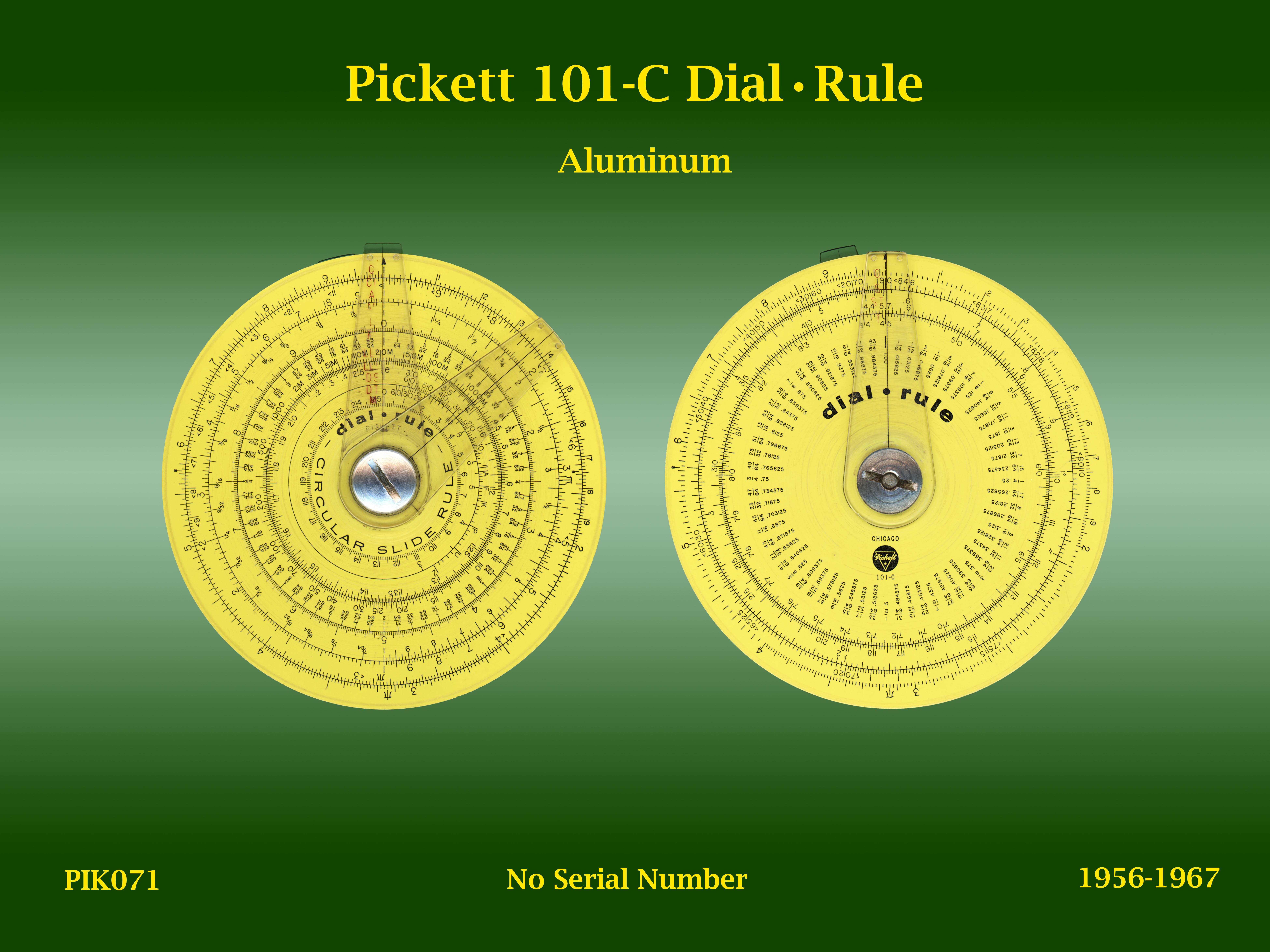 | PIK071 | Circular | 101-C | Dial Rule | | n/a | Pickett | USA | | Aluminum | "4" | 1956-1967 | C5 |