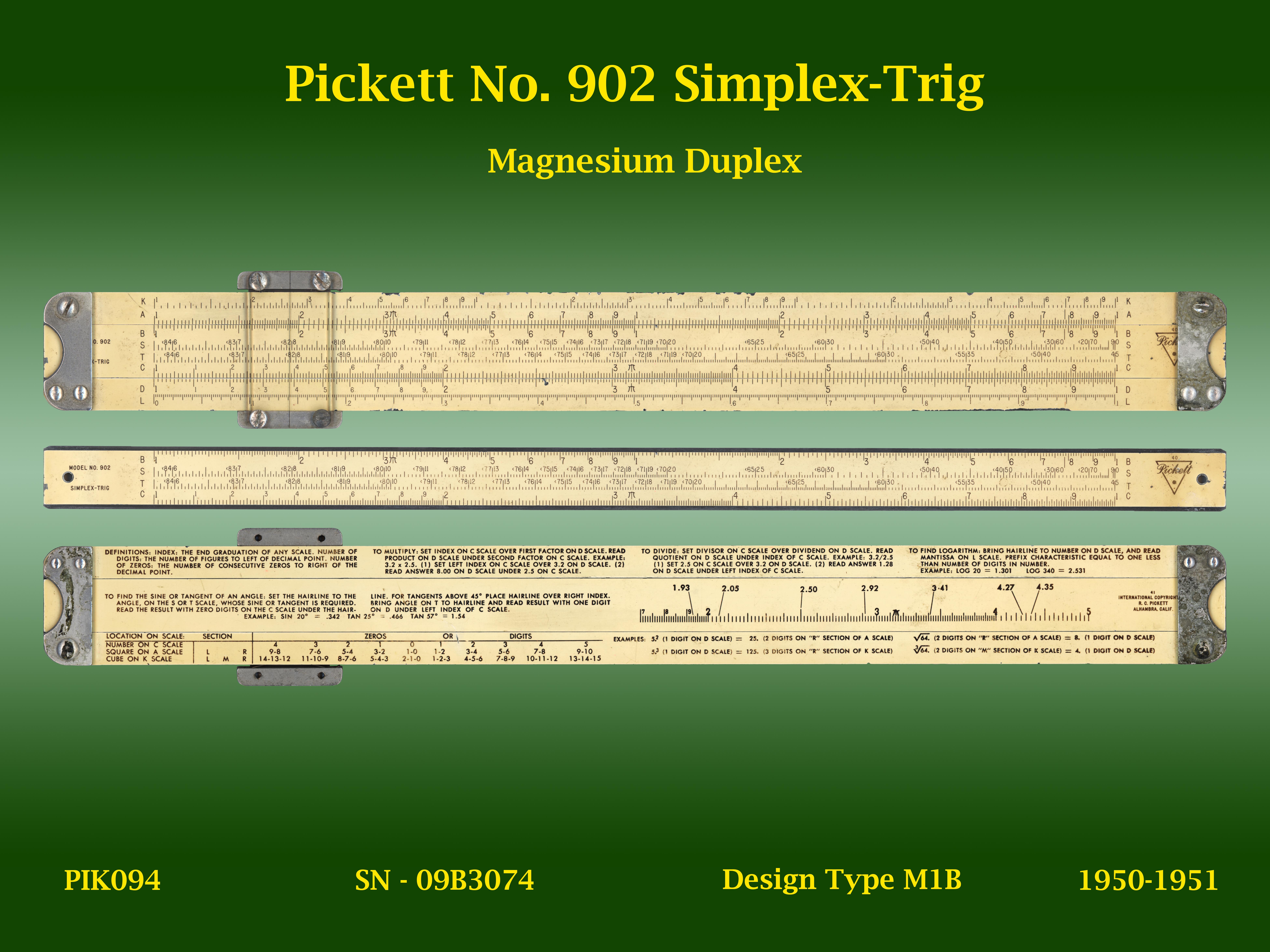 | PIK094 | Linear | No. 902 | Simplex-Trig | | M1B | Pickett | USA | 09B3074 | Magnesium | "10" | 1950-1951 | C6 |