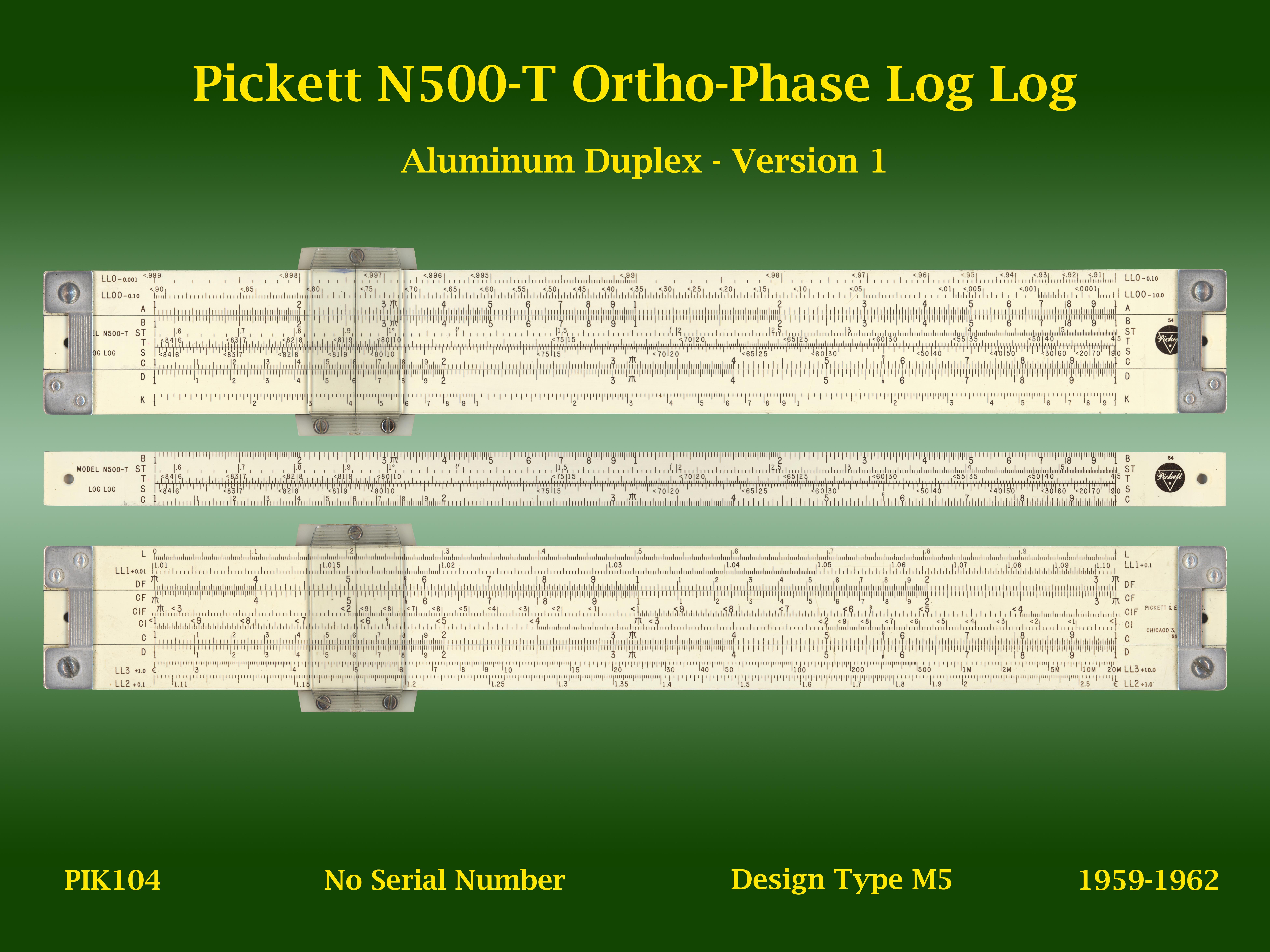 | PIK104 | Linear | N500-T | Ortho-Phase Log Log | 1 | M5 | Pickett | USA | | Aluminum | "10" | 1959-1962 | C4 |